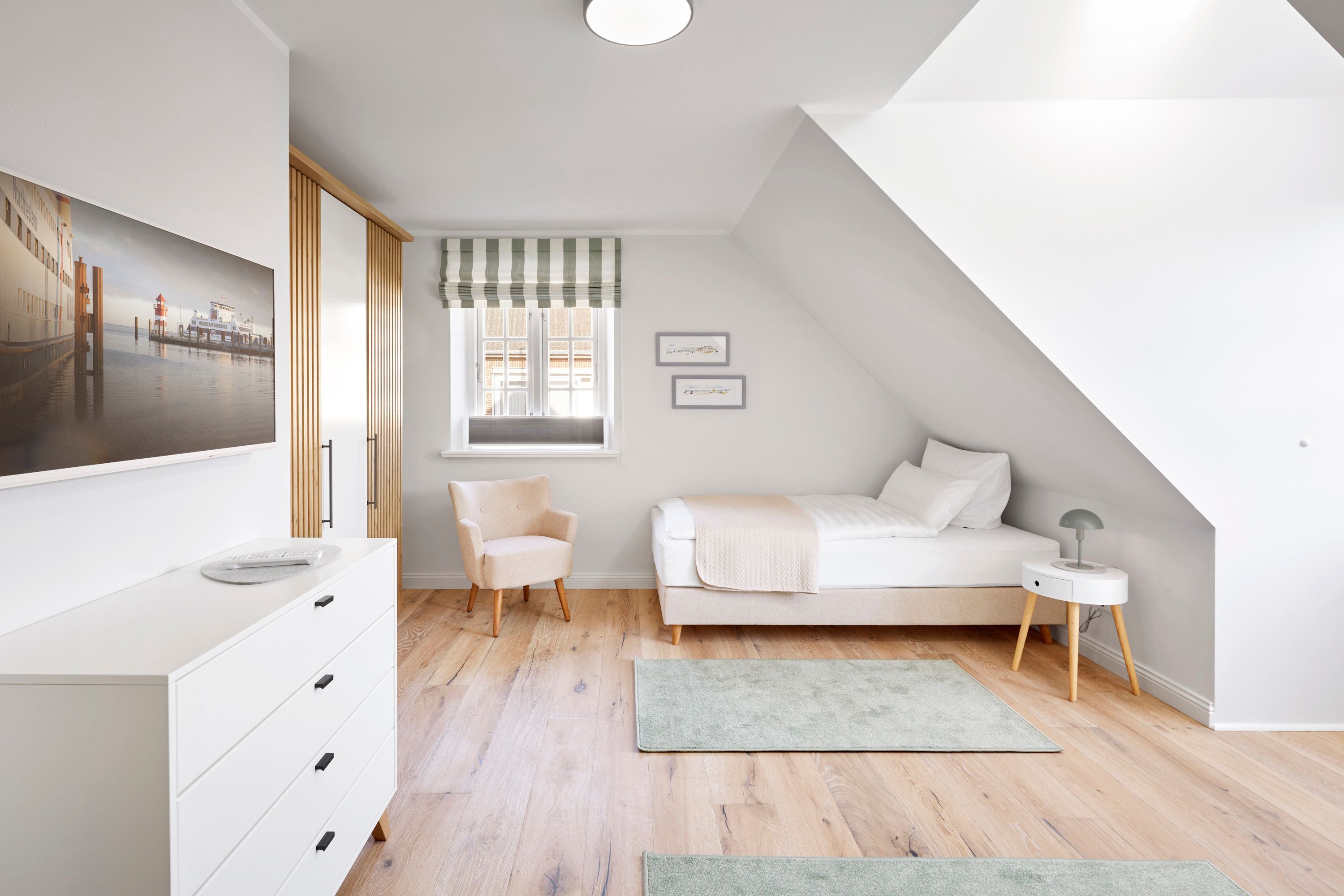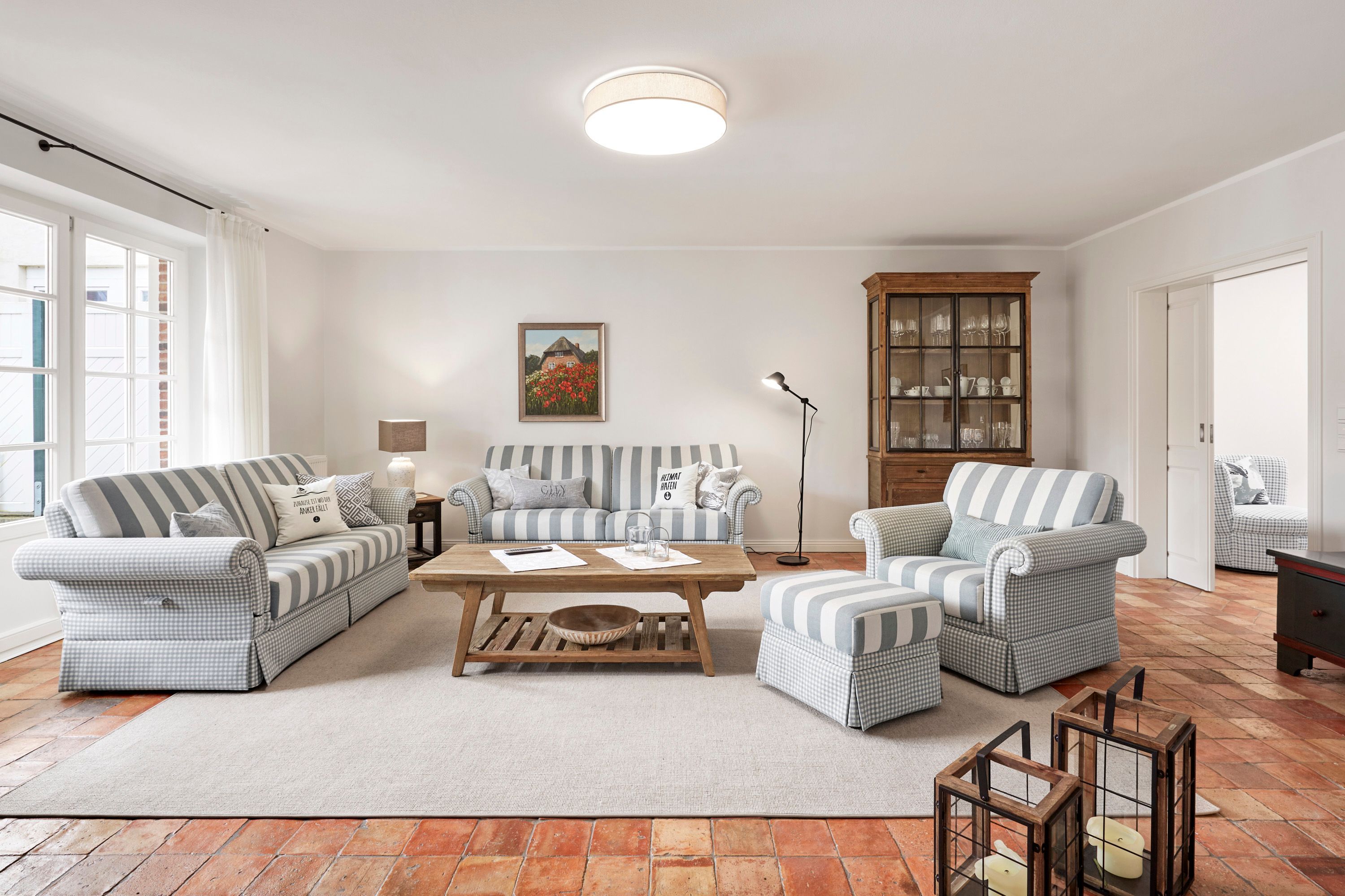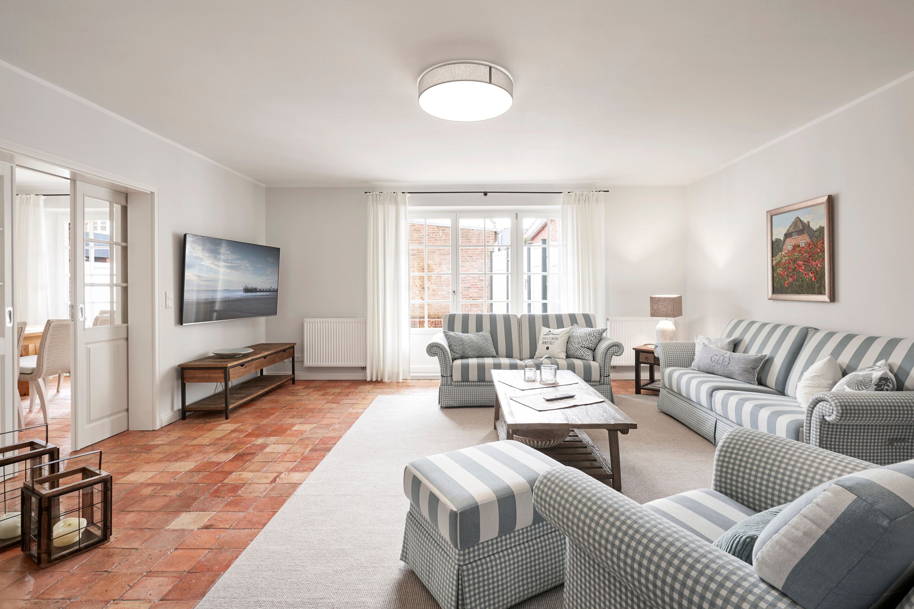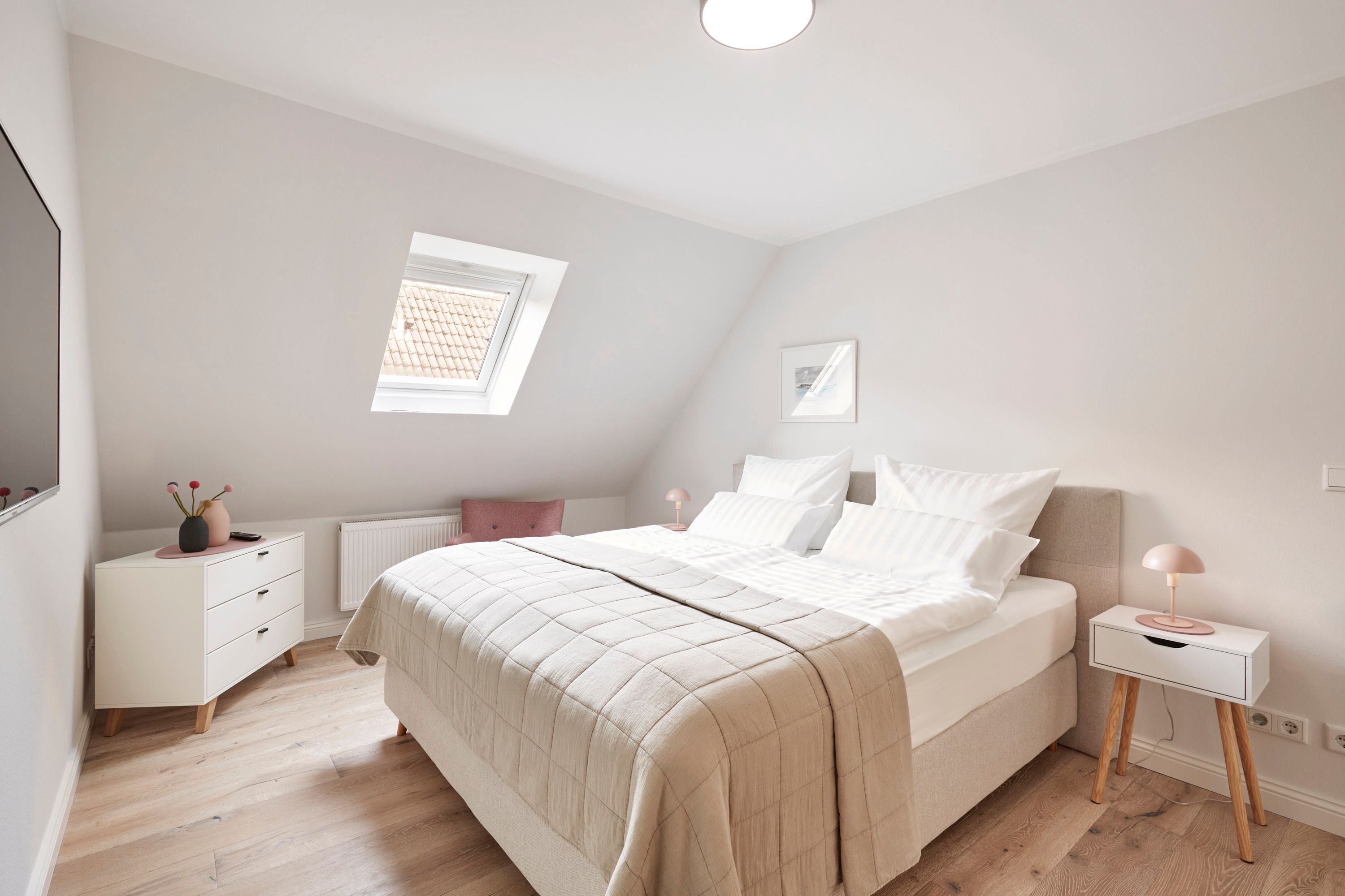 Dieses elegante Ferienhaus auf zwei Ebenen vereint Großzügigkeit, stilvolles Design und höchsten Komfort inmitten der charmanten Gassen von Wyk. Das Erdgeschoss besticht durch einen lichtdurchfluteten Wohn- und Essbereich, eine moderne Küche, einen Hauswirtschaftsraum sowie ein vielseitig nutzbares Arbeits- oder Lesezimmer. Ergänzt wird das Raumangebot durch ein geschmackvolles Duschbad mit WC.