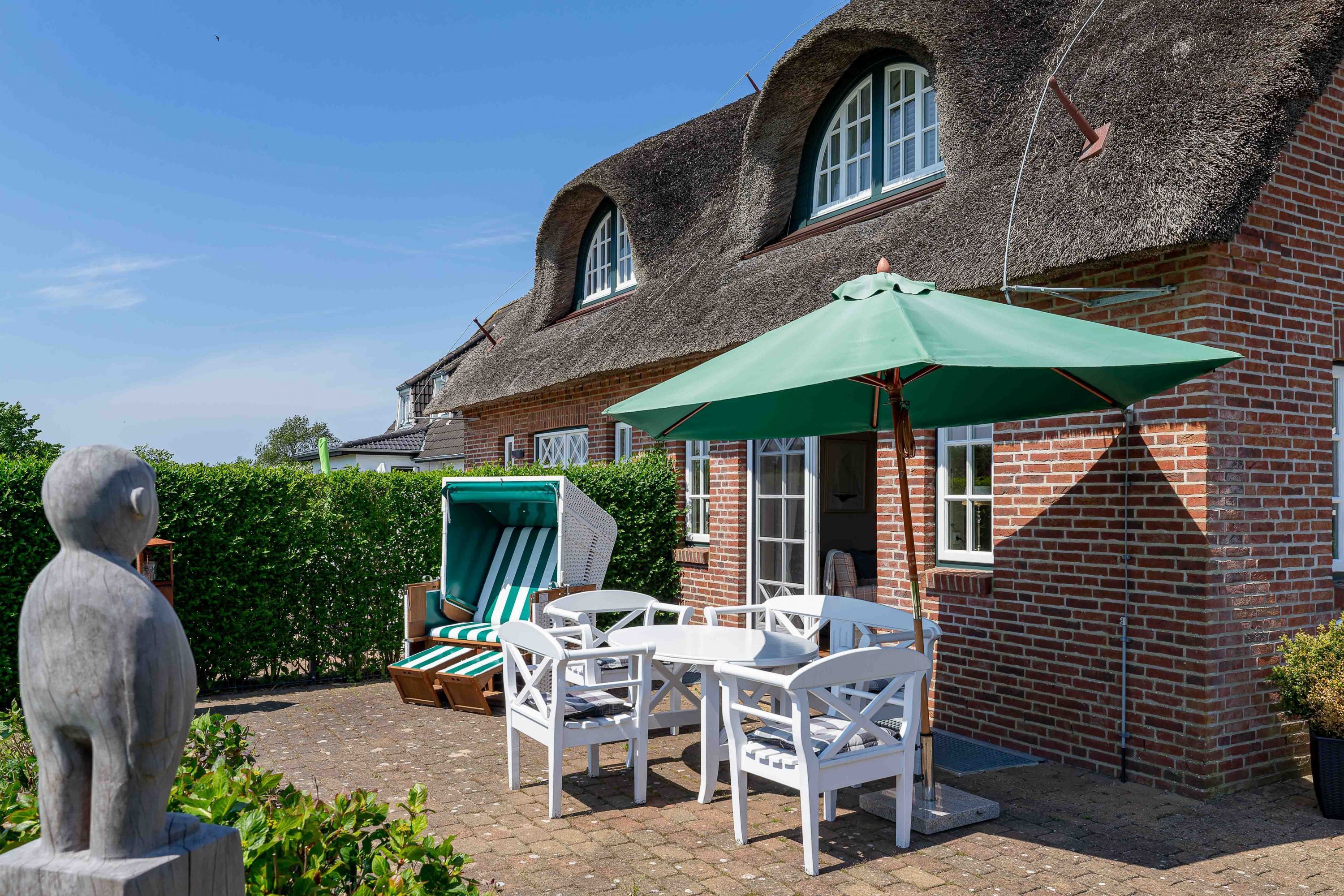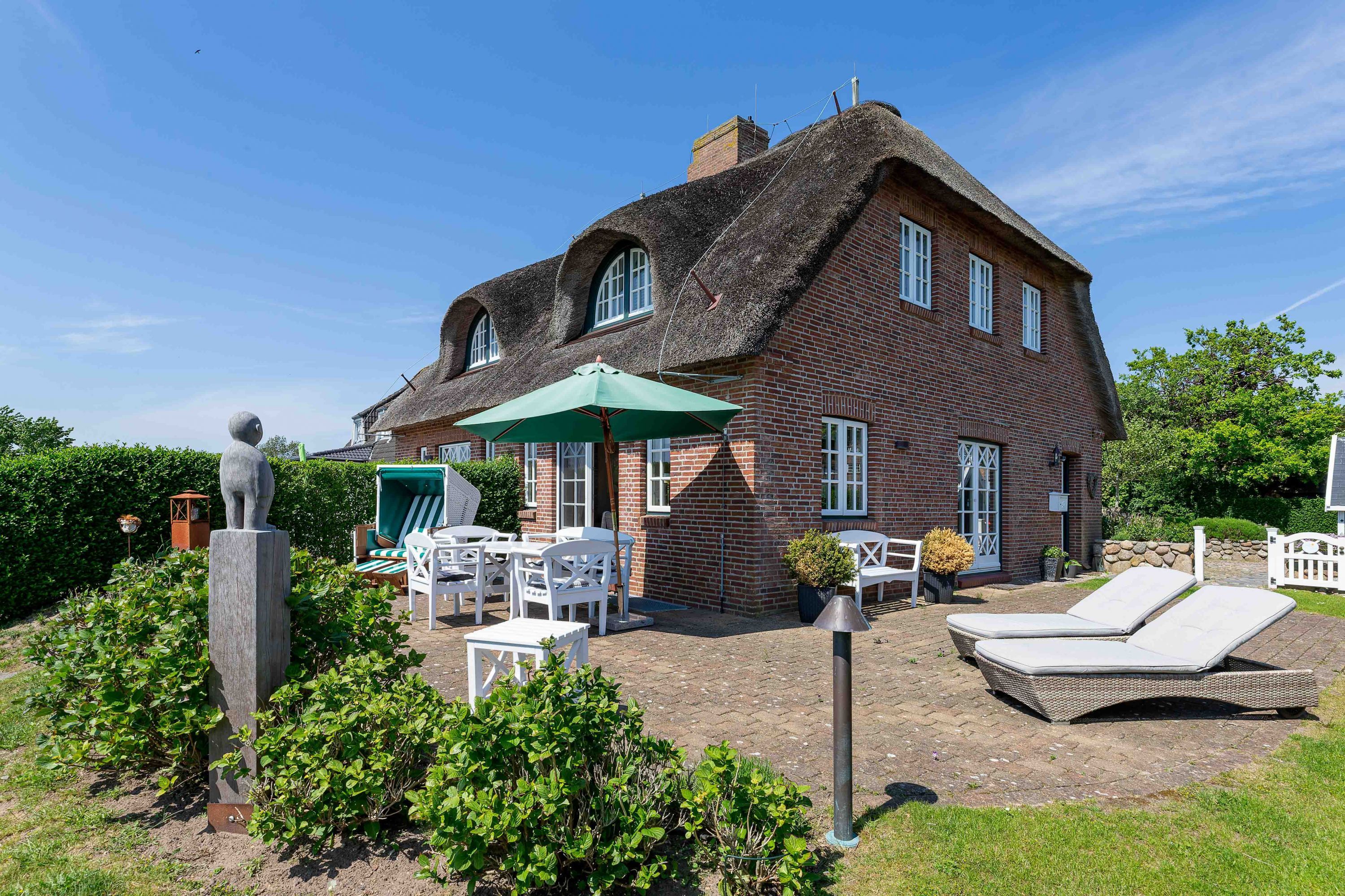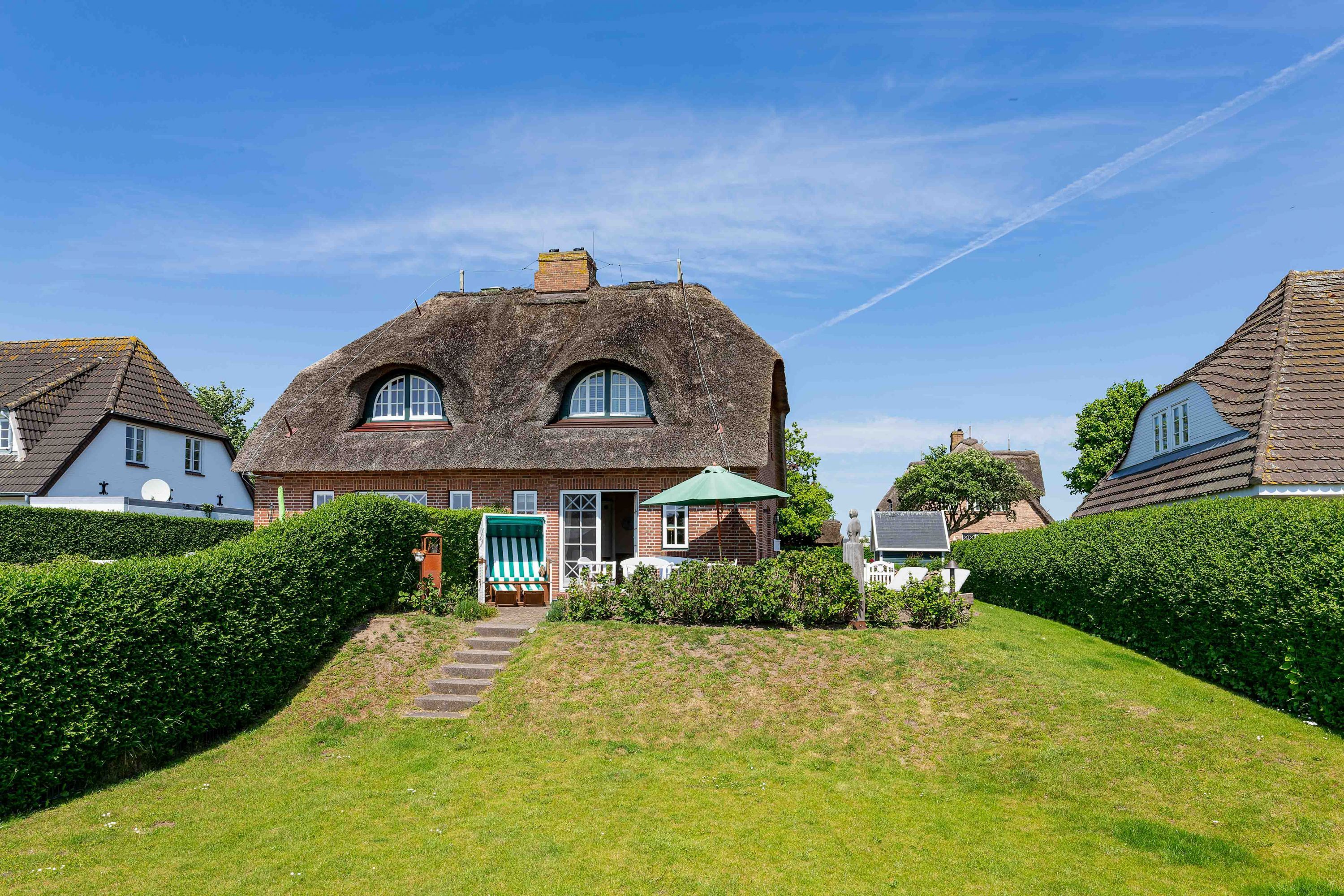 Nur wenige Gehminuten vom Meer und Strand entfernt liegt das sehr gepflegte Reetdachobjekt an der Traumstraße Hier können Sie Nordseeurlaub pur genießen. Morgens weht der Wind die salzhaltige Luft vom Meer direkt durch Ihre großzügige Haushälfte. Entweder gehen Sie nun sofort schwimmen oder genießen einfach einen schönen Tag im Haus oder Garten. Die gemütlich eingerichtete Haushälfte bietet jede Menge Platz und viel Komfort für einen erholsamen Urlaub. Sie werden Ihren Aufenthalt genießen. Wir freuen uns auf Sie.