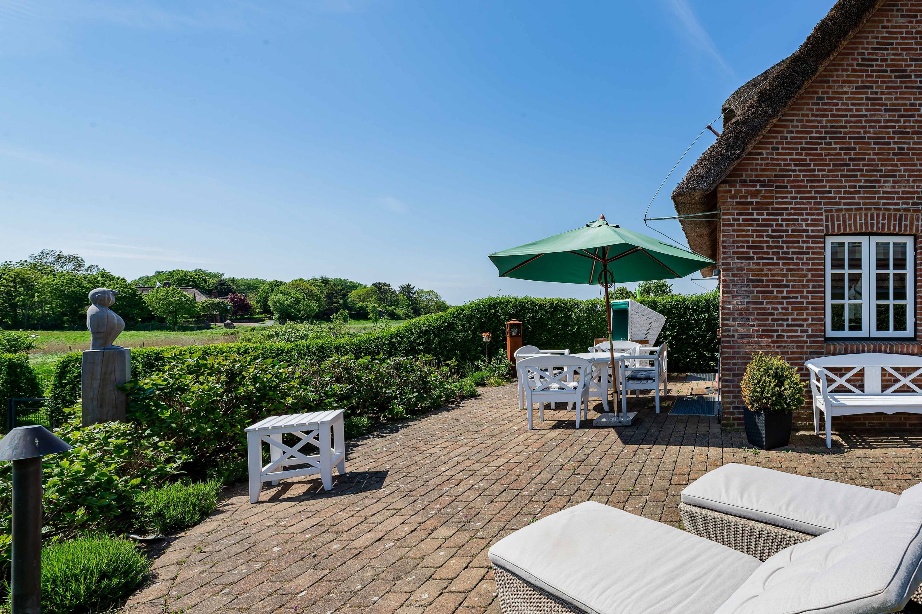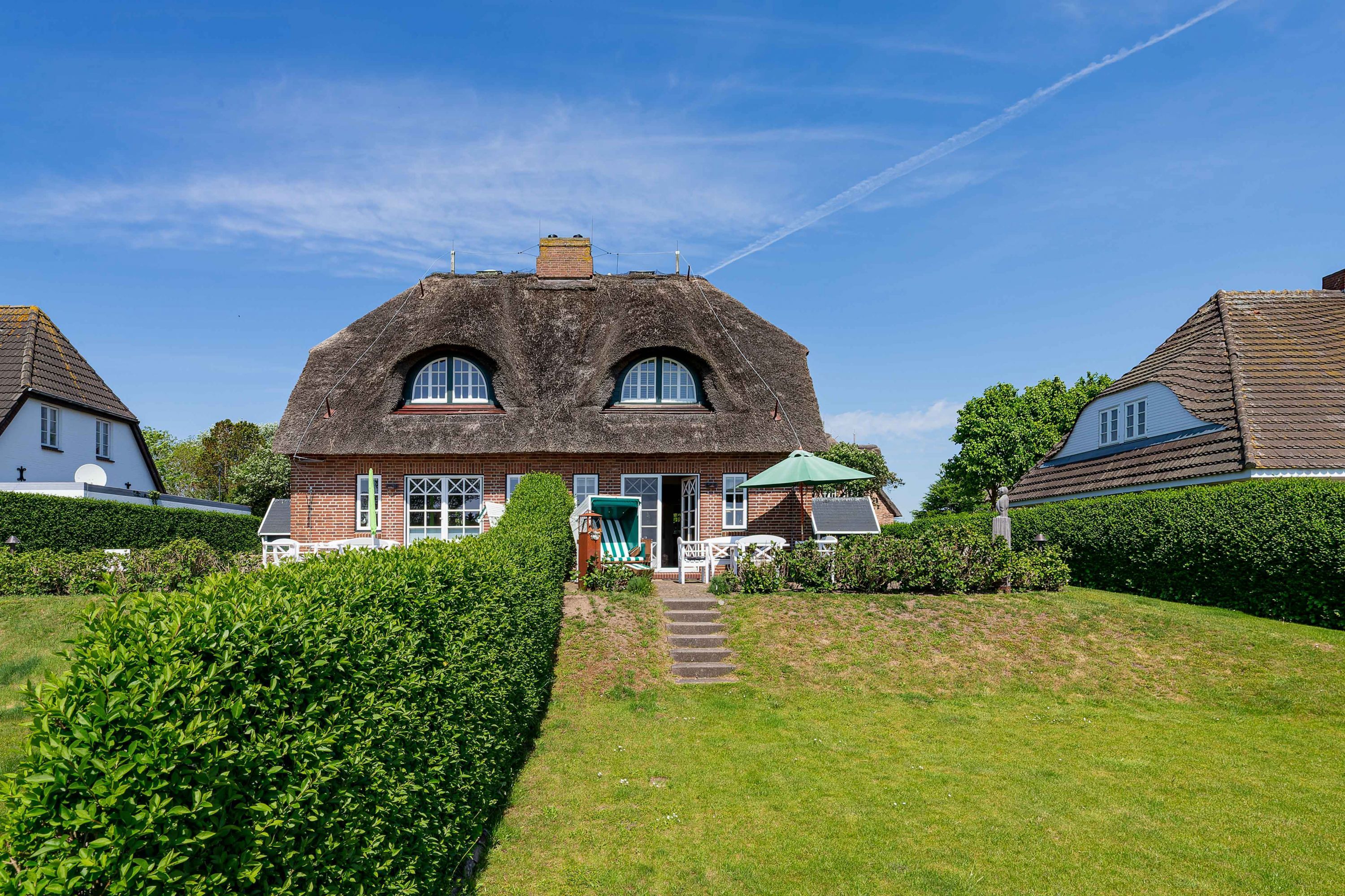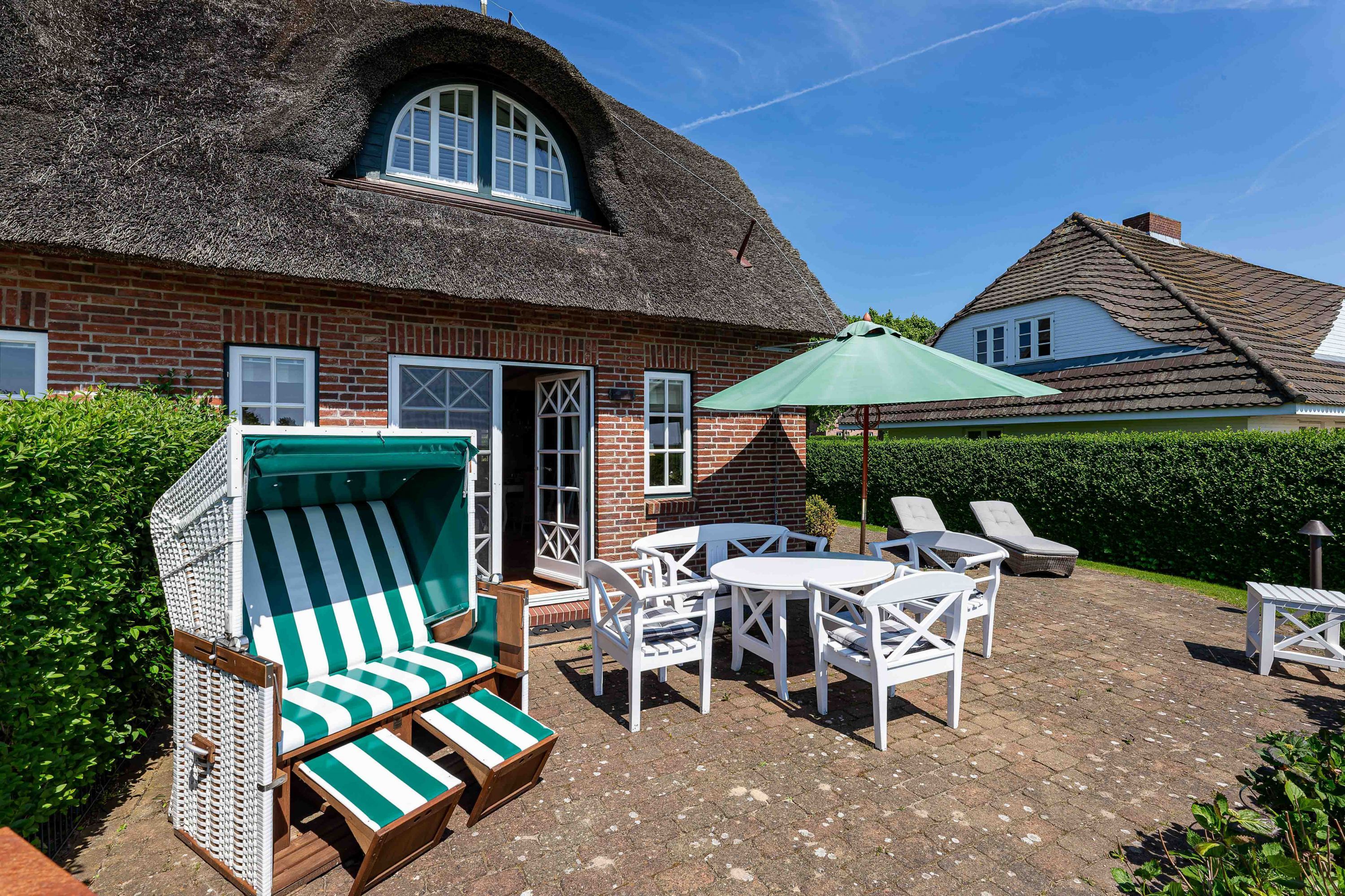 Nur wenige Gehminuten vom Meer und Strand entfernt liegt das sehr gepflegte Reetdachobjekt an der Traumstraße Hier können Sie Nordseeurlaub pur genießen. Morgens weht der Wind die salzhaltige Luft vom Meer direkt durch Ihre großzügige Haushälfte. Entweder gehen Sie nun sofort schwimmen oder genießen einfach einen schönen Tag im Haus oder Garten. Die gemütlich eingerichtete Haushälfte bietet jede Menge Platz und viel Komfort für einen erholsamen Urlaub. Sie werden Ihren Aufenthalt genießen. Wir freuen uns auf Sie.