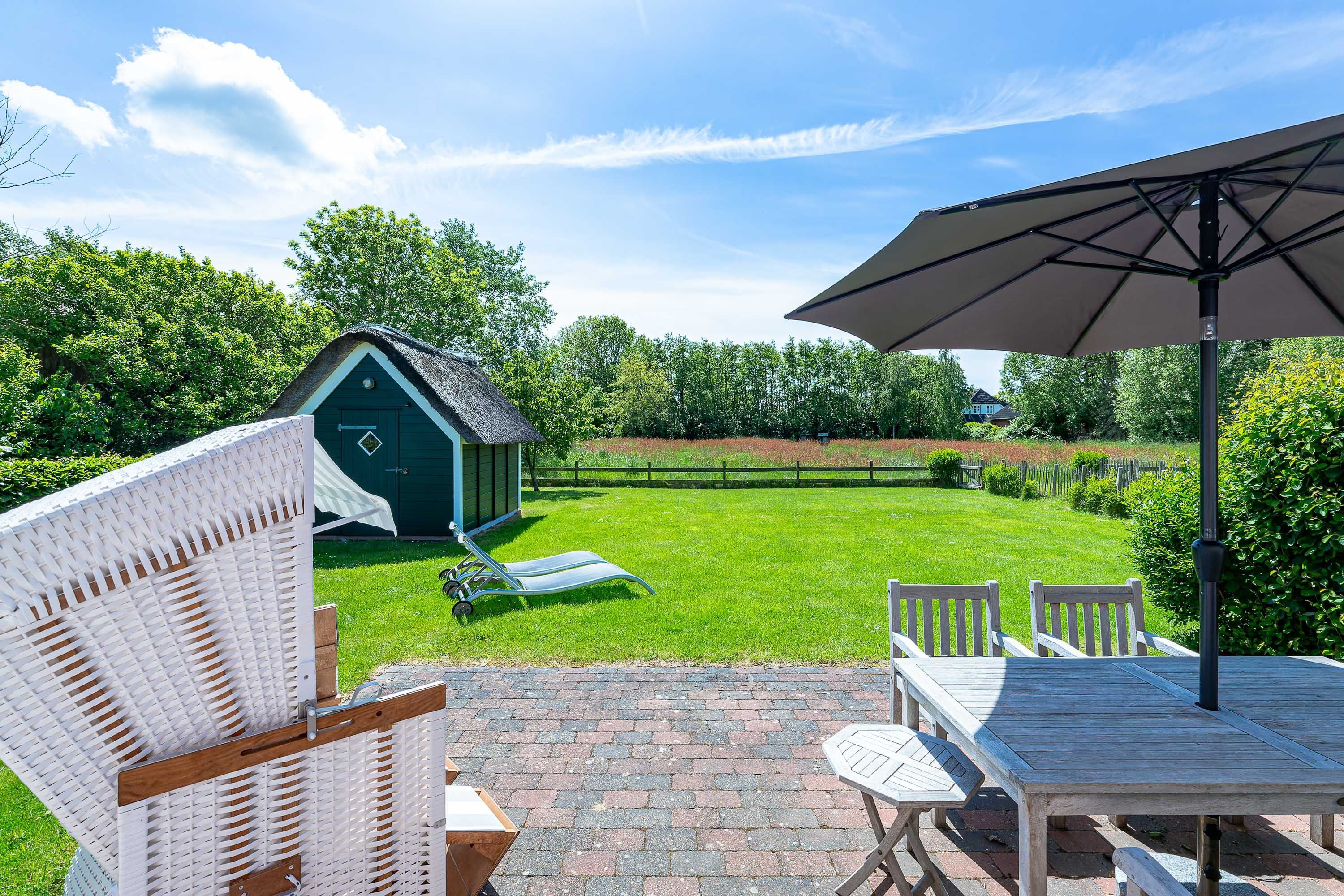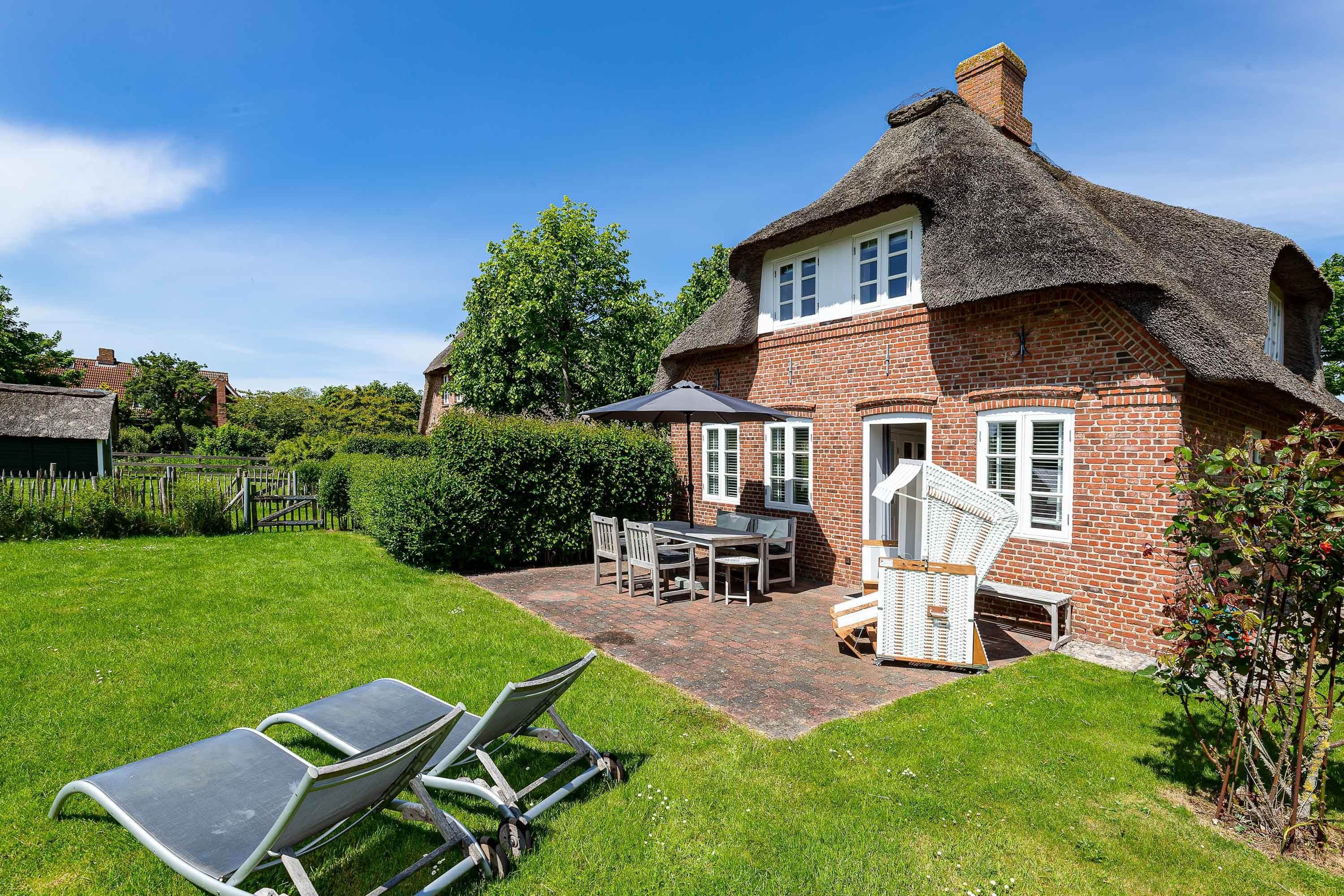 Herzlich Willkommen in unserem neuem Feriendomizil in ländlicher Idylle von Oldsum. Das Friesenhaus ist mit viel Liebe im traditionellen inseltypischen Baustil direkt am gewachsenen Ortskern entstanden. Ein typischer Friesenwall, Linden und Obstbäume rahmen das Kleinod ein und lassen jede Hektik und Stress vergessen. Auch im Haus zeigt sich die alte friesische Bauweise mit Balkendecken, schönen Holzarbeiten und traditionellen Details, jedoch mit neuester Technik wie Fußbodenheizung und großzügiger, exklusiver Ausstattung. Genießen Sie den Aufenthalt in der 130 qm großen Friesen-Kate ebenerdig und unter dem gemütlichen Dach des Hauses mit bis zu 5 Personen. Nutzen Sie den großen, eingezäunten Sommergarten mit Blick in die herrliche Natur und auf das Reet gedeckte Friesendorf.