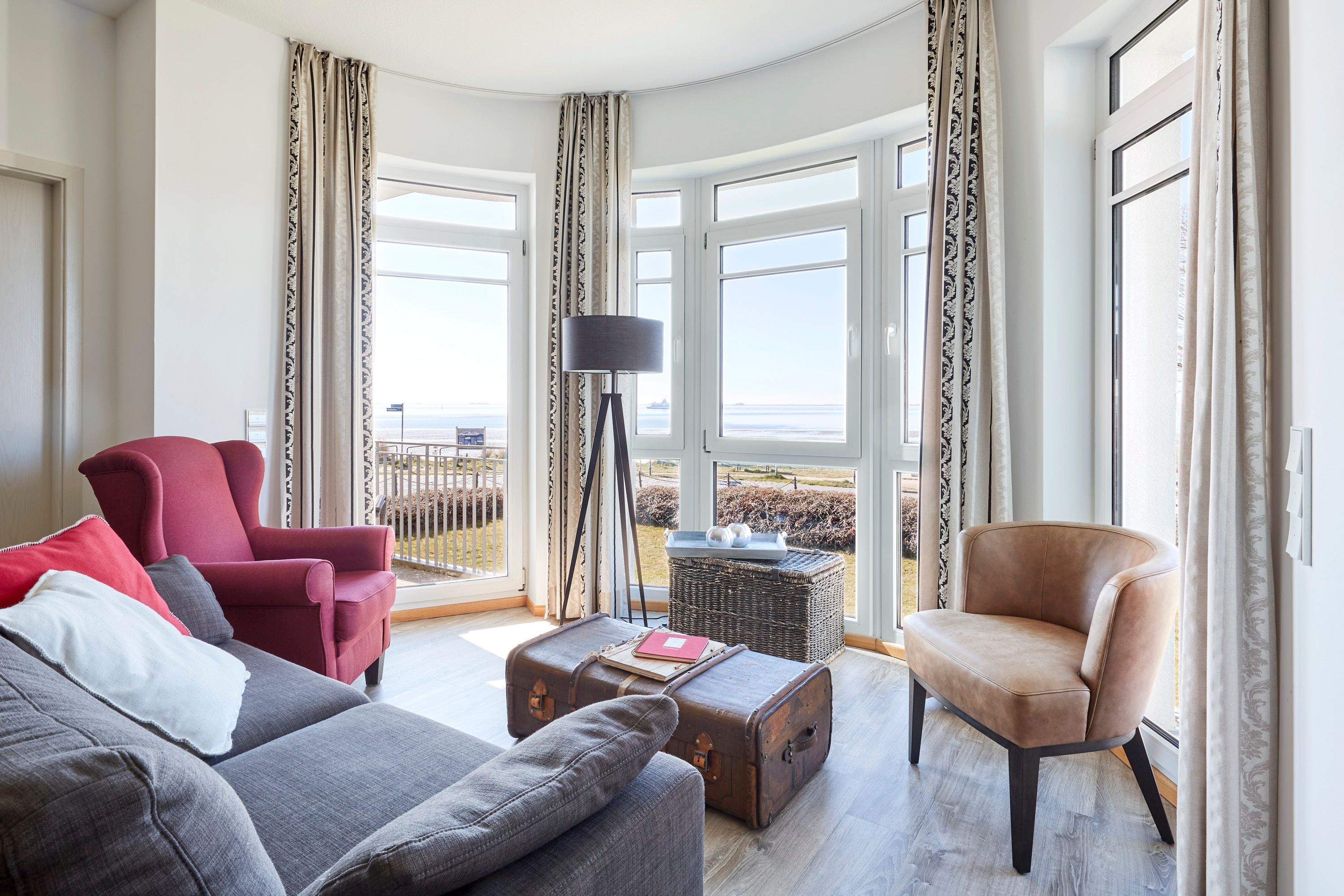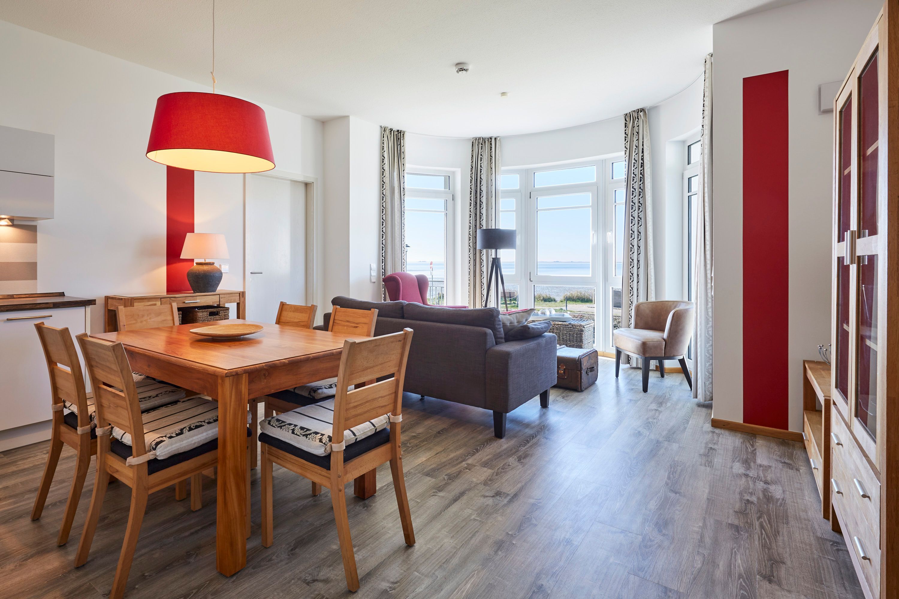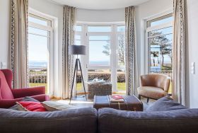 Wir begrüßen Sie im Schloss am Meer, der exklusiven Wohnanlage direkt am Wyker-Südstrand gelegen. Ihre Wohnung liegt Hochpaterre hinter der historischen Fassade, welche beim Neubau erhalten wurde. Hier laden drei Balkone ein, den Blick auf die Nordsee und den Halligen zu genießen. Ein einzigartiger Panoramablick erwartet Sie. Genießen Sie die Sonne schon beim Frühstück! In nur wenigen Schritten befinden Sie sich auf der Promenade, die Sie ins Herzen von Wyk führt. Hier laden Geschäfte zum bummeln ein, Cafes und Restaurants verwöhnen Sie mit kulinarischen Köstlichkeiten.