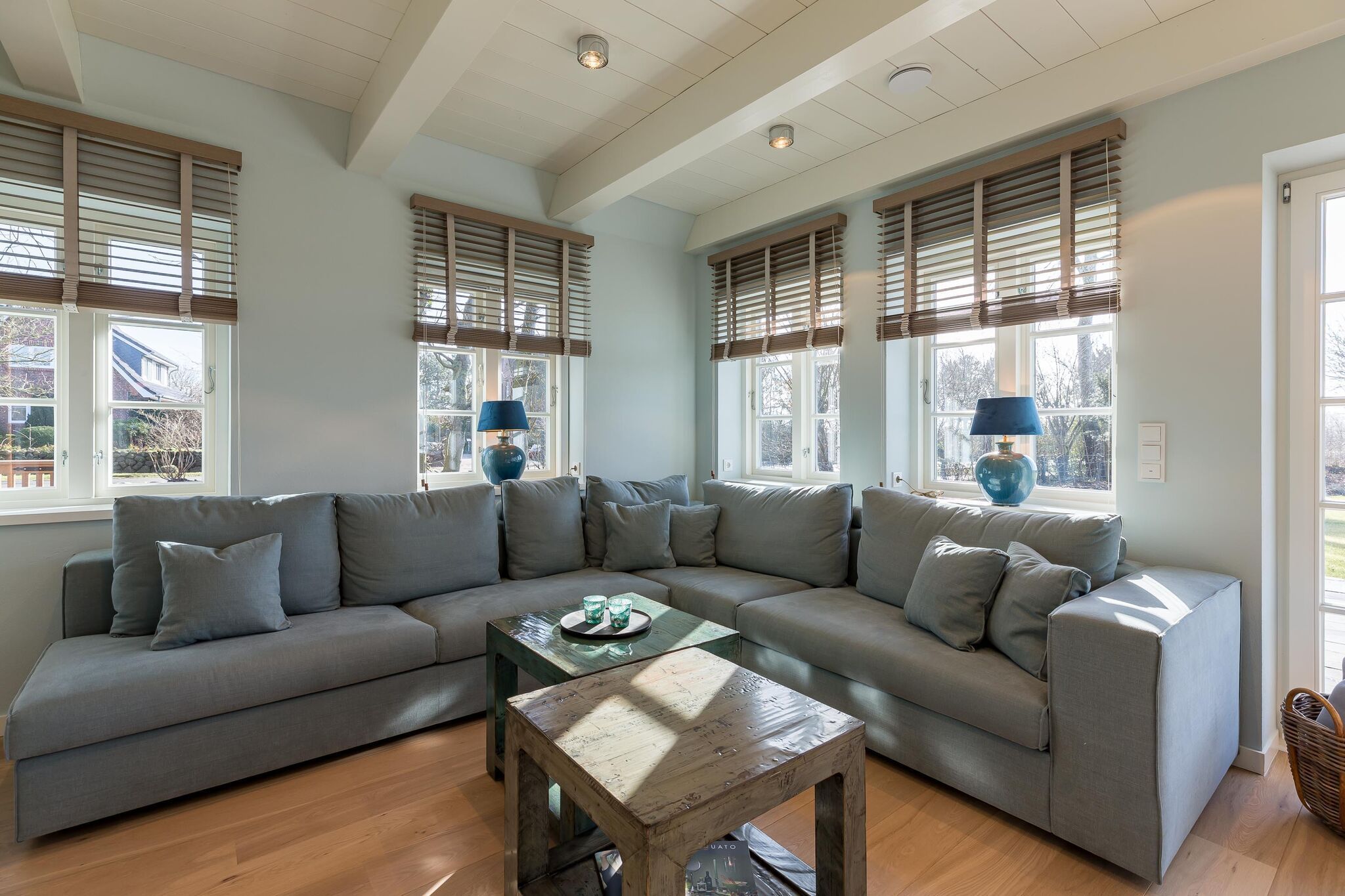 Schon wenn Sie das Haus erblicken, werden Sie begeistert sein. Der liebevoll gestaltete nach Süden und Westen ausgerichtete Garten, der typische Friesenwall, die weiten Rasenflächen und die Terrassen laden zum Verweilen ein. Das Haus ist mit sehr hochwertigen Materialien ausgestattet, mit liebevollen Details dekoriert und lässt keine Wünsche offen. Den großzügigen Wohnraum verbindet ein Gas-Kamin, der für gemütliche und erholsame Stunde in der kalten Jahreszeit sorgt, mit dem angrenzenden Essbereich. Ein Highlight ist sicherlich die technisch perfekt ausgestattete offene Küche mit großem Küchenblock. Hier wird gekocht und gelebt. Eines von drei Schlafzimmern befindet sich im Erdgeschoss, die Weiteren im Obergeschoss. Aus dem Fenster des Süd-Schlafzimmers mit Bad en suite im Obergeschoss sehen Sie die Segel der Kitesurfer am Nieblumer Strand. Das Haus verfügt über insgesamt drei hochwertige Bäder mit modernen Duschen, eines davon zusätzlich mit Badewanne. Dort befindet sich auch eine kleine aber feine Sauna. In Nieblum, dem wohl schönsten Dorf der Insel, finden Sie nicht nur eine erstklassige Infrastruktur (Bäcker, Metzger, Fischhändler, Lebensmittelmarkt, Strandladen, (Eis-) Cafés, Minigolf, Restaurants etc.) sondern auch alte Kapitänshäuser, bunte Bauerngärten, Baumalleen und reetgedeckte Friesenhäuser - der perfekte Ausgangspunkt für einen erholsamen Urlaub. Und auch zum berühmten Golfclub Föhr sind es nur ein paar Minuten mit dem Auto, das sie - sofern es elektrisch oder hybrid betrieben wird - an unserer eigenen Ladestation laden können.