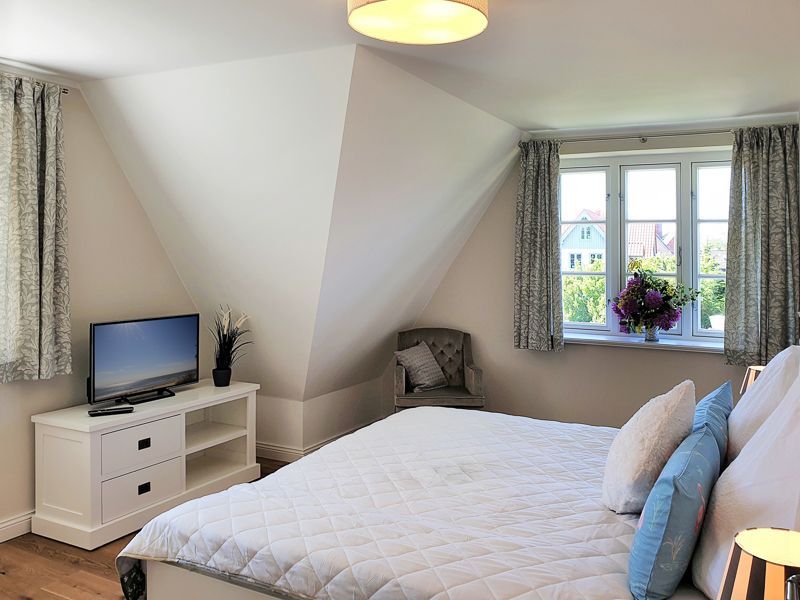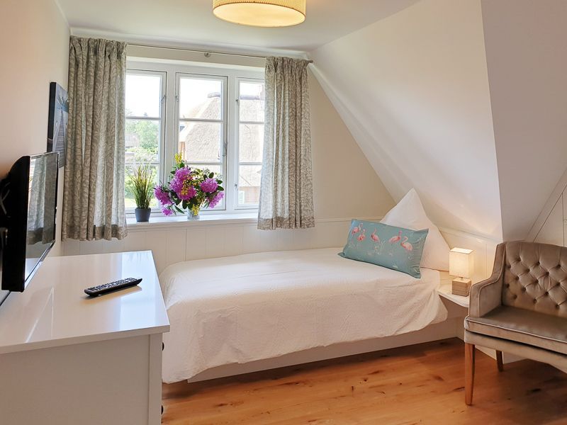 Nahe zum Stadtkern Wyk erwartet Sie ein typisches Friesenhaus mit schönen Details wie ein Reetdach, Holzsprossenfenster, ausgewählte Fliesen und passgenaue Tischlerarbeiten. In dieser modernen Doppelhaushälfte haben Sie alles was den Urlaub auf einer Nordseeinsel so typisch macht.. Der große Garten lädt schon bei den ersten Sonnenstrahlen dazu ein, draußen zu sitzen und die Nordseeluft zu spüren..Mit nur wenigen Schritten gelangen Sie in den Stadtkern von Wyk. Hier laden zahlreiche Geschäfte, Cafes und Restaurants zum bummeln und einkehren ein. Von der Promenade haben Sie einen wunderbaren Blick auf die Nordsee und die Halligen Urlaub pur!.