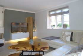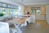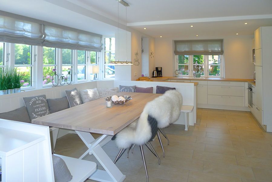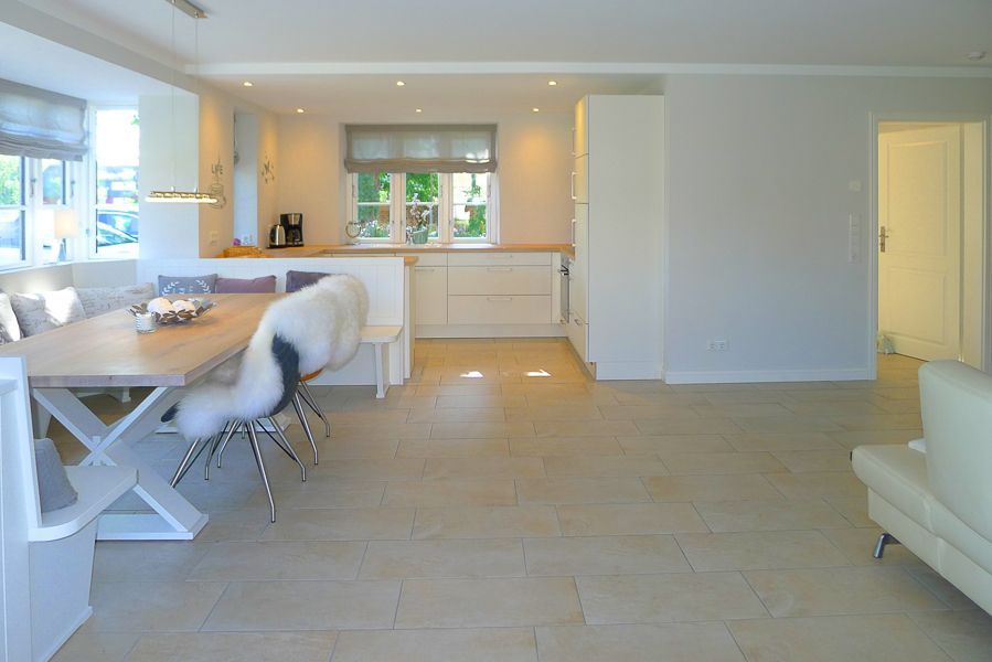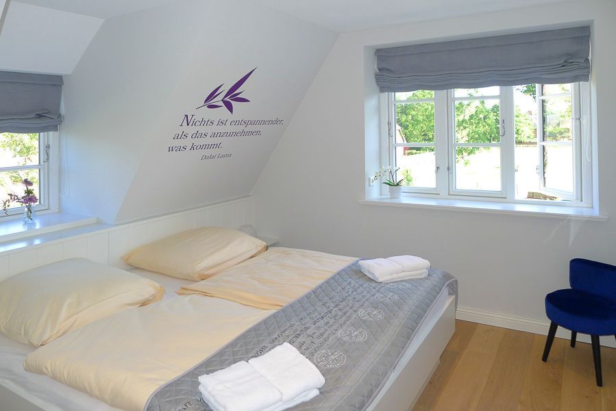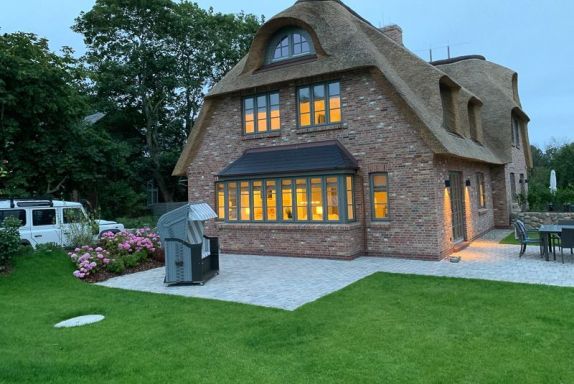 Wohnen Sie in Ihrem Urlaub in dieser schönen Reetdachhaushälfte mit wunderschönen Details und exklusiver Ausstattung. Ihre ganze Familie hat ausreichend Platz und wird sich wohlfühlen. Erholsamen Urlaubstagen steht nichts im Weg, dafür sorgt die Sauna mit Relaxraum im Dachboden, der gemütliche Kachelofen im großzügigem Wohn-Essbereich und die sonnige Terrasse. Egal welche Jahreszeit Ihr Favorit für einen Nordseeurlaub ist – hier steht die Erholung in Ihrem Urlaub immer im Vordergrund. Mit nur wenigen Schritten gelangen Sie nach Wyk ins Stadtzentrum und damit auch zur Strandpromenade. Cafes und Restaurants laden zum Schlemmen ein und viele kleine und große Geschäfte warten darauf von Ihnen entdeckt zu werden – und das alles mit wunderbarem Blick auf die Halligen und die Nordsee.