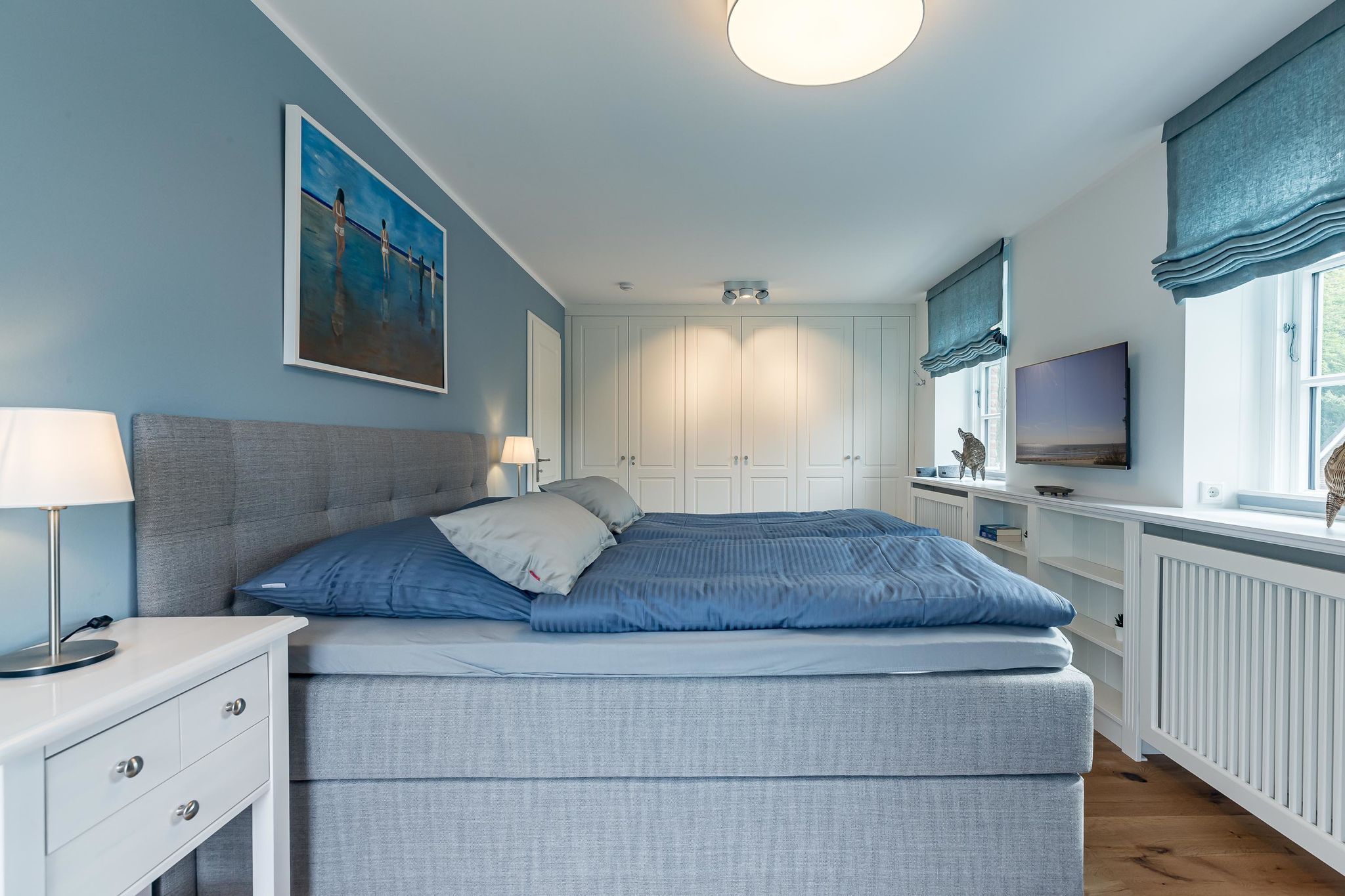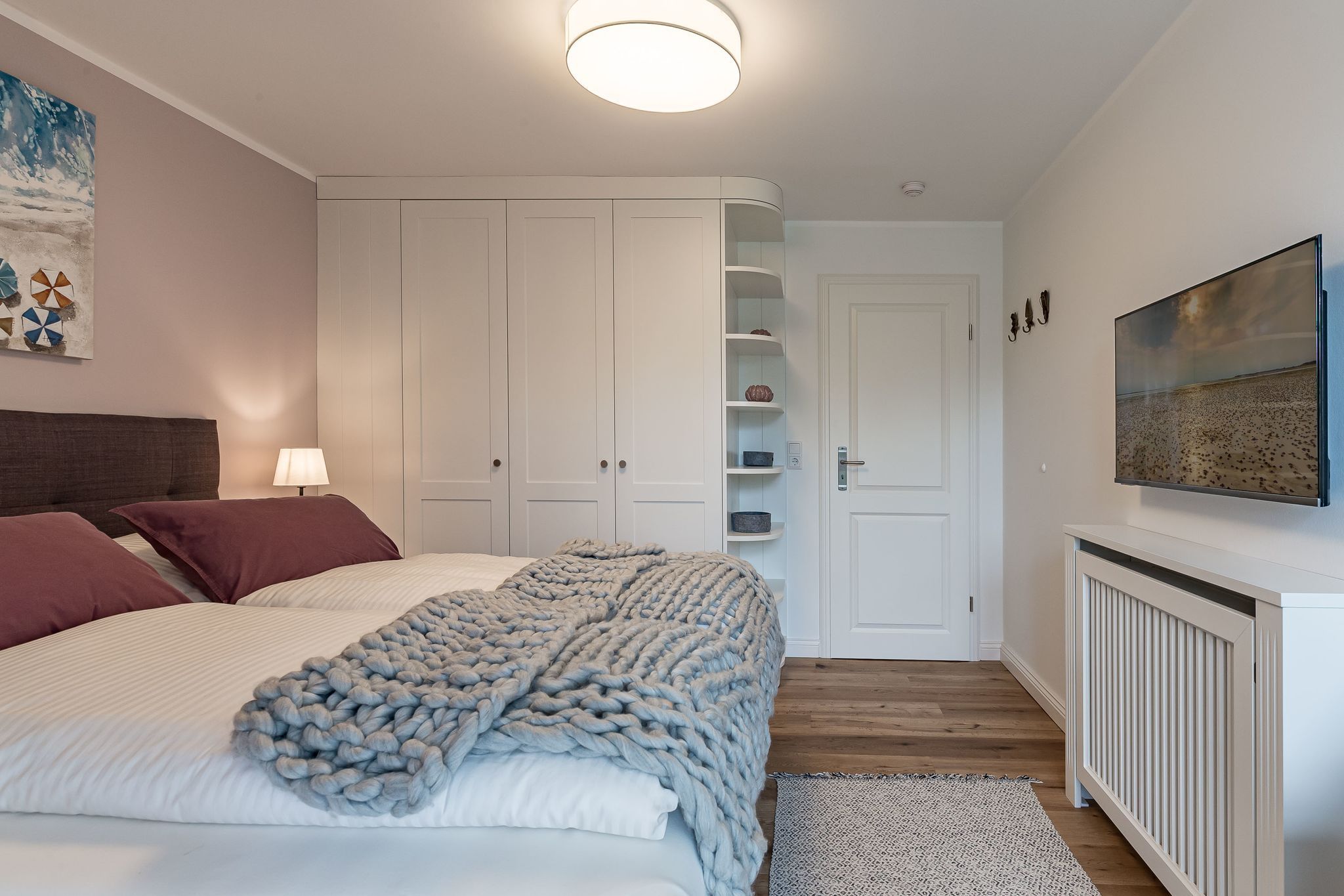 Schönes Doppelhaus in moderner Architektur wartet im Grünstreifen in Wyk auf Ihren Besuch. Klare Formen und Farben sorgen für eine ruhige und entspannte Atmosphäre. Die ganze Familie findet ausreichend Platz im Haus. Gemütliche Abende vor dem Kamin mit Wellness in der eigenen Sauna gehören in den kalten Monaten genauso dazu wie die Stunden im eigenen Strandkorb im Garten und dem Frühstück auf der Terrasse. Der Weg zum Strand ist in wenigen Minuten zu Fuß zu meistern und das bunte Leben in Wyk liegt genauso nahe. Wir freuen uns auf Sie!