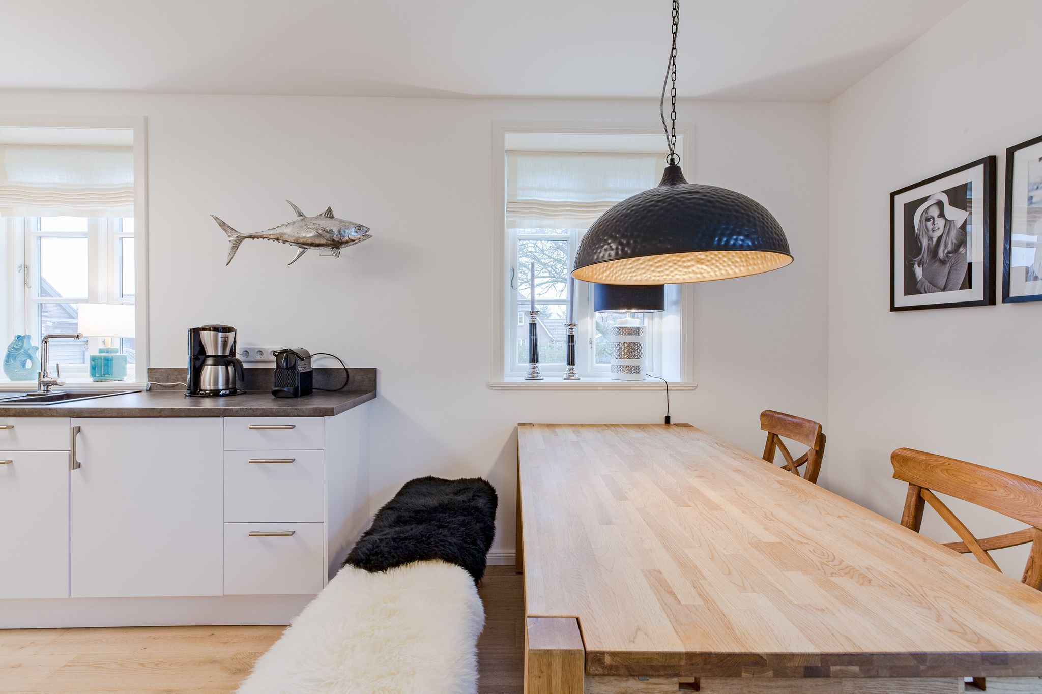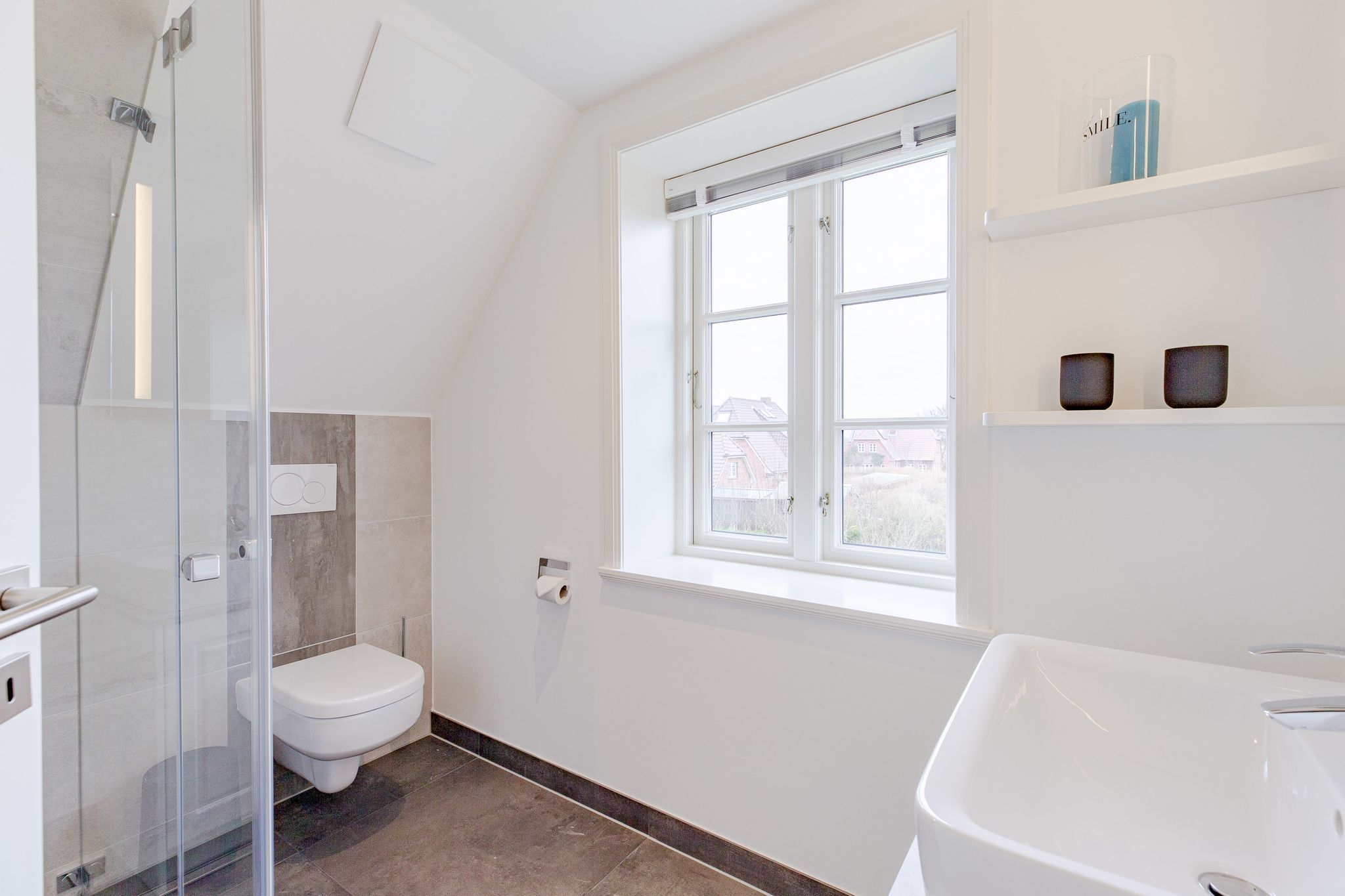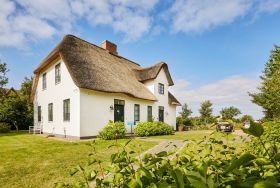 Neues Wohnen in Utersum - im Westen der Insel Föhr und in naher Strandlage. Die Merkmale eines norddeutsches Friesenhauses sind hier eindeutig erfüllt. Weißes Mauerwerk und ein Reetdach sind typisch für diese Form des Doppelhauses. Auch wurde Wert auf den KfW Standart gelegt ohne dabei die Gemütlichkeit und Modernität im Inneren zu vernachlässigen. Im Erdgeschoss befindet sich der Wohn- Essbereich mit offener Küche und Zugang zur Südterrasse. Die Schlafräume sind im Obergeschoss untergebracht. Der Reiz dieses Ferienhauses liegt - neben der Ausstattung - eindeutig an der tollen Lage in Triibergem, in Utersum. Mit nur wenigen Schritten laufen Sie den Noorder Kaalkamp entlang und schon treffen Sie auf den Deich. Dahinter haben Sie einen Blick bis nach Sylt und Amrum. Auch die spektakulären Sonnenuntergänge auf Föhr erleben Sie hier- diesen sind jeden Abend einen Spaziergang wert.