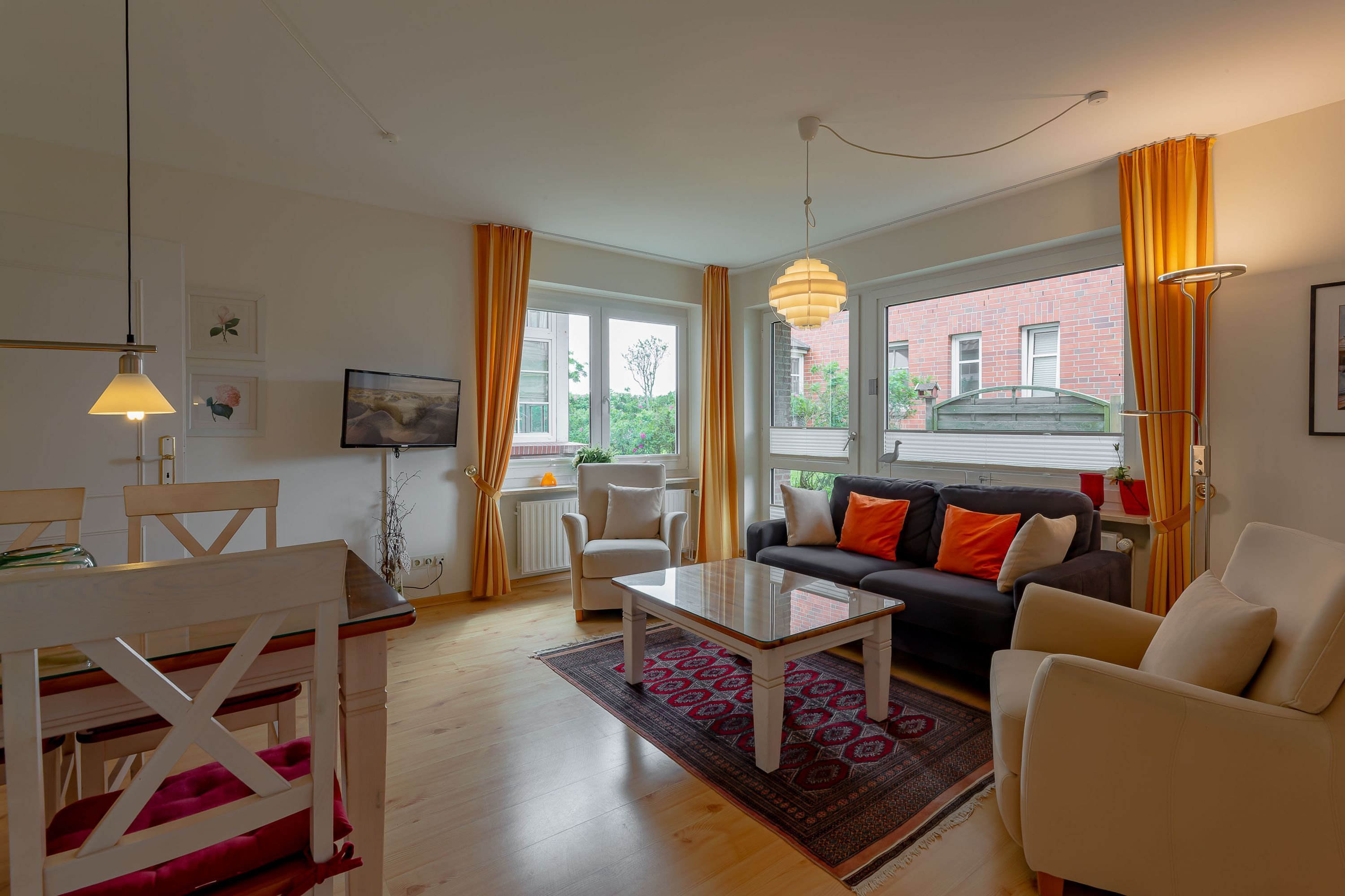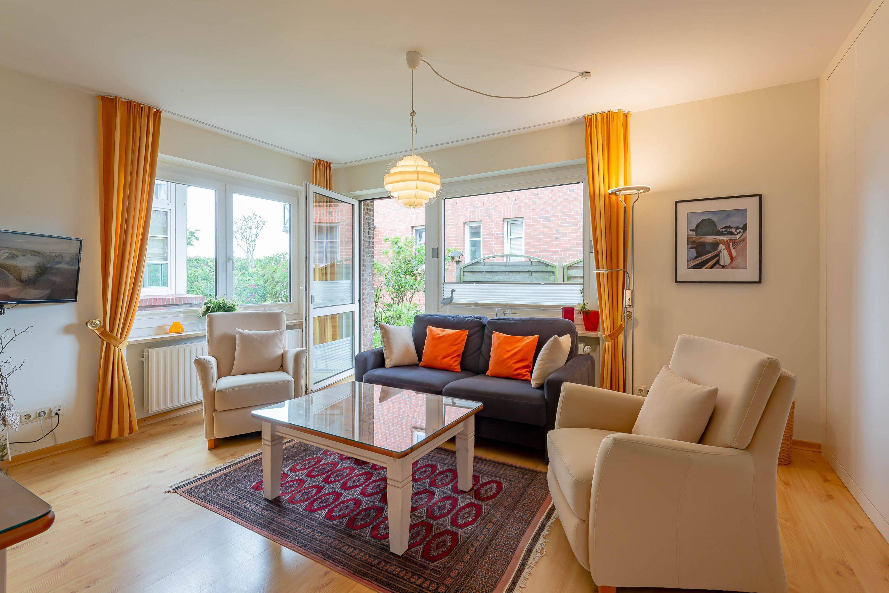 Wohnen am Wyker Südstrand im Haus Pidder-Lyng. In der ersten Reihe am Meer finden Sie in Haus Pidder-Lyng drei schöne Apartments die zum Urlaub am Meer einladen. Fühlen Sie die Nordseebrise und hören die Nordseewellen rauschen. Nur wenige Schritten und Sie haben Sand unter Ihren Füßen. In der Wohnung 2 im Erdgeschoss genießen Sie Ihr Frühstück auf Ihrer Terrasse. Die Wohnung ist der perfekte Ausgangspunkt für Ihren Urlaub auf Föhr. Nur wenige Schritte und Sie sind auf der Promenade die Sie ins Herz von Wyk fährt.