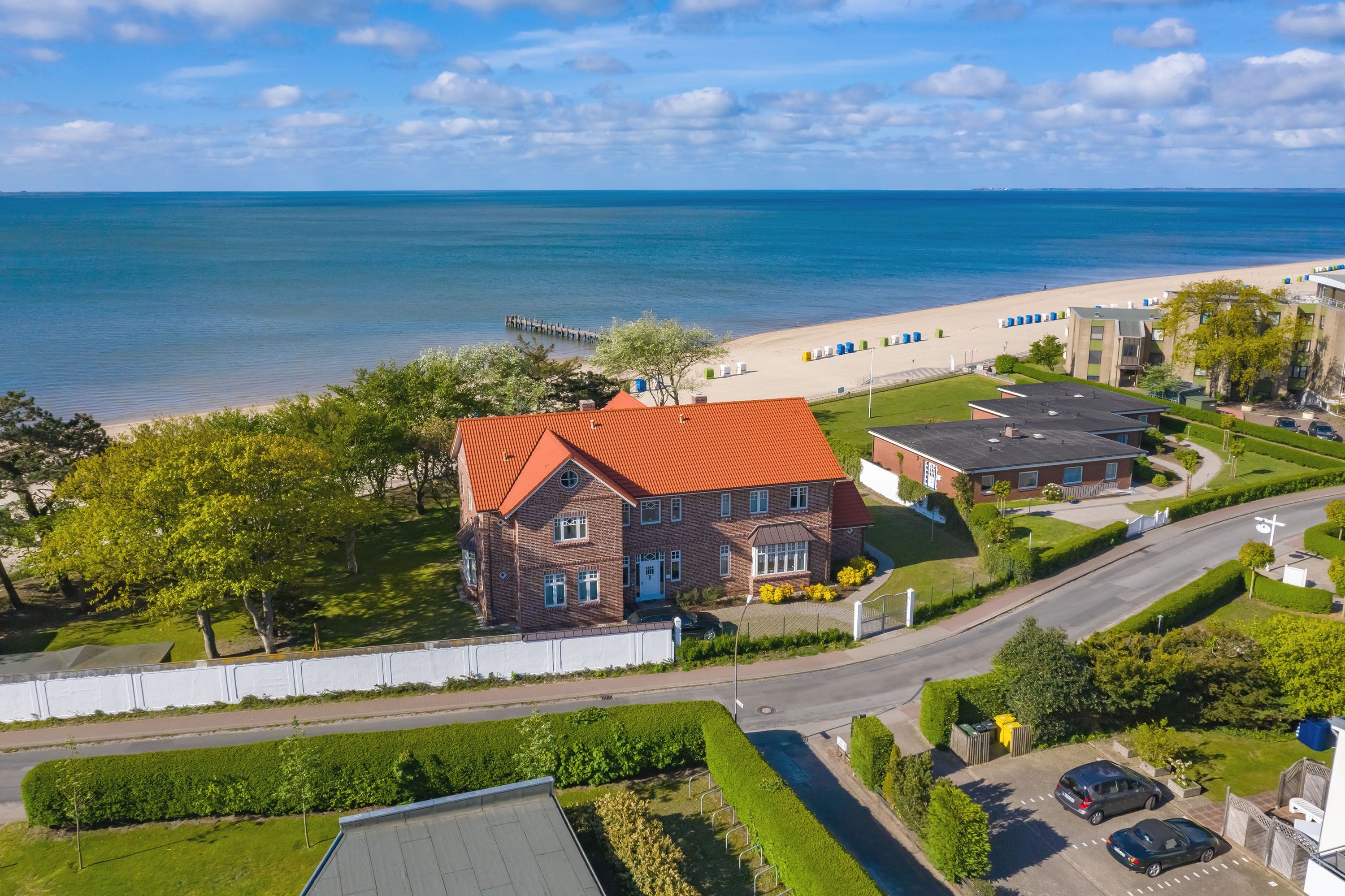 Urlaub am Meer im Haus am Südstrand. Direkt am Wyker Südstrand befindet sich unser Ferienhaus mit zwei Wohnungen auf einem ca. 3.000 qm großem, vollständig eingezäunten Grundstück. Vor rund 100 Jahren wurde das ursprüngliche Haus erbaut und genau an der gleichen Stelle steht nun das neue Haus am Südstrand. Es teilt sich in eine Wohnung mit Terrasse im Erdgeschoss und eine Wohnung mit zwei Balkons im Obergeschoss und Gartennutzung. Beide Wohnungen haben einen einzigartigen Meerblick, der die Erholung garantiert. Fühlen Sie die leicht Meeresbrise und hören die Wellen an den Strand laufen. Und falls Sie den Blick einmal vom Meer abwenden wollen, führt Sie nur ein kurzer Spaziergang in den Stadtkern von Wyk mit vielen Geschäften, Cafés und Restaurants. Wir freuen uns auf Sie!