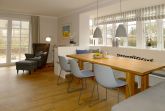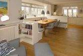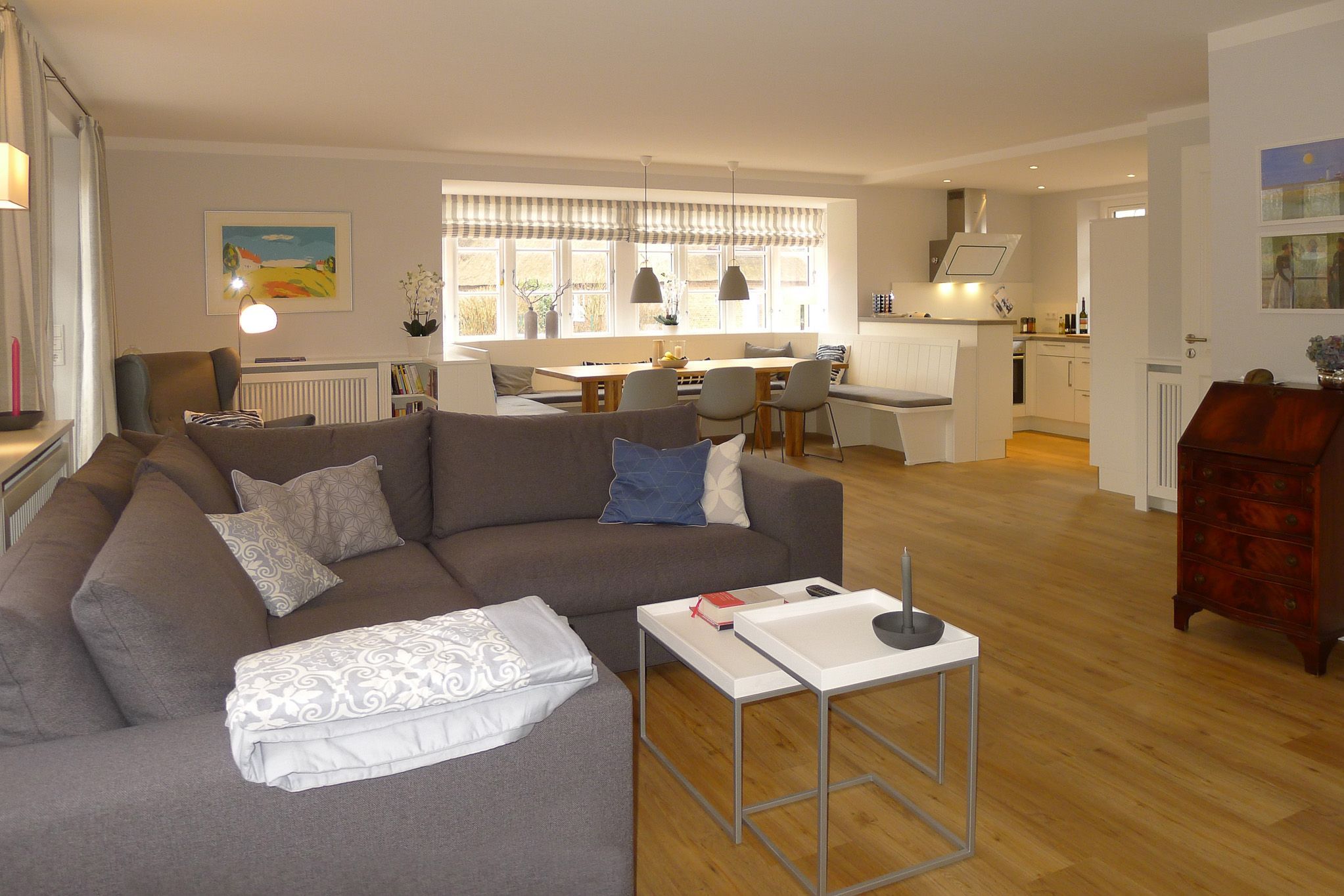 Das Dorf Oldsum, genannt das Künstlerdorf, befindet sich im westlichen Teil Föhrs. Das Haus steht in einer ruhigen Straße am Rande der Marsch, mit kurzen Wegen zum Edeka Markt mit Bäckerei, zu zwei gemütlichen Cafes und zum Dorfgasthof. Das Reetdachhaus liegt direkt am ausgeschilderten Radwanderweg. Die Haushälfte ist großzügig und hell eingerichtet. Zwei Sonnenterrassen mit südlicher und westlicher Ausrichtung laden zum Sonnenbaden und Grillen ein. Sollten Sie mit einem Elektro Auto anreisen, so befindet sich nahe gelegen eine öffentliche Ladesäule