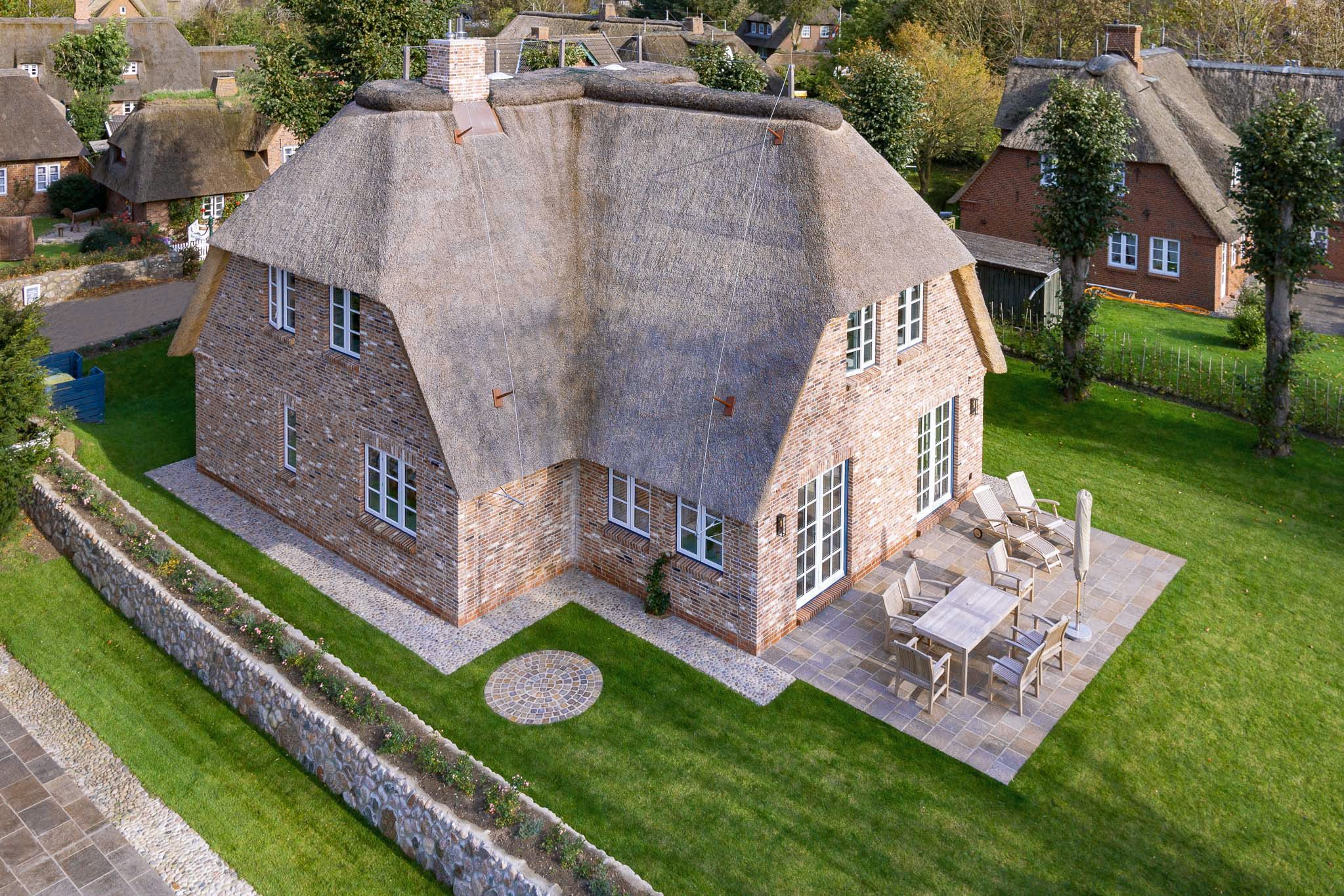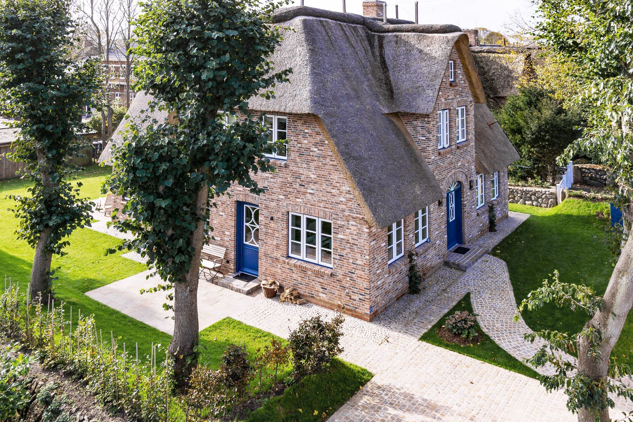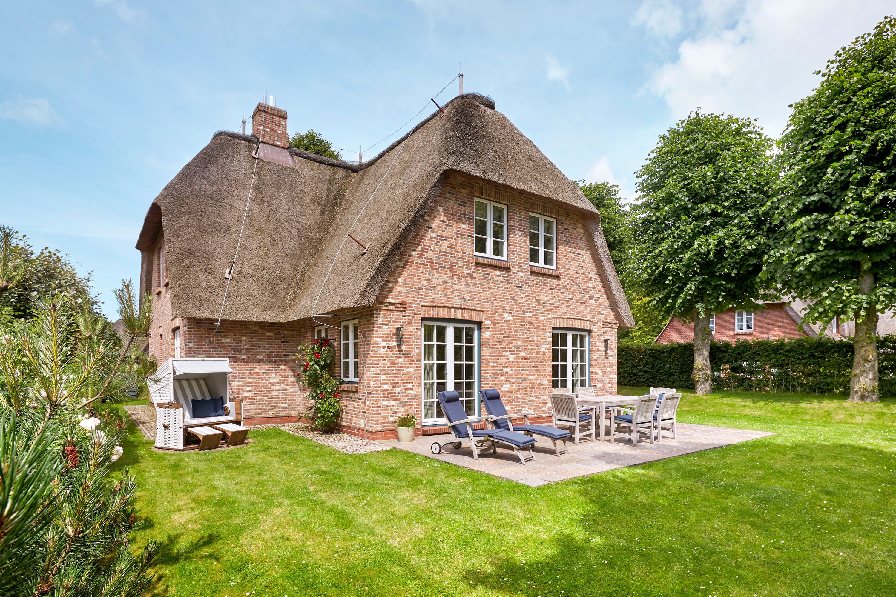 Unser exklusives, mit viel Liebe zum Detail eingerichtete Reetdachhaus mit einer Mischung aus Gemütlichkeit und Moderne lässt keine Wünsche offen. Aus jedem Fenster haben Sie den Blick auf ein wahres friesisches Postkartenmotiv. Das Haus liegt im wunderschönen Ort Nieblum in unmittelbarer Nachbarschaft der alten Kapitänshäuser. Nur wenige Gehminuten entfernt befinden sich schöne Restaurants, gemütliche Kneipen und Einkaufsmöglichkeiten. Der herrliche Nieblumer Sandstrand mit Surfschule ist bequem mit dem Fahrrad oder auch zu Fuß, zu erreichen und bietet vielfältige Möglichkeiten zur Entspannung. Auch zum Golfplatz fahren Sie nur ein kurzes Stück. Der große Garten mit 2 Terrassen und die traumhafte Lage des Hauses mit Blick ins Grüne bietet Ihnen ein erholsames Umfeld, welches Sie selbst auf der Insel Föhr nicht oft finden.