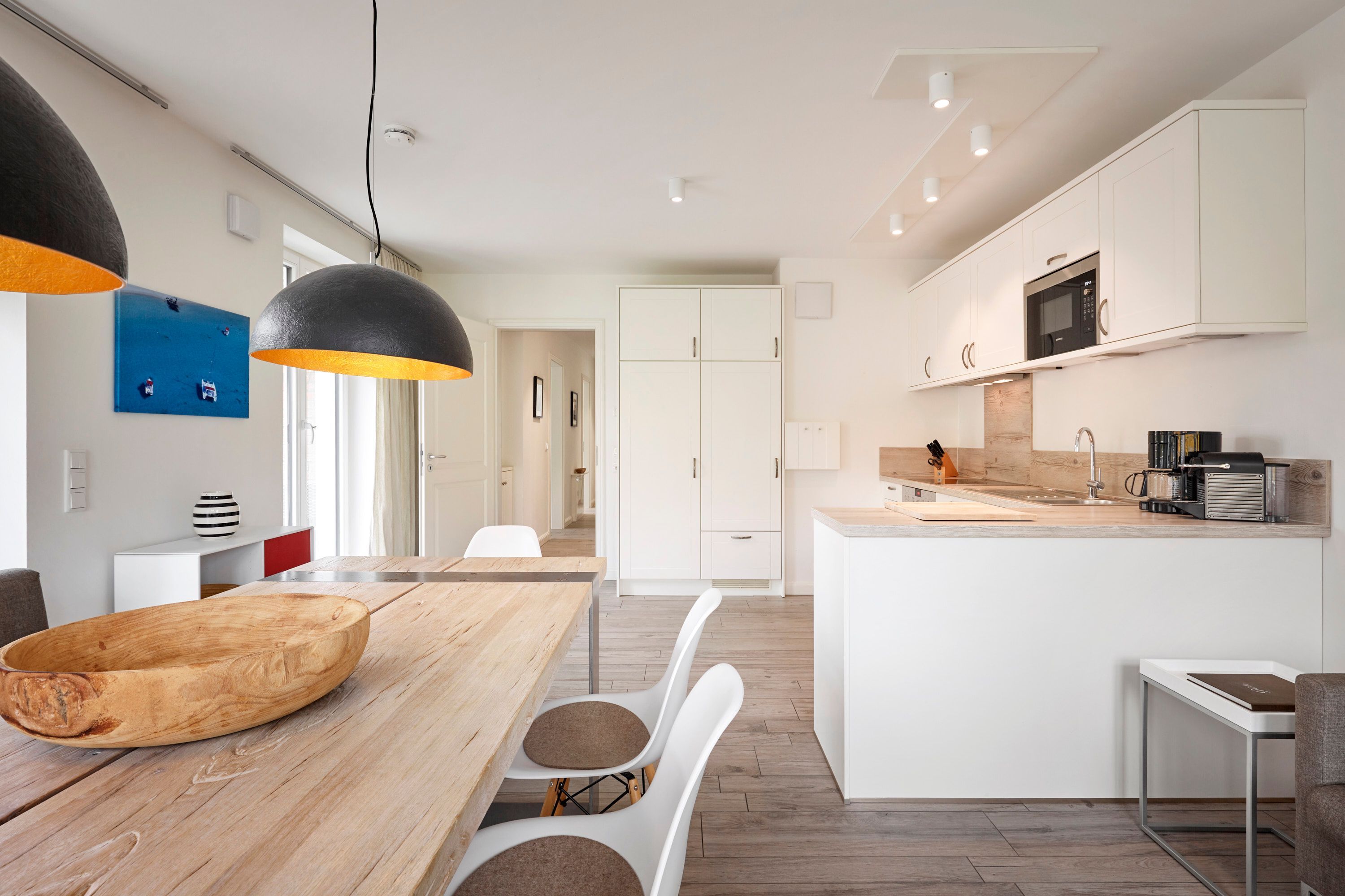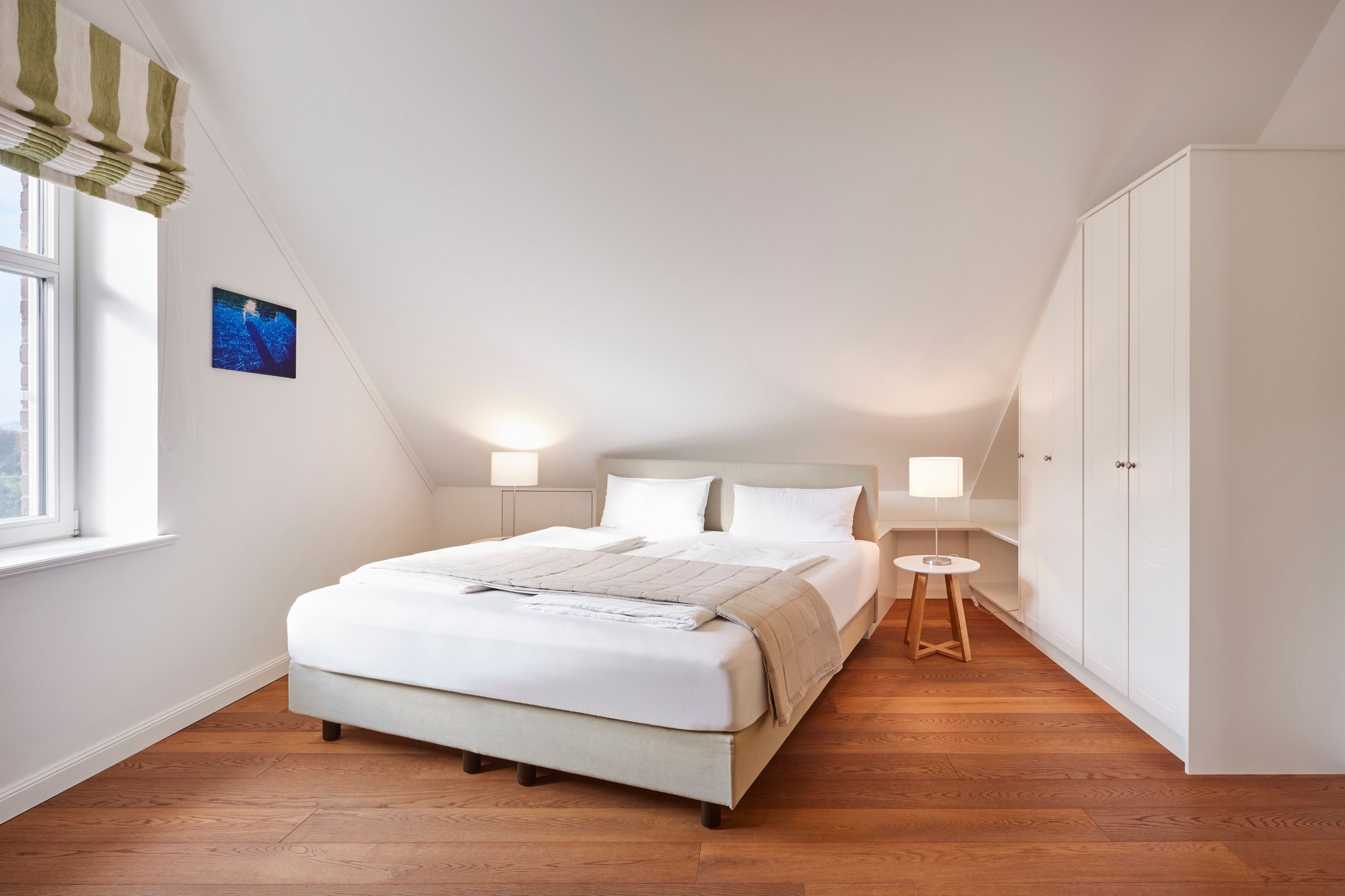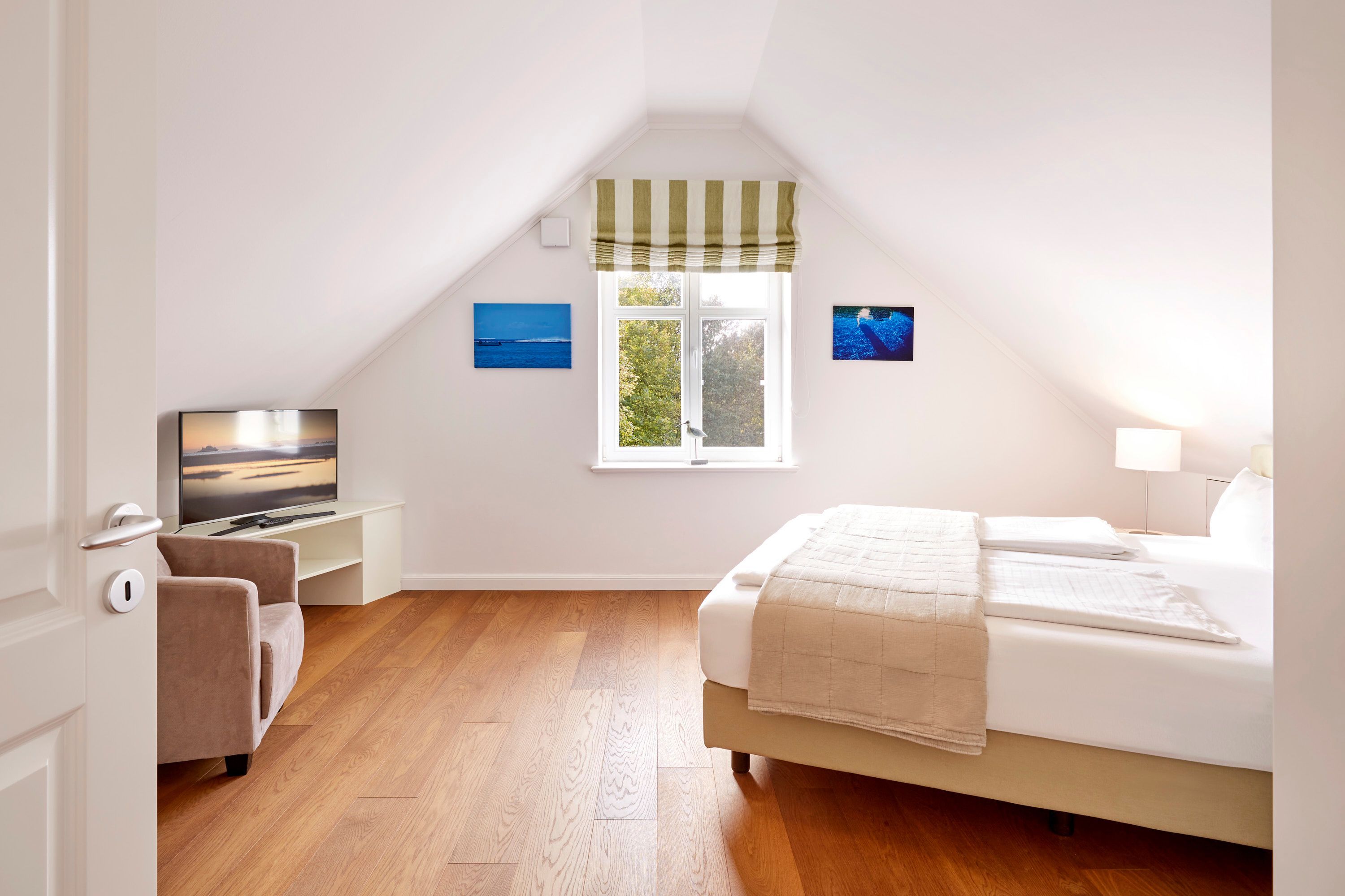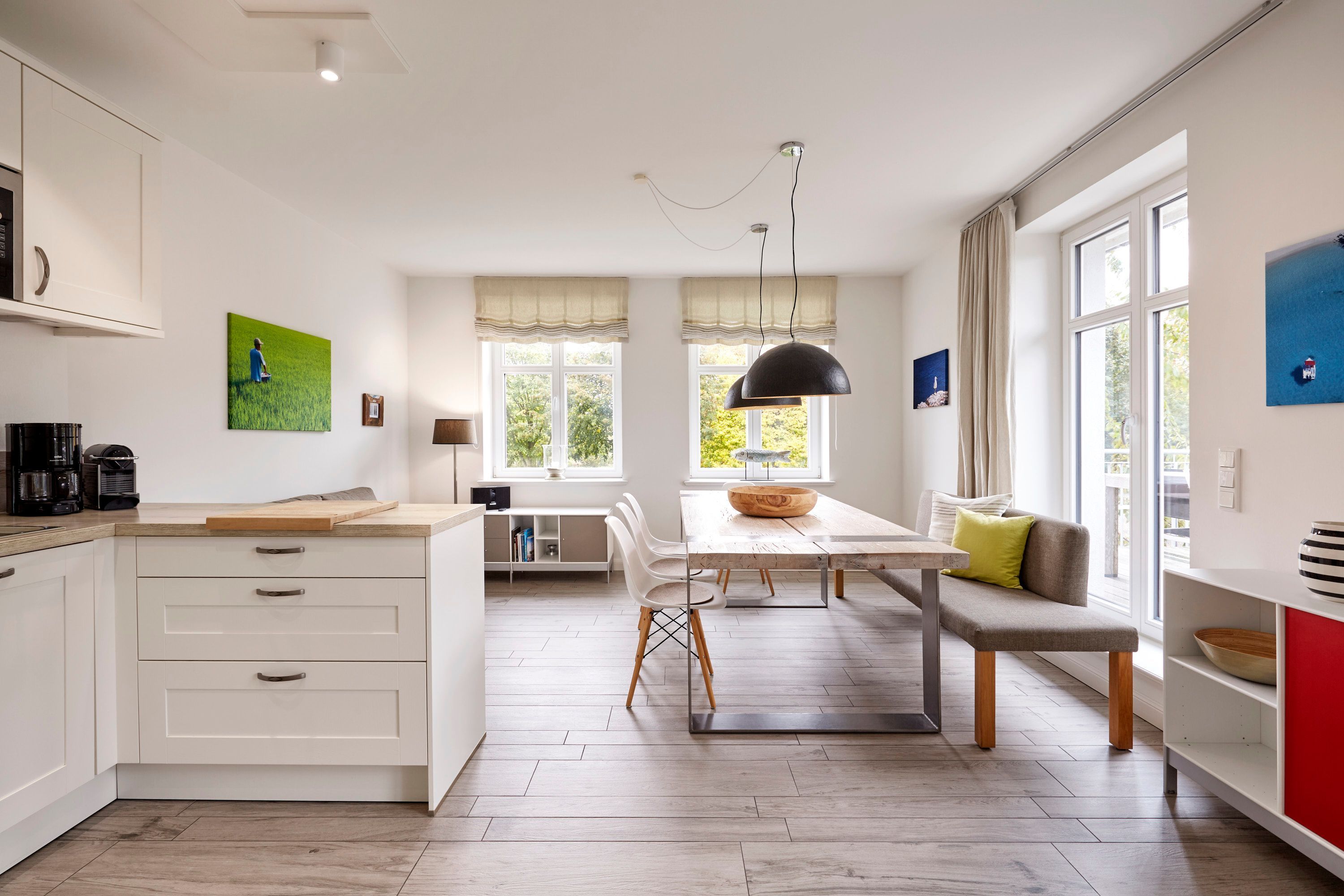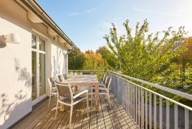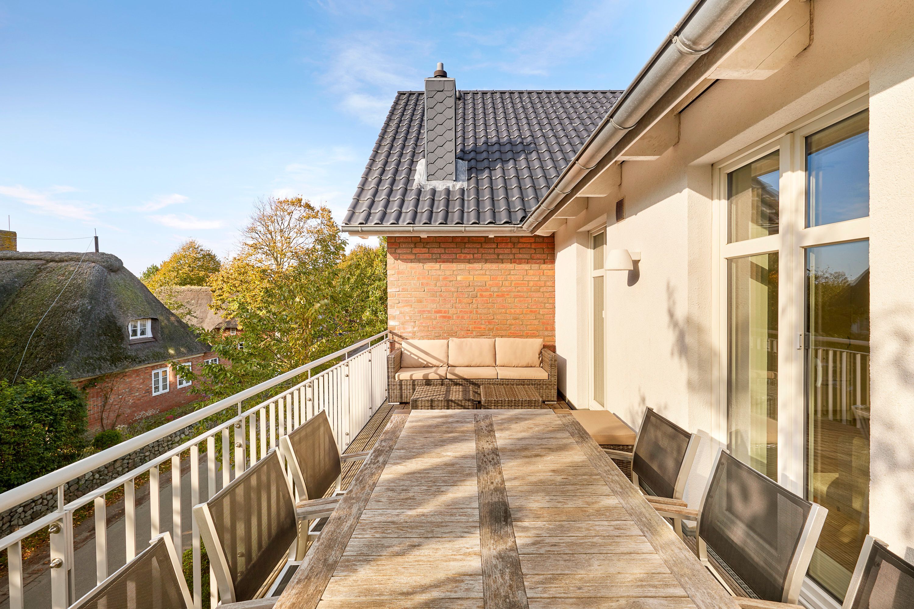 Das Objekt Villa de Meere - mit 8 individuellen und exklusiven Wohnungen - befindet sich in einer ruhigen Seitenstraße nahe zum Nieblumer Ortskern. Die Wohnung Villa de Meere 5 zeichnet sich durch eine große Dachterrasse mit gemütlichen Lounge Möbeln aus. Die Terrasse wird sicherlich Ihr Lieblingsplatz. Hier fängt der Tag mit einem ausgiebigen Frühstück an und am Abend genießen Sie Ihr Glas Wein mit Blick auf die Grünanlage und auf den Dorfteich De Meere. Die Küche, mit dem wunderbar großen Essplatz, ist das Herzstück der Wohnung, Kochen, Klönen und den Urlaubstag planen. Wenn die Zeit zur Entspannung ist, bieten Ihnen die gut geschnittenen Schlafräume viel Platz..Nieblum selbst ist wohl das schönsten Inseldorf und geprägt von reetgedeckten alten Kapitänshäusern, wunderschönen Bauerngärten und dem Friesendom St. Johannis. Der Nieblumer Strand liegt nicht weit vom Ortskern entfernt. Cafés, Restaurants sowie ein Bäcker und Einkaufsmöglichkeiten für den täglichen Bedarf sind im Ort vorhanden und bequem zu Fuß zu erreichen..