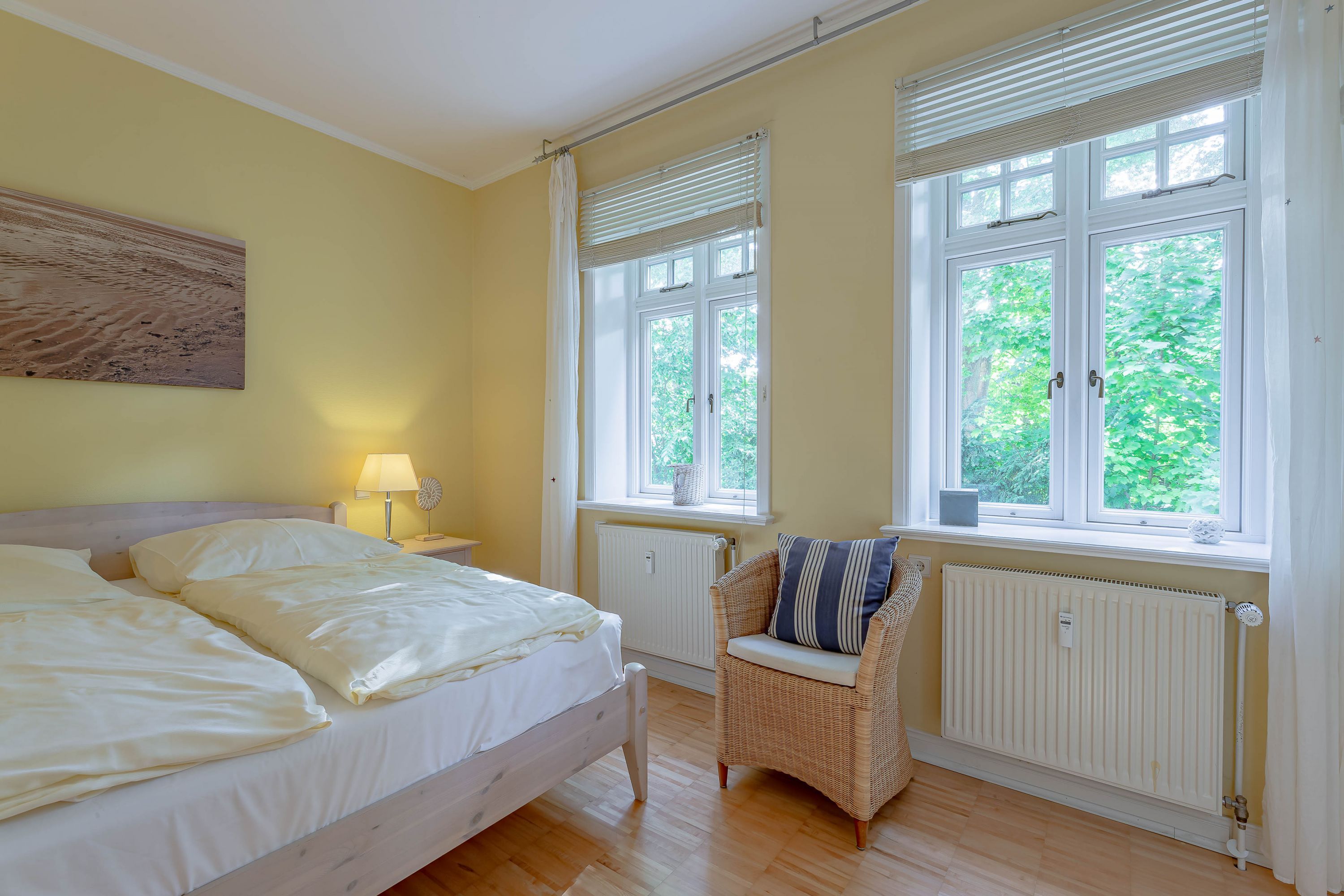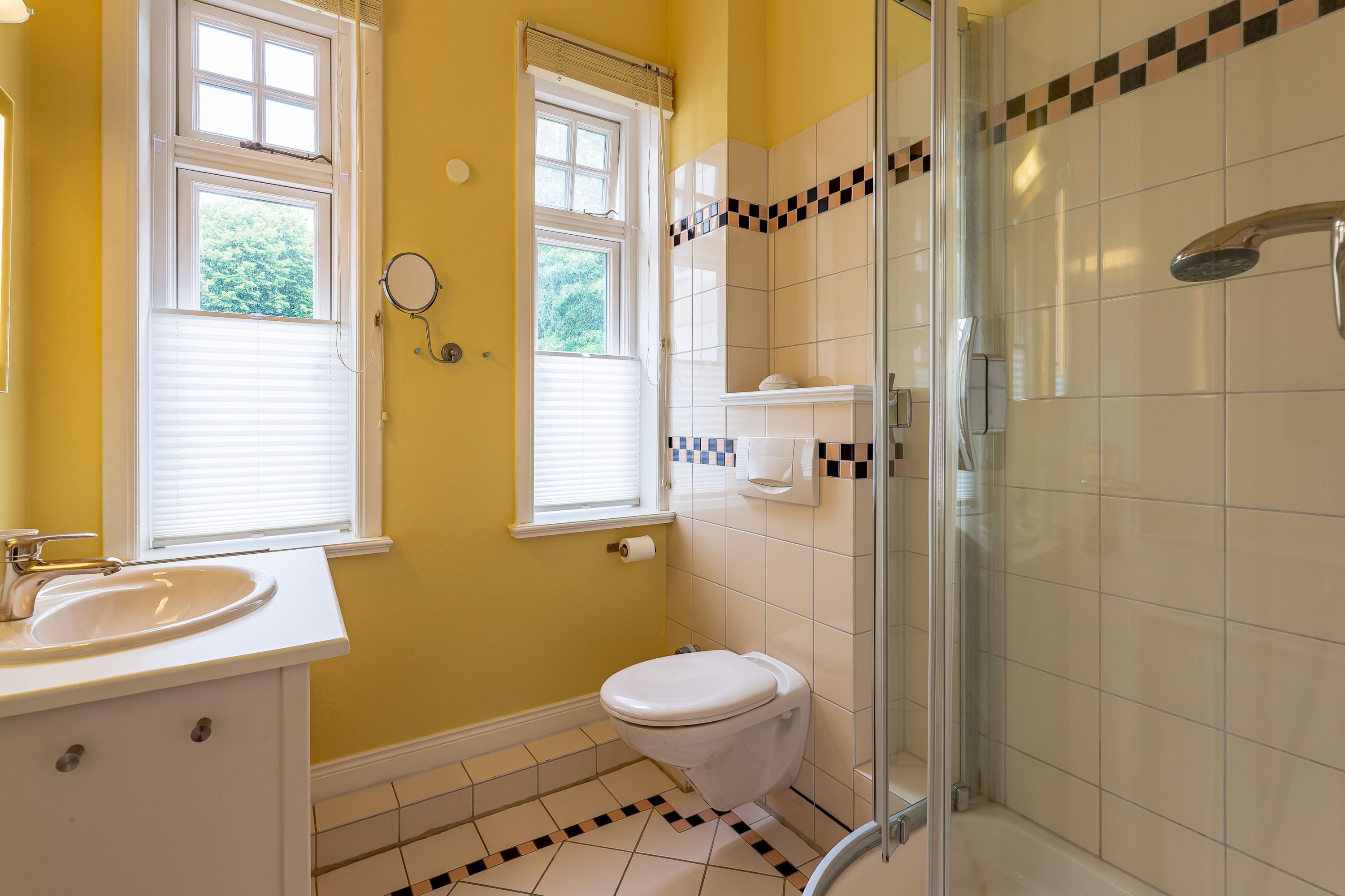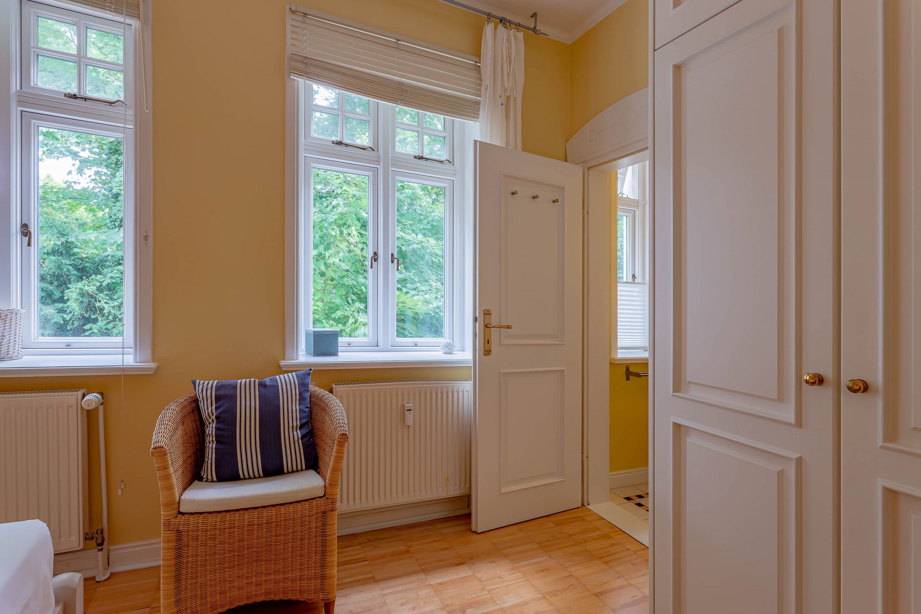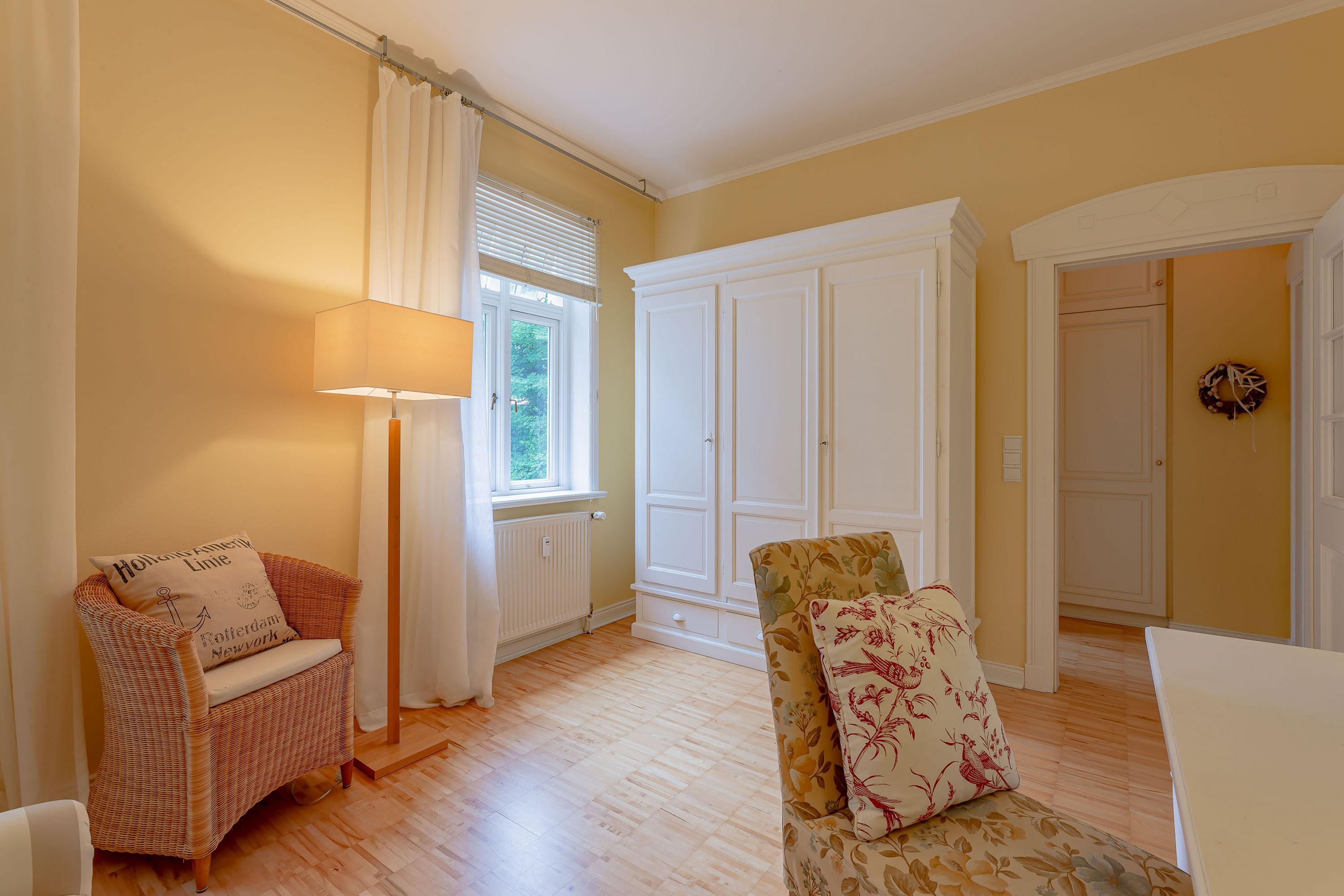Verbringen Sie die schönste Zeit des Jahres in diesem wunderschönen Schmuckstück. Die alte Bädervilla aus dem Jahre 1910 ist ein traumhaftes Urlaubsdomizil mit bestechender Architektur und wunderbarer Lage. Die Nähe zum Wyker Südstrand und dem Nordseekurpark ist fast einmalig auf Föhr. Die Wohnung fünf liegt im Hochpaterre. Im Garten steht Ihnen ein gemeisamer Sitzplatz zur Verfügung. Die Einrichtung ist mit viel Liebe zum Detail ausgestattet. Die großen eleganten Fensterfronten und eine Raumhöhe von 2,70 mtr. in allen Zimmern bringen viel Helligkeit in die schöne Wohnung. Hier genießen Sie ihren Urlaub in vollen Zügen. Auch wenn Sie zu einem Wellnessurlaub kommen, auf Föhr gibt es viele Möglichkeiten für Physiotherapie, Massage und Kuranwendungen.