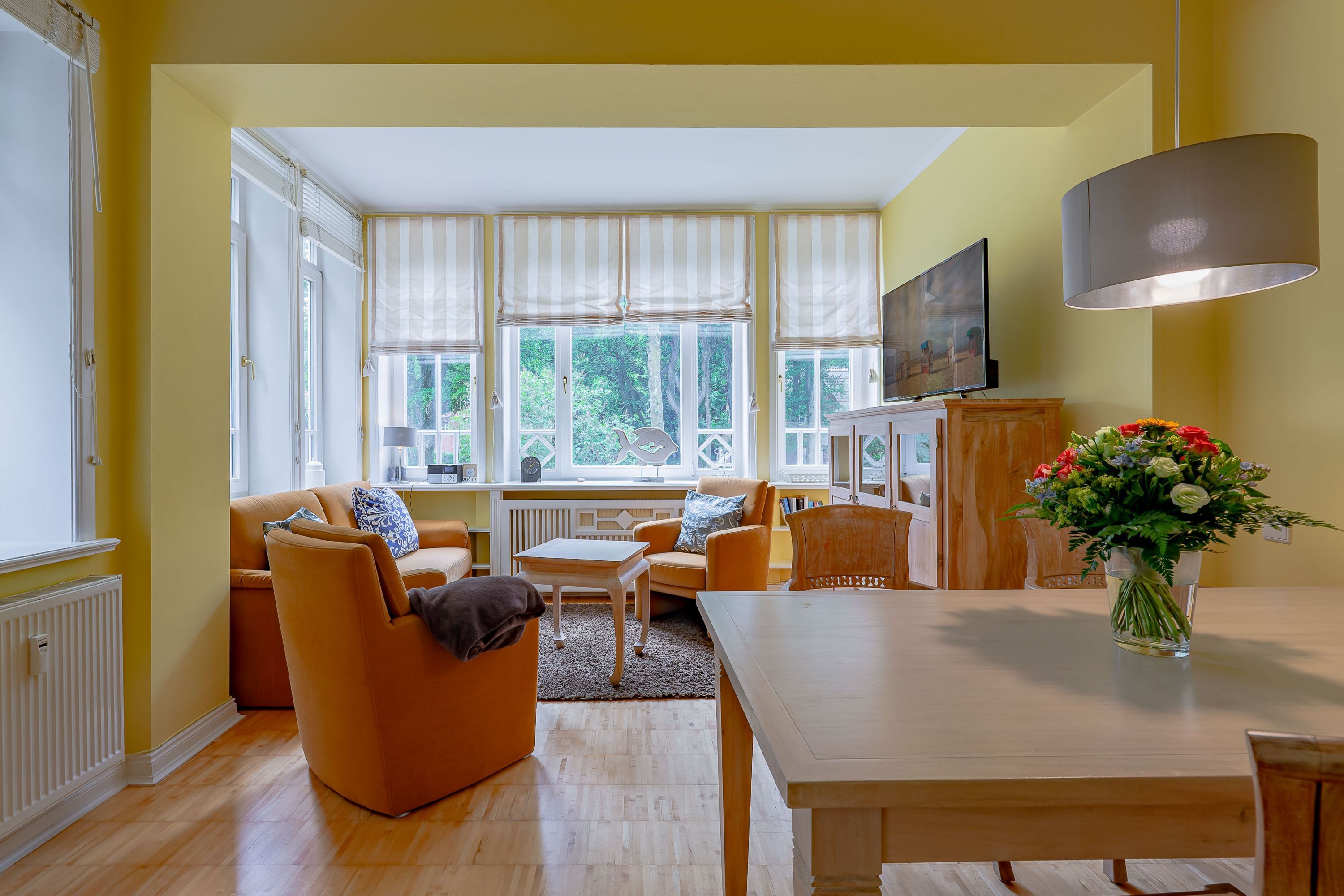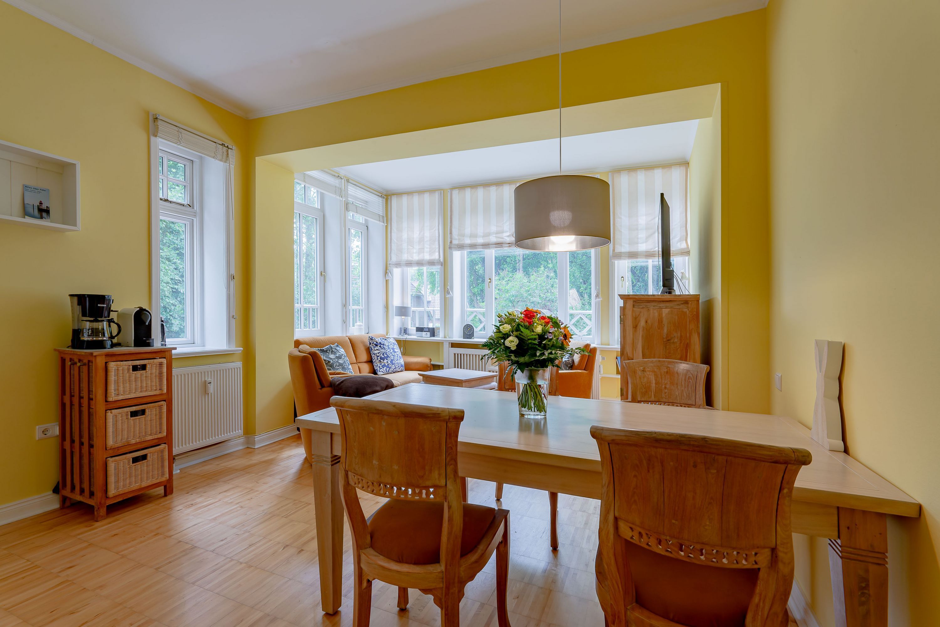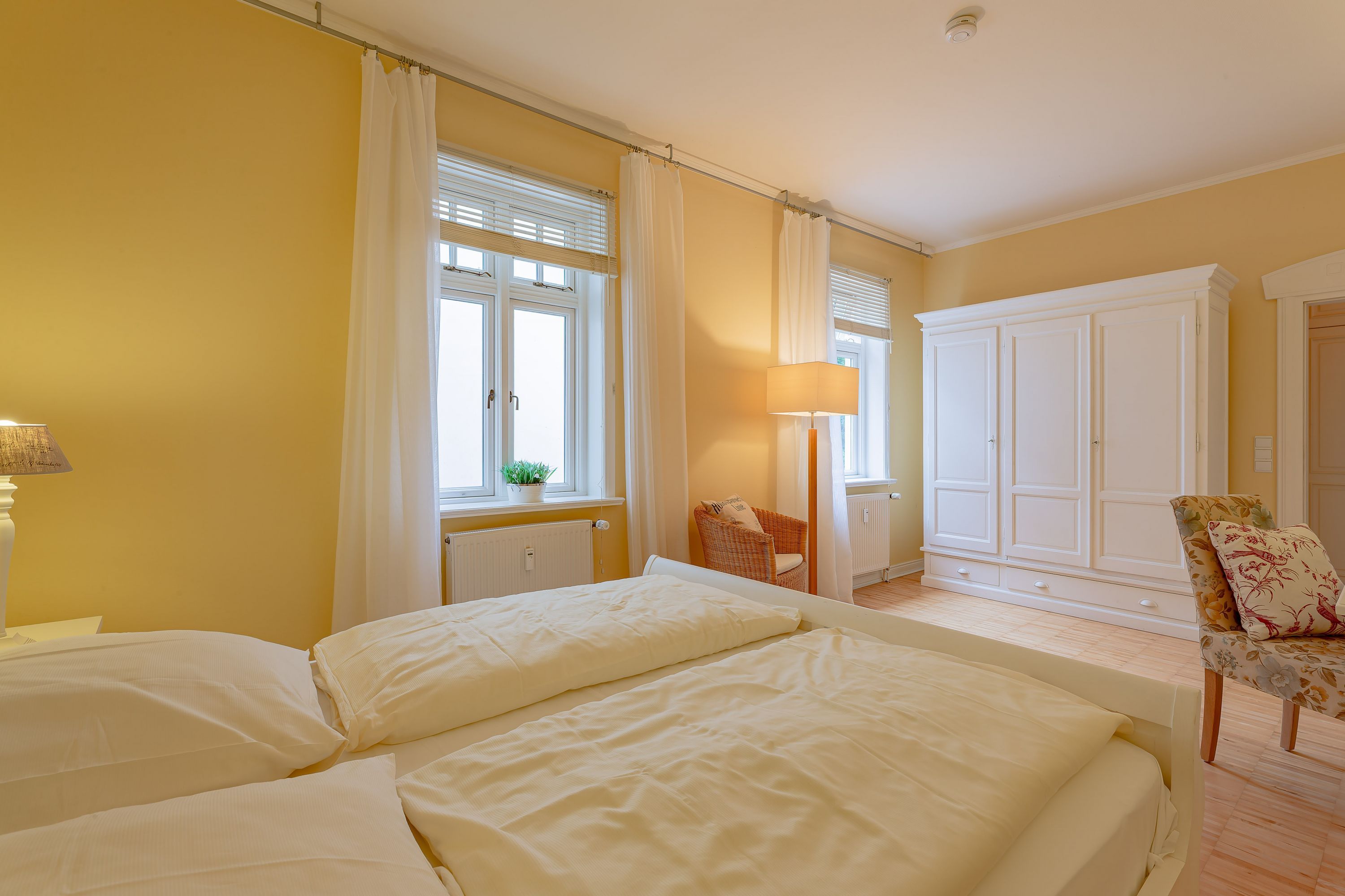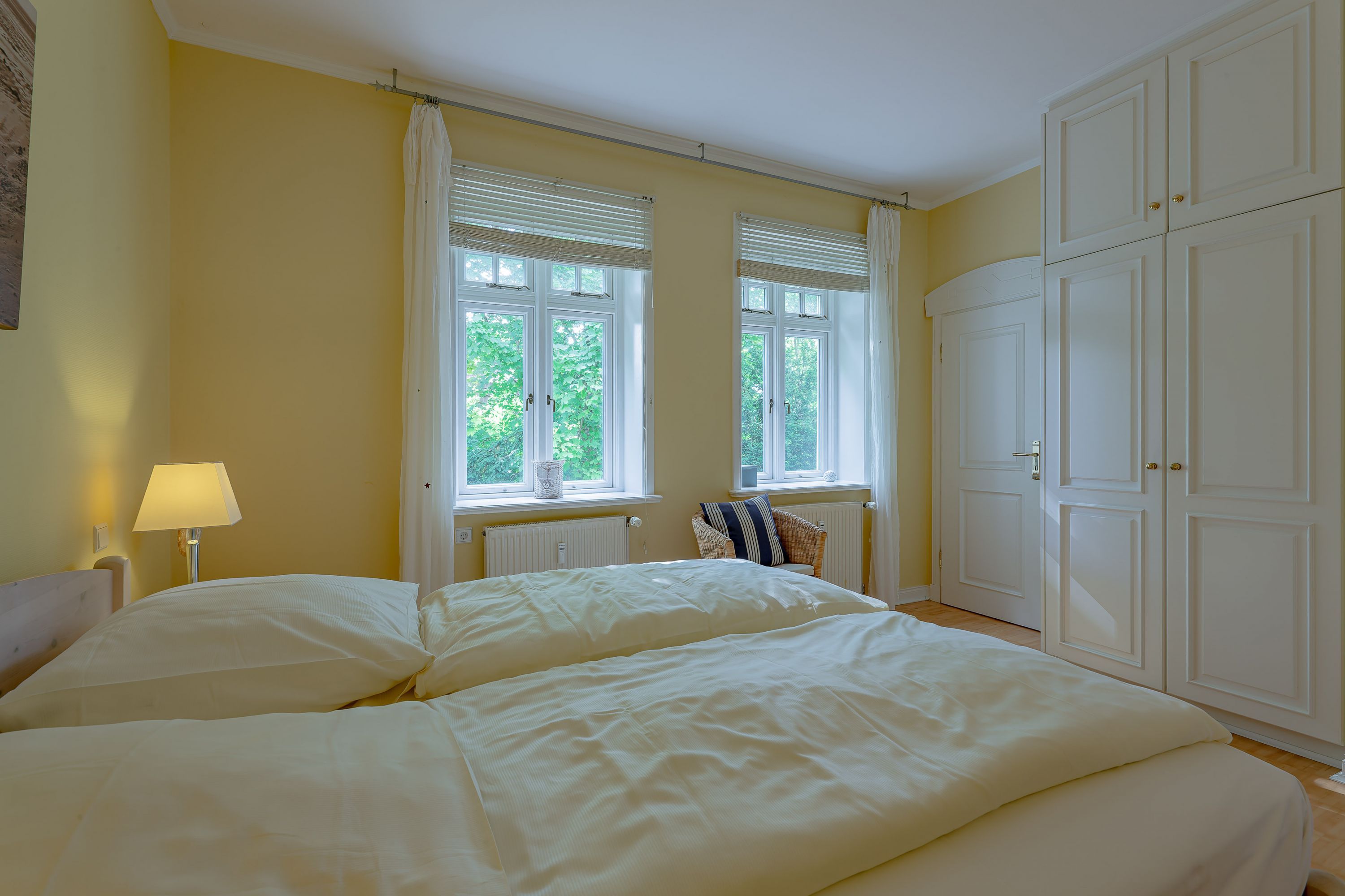 Verbringen Sie die schönste Zeit des Jahres in diesem wunderschönen Schmuckstück. Die alte Bädervilla aus dem Jahre 1910 ist ein traumhaftes Urlaubsdomizil mit bestechender Architektur und wunderbarer Lage. Die Nähe zum Wyker Südstrand und dem Nordseekurpark ist fast einmalig auf Föhr. Die Wohnung fünf liegt im Hochpaterre. Im Garten steht Ihnen ein gemeisamer Sitzplatz zur Verfügung. Die Einrichtung ist mit viel Liebe zum Detail ausgestattet. Die großen eleganten Fensterfronten und eine Raumhöhe von 2,70 mtr. in allen Zimmern bringen viel Helligkeit in die schöne Wohnung. Hier genießen Sie ihren Urlaub in vollen Zügen. Auch wenn Sie zu einem Wellnessurlaub kommen, auf Föhr gibt es viele Möglichkeiten für Physiotherapie, Massage und Kuranwendungen.