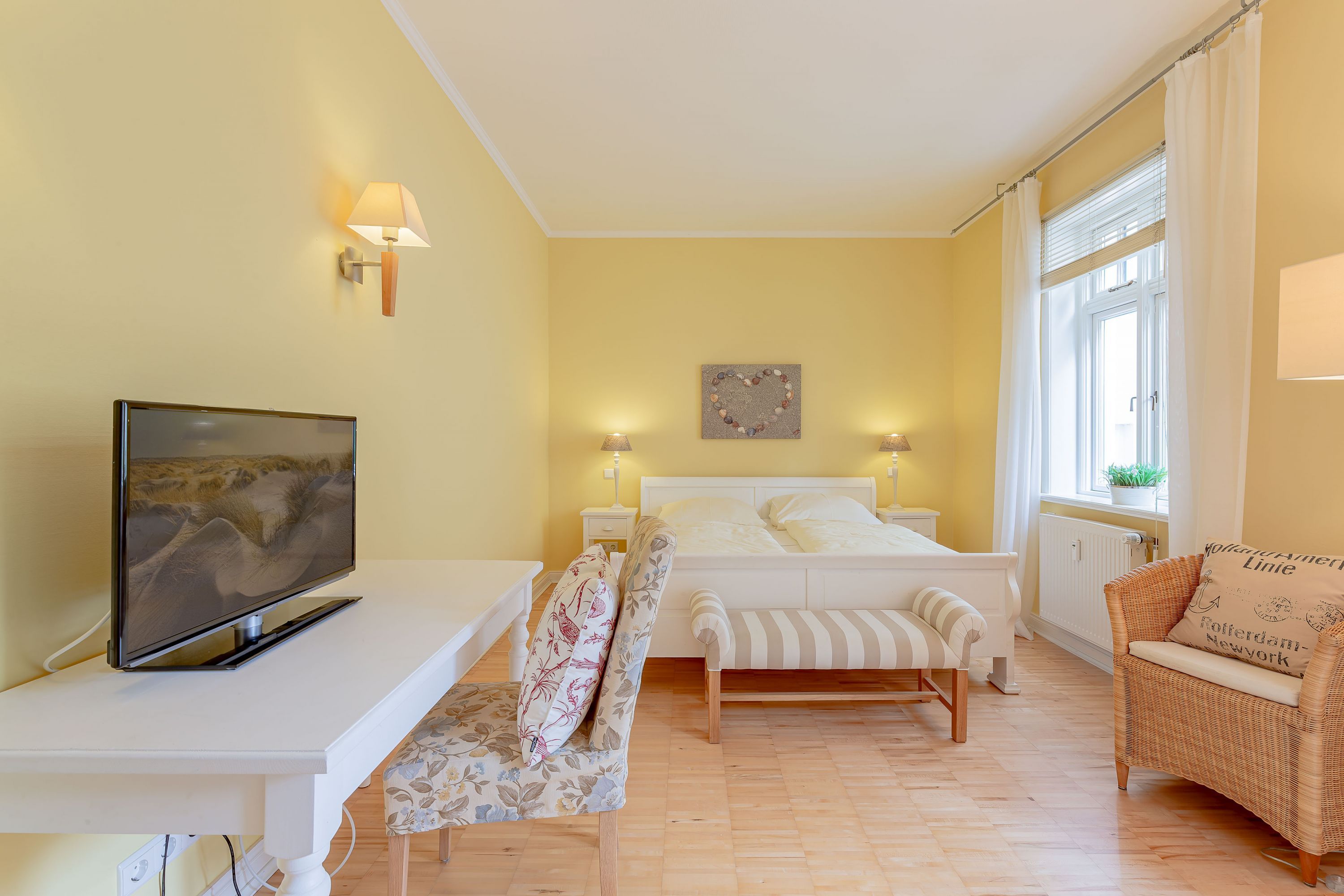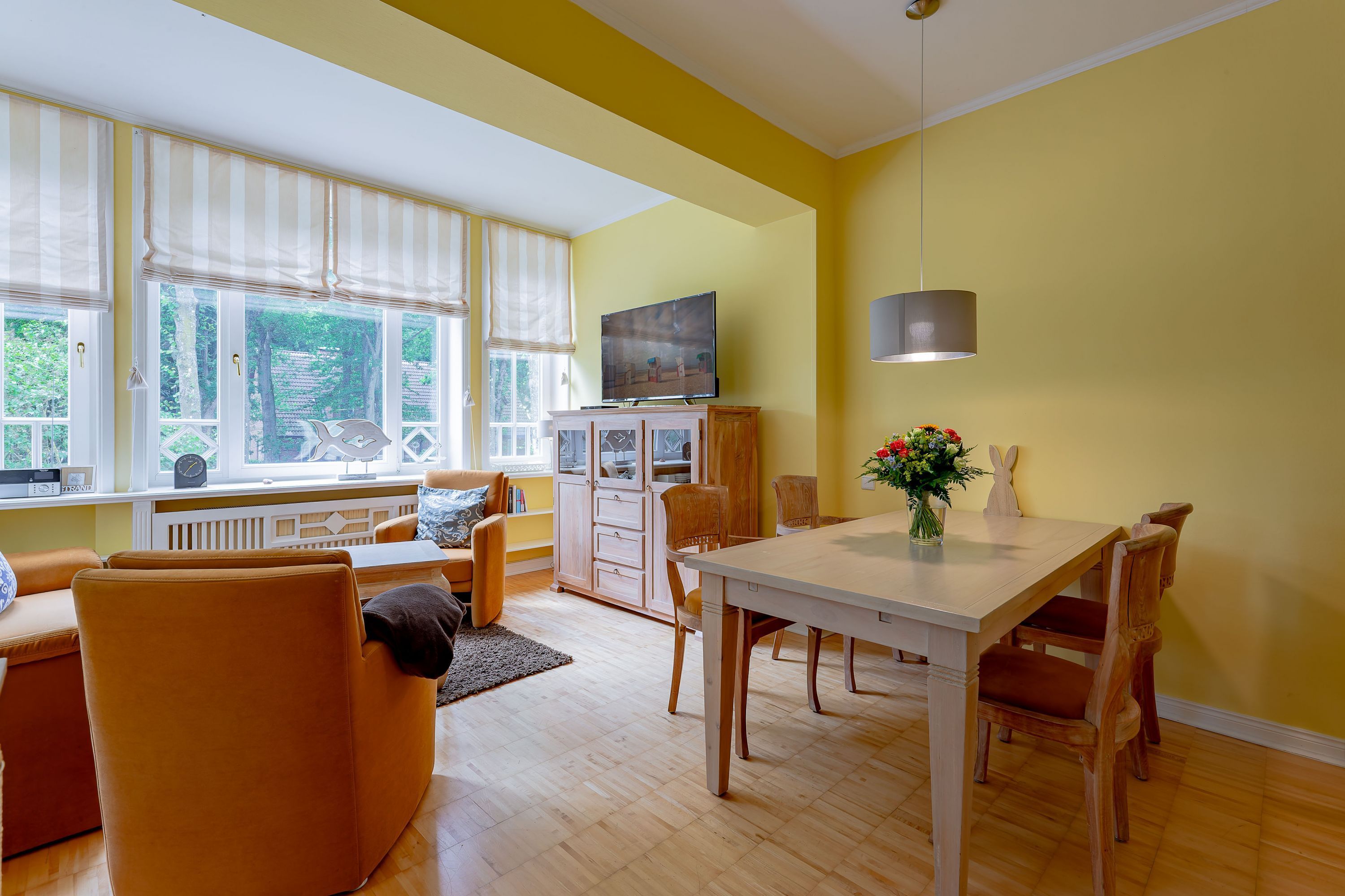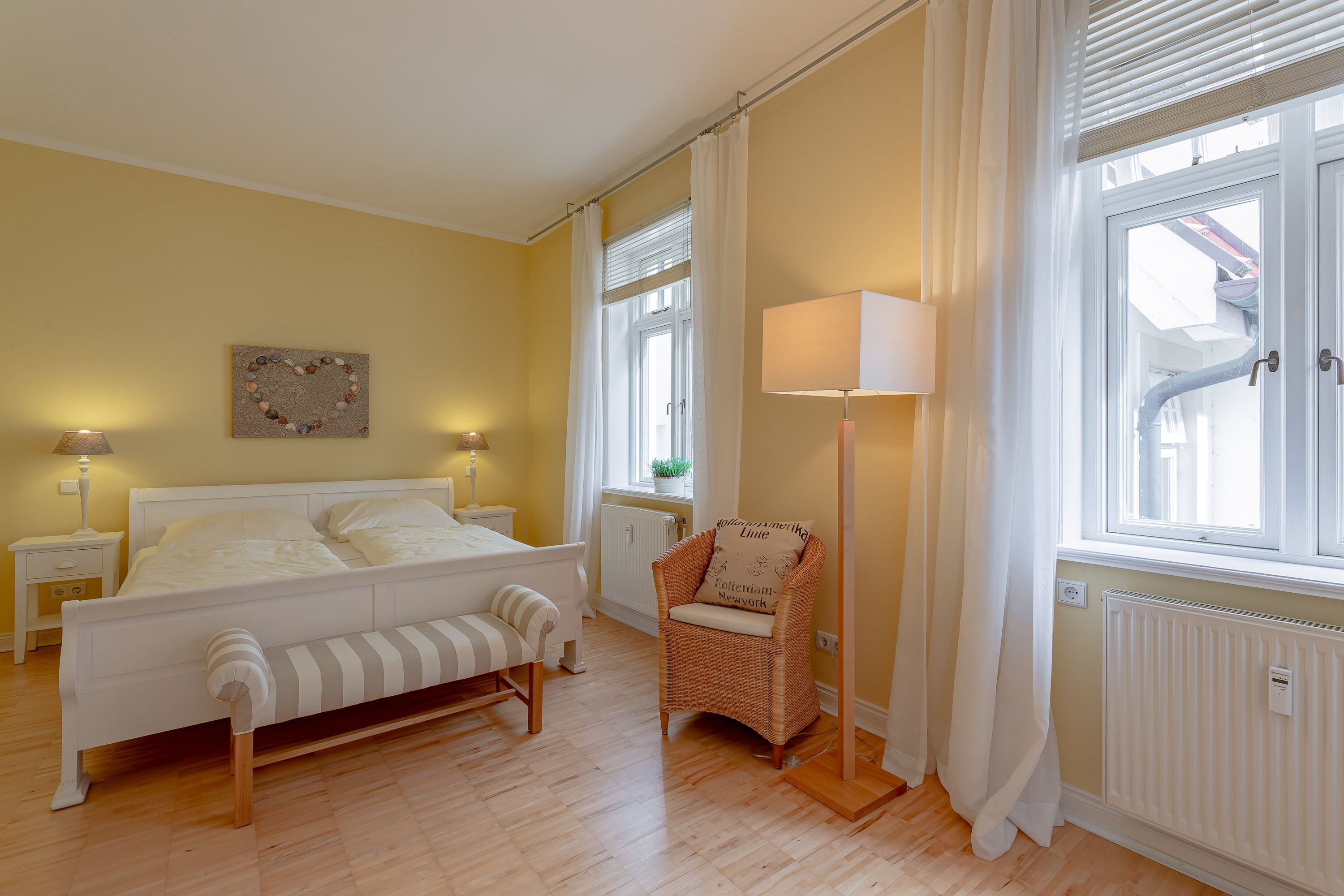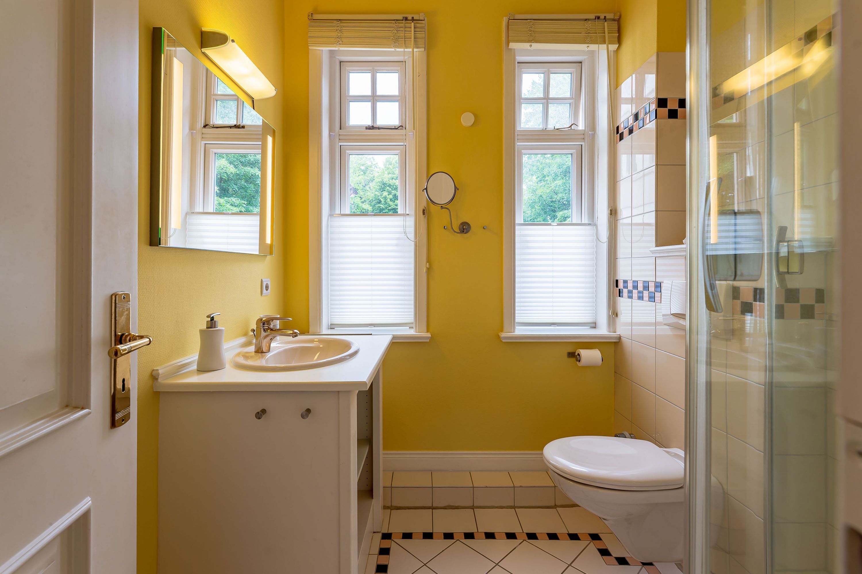Verbringen Sie die schönste Zeit des Jahres in diesem wunderschönen Schmuckstück. Die alte Bädervilla aus dem Jahre 1910 ist ein traumhaftes Urlaubsdomizil mit bestechender Architektur und wunderbarer Lage. Die Nähe zum Wyker Südstrand und dem Nordseekurpark ist fast einmalig auf Föhr. Die Wohnung fünf liegt im Hochpaterre. Im Garten steht Ihnen ein gemeisamer Sitzplatz zur Verfügung. Die Einrichtung ist mit viel Liebe zum Detail ausgestattet. Die großen eleganten Fensterfronten und eine Raumhöhe von 2,70 mtr. in allen Zimmern bringen viel Helligkeit in die schöne Wohnung. Hier genießen Sie ihren Urlaub in vollen Zügen. Auch wenn Sie zu einem Wellnessurlaub kommen, auf Föhr gibt es viele Möglichkeiten für Physiotherapie, Massage und Kuranwendungen.
