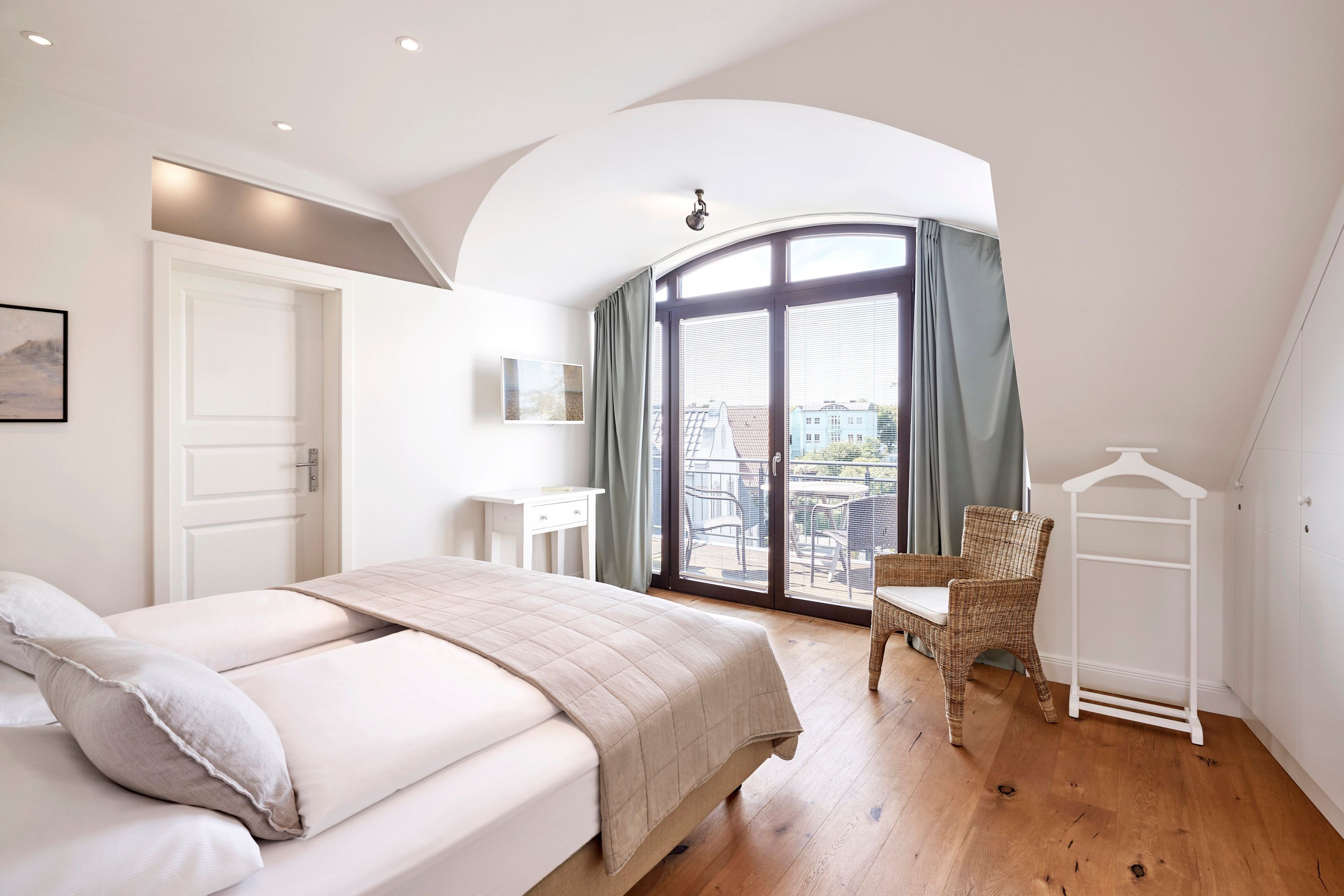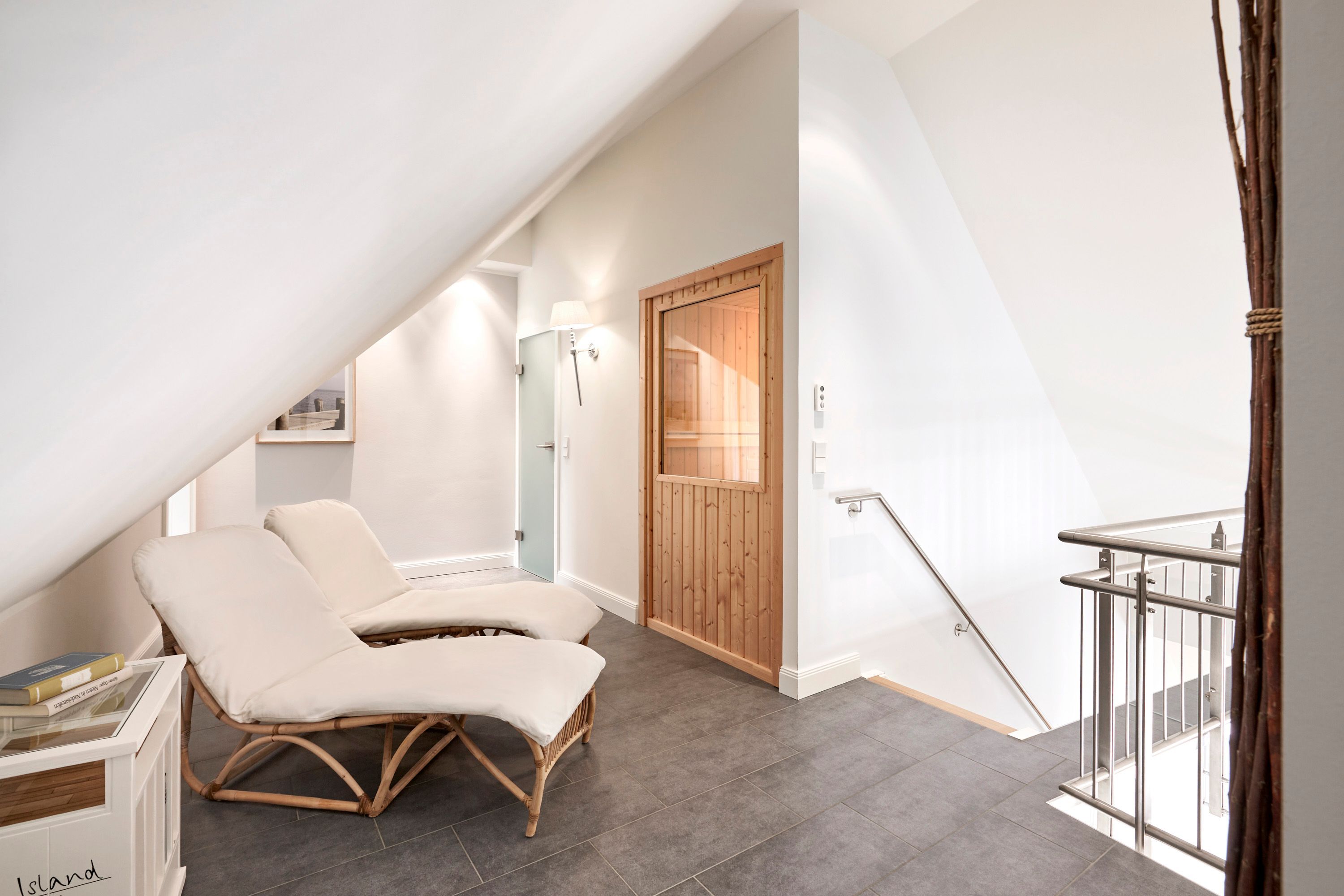 Auf einem wunderbar gelegenen 3.500 qm großem Grundstück, befindet sich die exklusive Wohnanlage Quartier Rothtraut. Hier haben Sie die Nordsee direkt vor der Tür. Ein paar Schritte und Sie gelangen auf die Promenade, welche Sie ins Herz von Wyk führt. In Ihrer Penthouse Wohnung über zwei Etagen genießen Sie in einem wunderschönen und modernen Ambiente Ihren Urlaub. Direkt vom großen Wohn-Essbereich schauen Sie auf die Nordsee und können den Gezeiten zusehen. Richten Sie den Blick in Ihrer Wohnung nach oben, haben Sie einen „unendlichen Blick“ in die offene Galerie. Hier befindet sich neben einem Bad auch die eigene Sauna. Genuss und Luxus pur in dieser Penthouse Wohnung direkt am Meer.