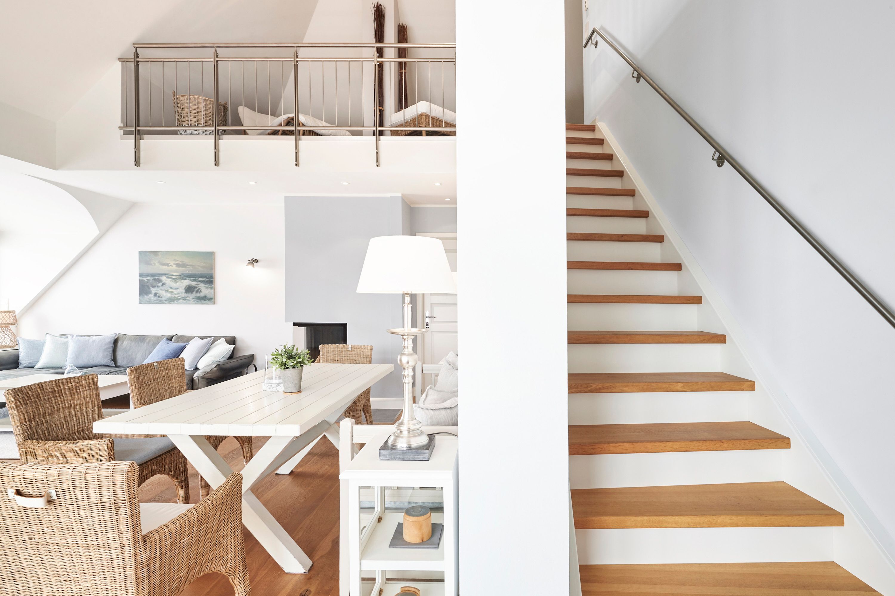 Auf einem wunderbar gelegenen 3.500 qm großem Grundstück, befindet sich die exklusive Wohnanlage Quartier Rothtraut. Hier haben Sie die Nordsee direkt vor der Tür. Ein paar Schritte und Sie gelangen auf die Promenade, welche Sie ins Herz von Wyk führt. In Ihrer Penthouse Wohnung über zwei Etagen genießen Sie in einem wunderschönen und modernen Ambiente Ihren Urlaub. Direkt vom großen Wohn-Essbereich schauen Sie auf die Nordsee und können den Gezeiten zusehen. Richten Sie den Blick in Ihrer Wohnung nach oben, haben Sie einen unendlichen Blick in die offene Galerie. Hier befindet sich neben einem Bad auch die eigene Sauna. Genuss und Luxus pur in dieser Penthouse Wohnung direkt am Meer.