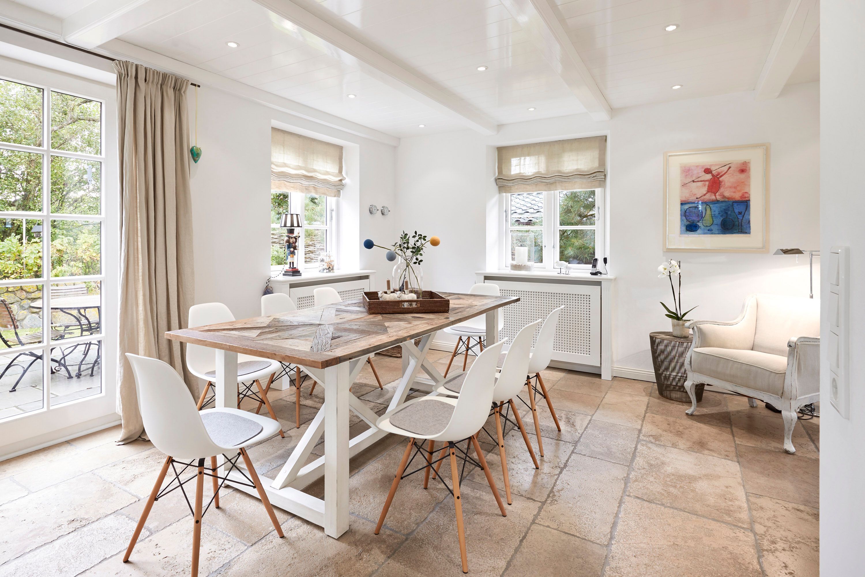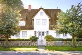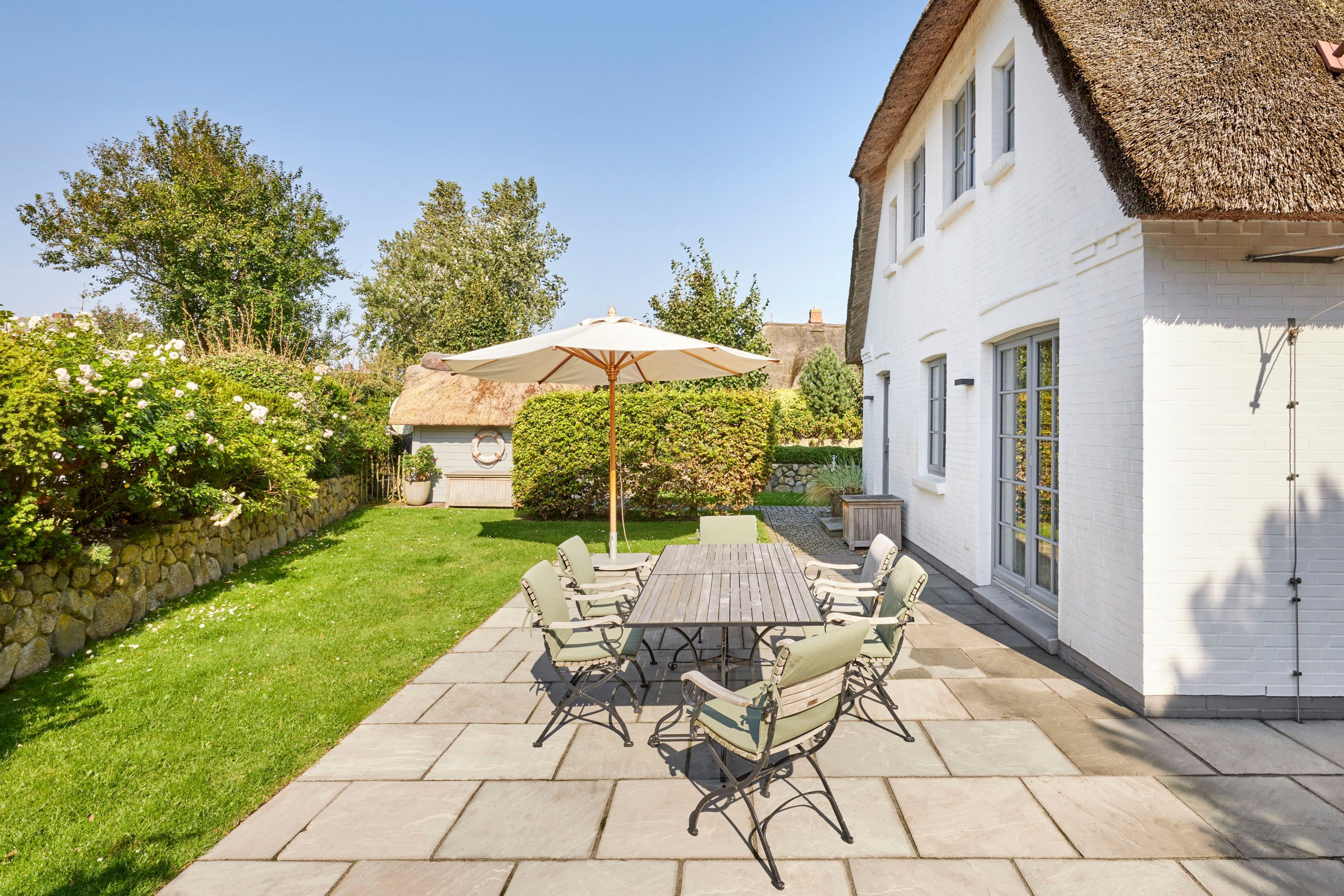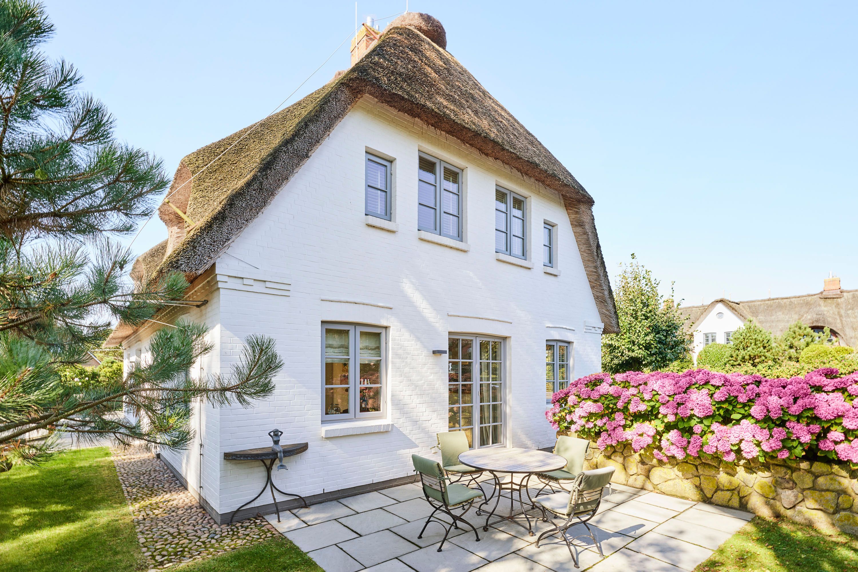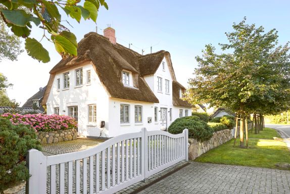 Wohnen Sie in diesen exklusiven Einzelhaus unter Reet im wunderschönen Friesendorf Nieblum. Hier finden Sie alte Kapitänshäuser, bunte Bauerngärten, Baumalleen und reetgedeckte Friesenhäuser - der perfekte Ausgangspunkt für einen erholsamen Urlaub. Das Haus ist sehr hochwertig ausgestattet und lässt keine Wünsche offen. Ein großzügiger Wohnraum mit Kachelofen, daran angrenzend der Essbereich für 6 Personen und die offene Küche mit allem, was das Kochherz begehrt, macht das Erdgeschoss zum Blickfang. Im Obergeschoss befinden sich drei geräumige Schlafräume und zwei Badtempel. Auf der ca. 95qm großen Terrasse und dem schön angelegtem Garten werden Sie erholsame Urlaubstage verbringen.