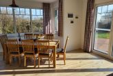 - Großzügiges Wohn-Esszimmer: Esstisch mit 8 Stühlen, gemütliches Ecksofa, SAT-TV 43 Zoll, Radio, Insektenschutz an der Terrassentür, Kaminofen