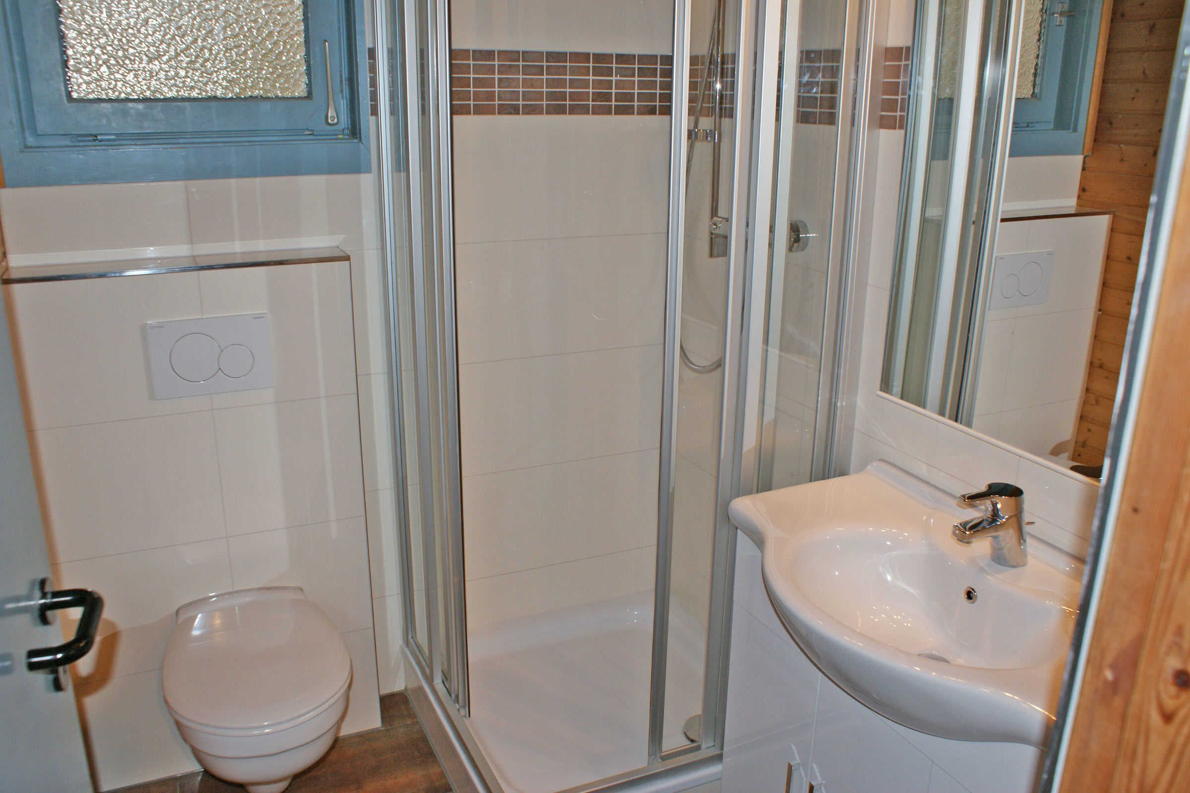 Wohnen auf einer Ebene. Zur Ausstattung gehört eine vollwertige Küche (mit Geschirrspüler), 2 getrennte Schlafzimmer (in einem Schlafzimmer befindet sich ein Etagenbett für 2 Personen), Flur, Bad mit Dusche und Wohnzimmer mit Essecke. Grosse überdachte Terrasse mit Gartenmöbel.