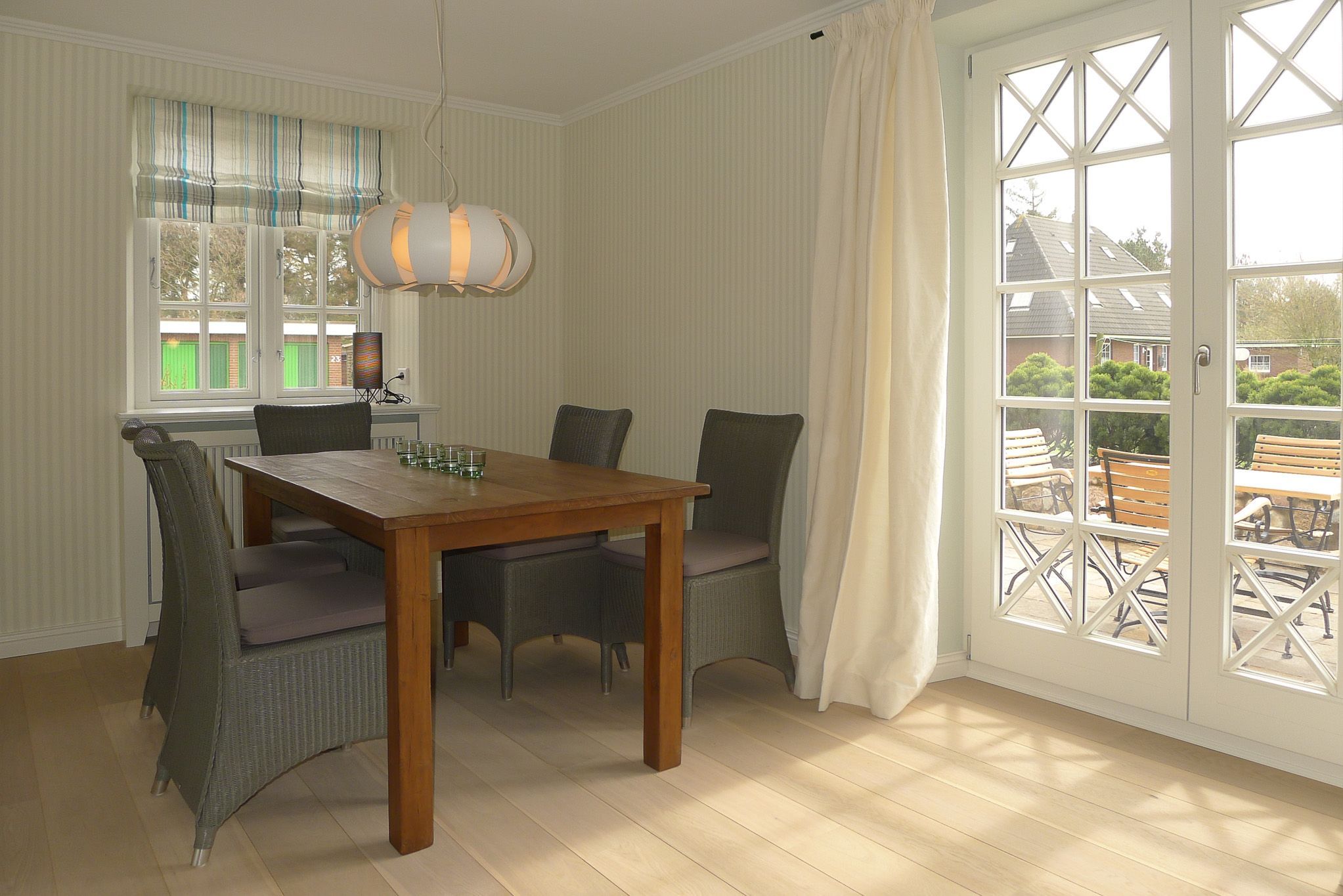 Unser Haus Birdie ist ein typisches Friesenhaus mit sehr schöner Architektur. Eine Summe schöner Details wie Holzsprossenfenster, Reetdacheindeckung, liebevolle ausgewählte Möbelstücke und eine Ausstattung mit schönen Fliesen und Holzarbeiten runden den perfekten Eindruck ab. Im Obergeschoss befindet sich direkt im Duschbad auch die Sauna. Hier tanken Sie neue Energie. Genau das richtige auch für die kalte Jahreszeit. Der große Garten mit Gartenhaus, Liegestühlen und die zwei Terrassen lassen sie den zu jeder Zeit genießen. Das Doppelhaus ist ruhig gelegen und mit dem Fahrrad sind Sie in wenigen Minuten am Sandstrand in Nieblum. Dem Zauber und Charme von Nieblum ist bisher jeder Gast erlegen. Es ist wohl das schönste Dorf auf Föhr und eines der schönsten Dörfer in Schleswig-Holstein.