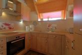 optisch abgeteilte Küche mit Ceranfeld, Heißluftbackofen, Mikrowelle, Kühlschrank mit 4-Sterne-Gefrierfach, Spülmaschine, Toaster, Wasserkocher, Kaffeemaschine, Mixer, voll ausgestattet mit Geschirr und Kochutensilien für 4 Personen und ein Baby