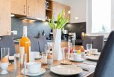 Auf einer Wohnfläche von 87 m² finden fünf Erwachsene und ein Kind bis 14 Jahre in dieser modern eingerichteten Ferienwohnung ausreichend Platz für einen entspannten Urlaub am Stettiner Haff auf Usedom.