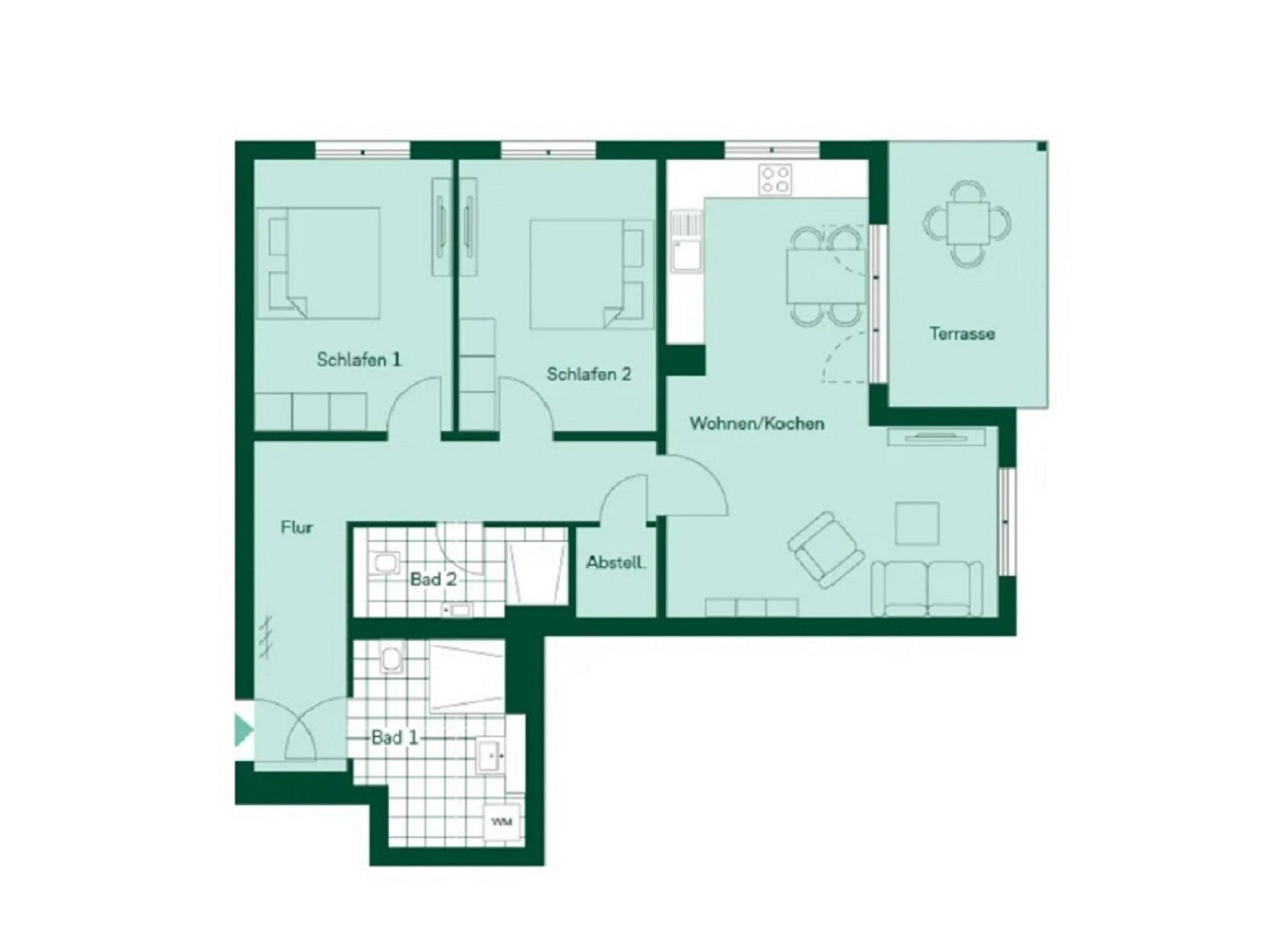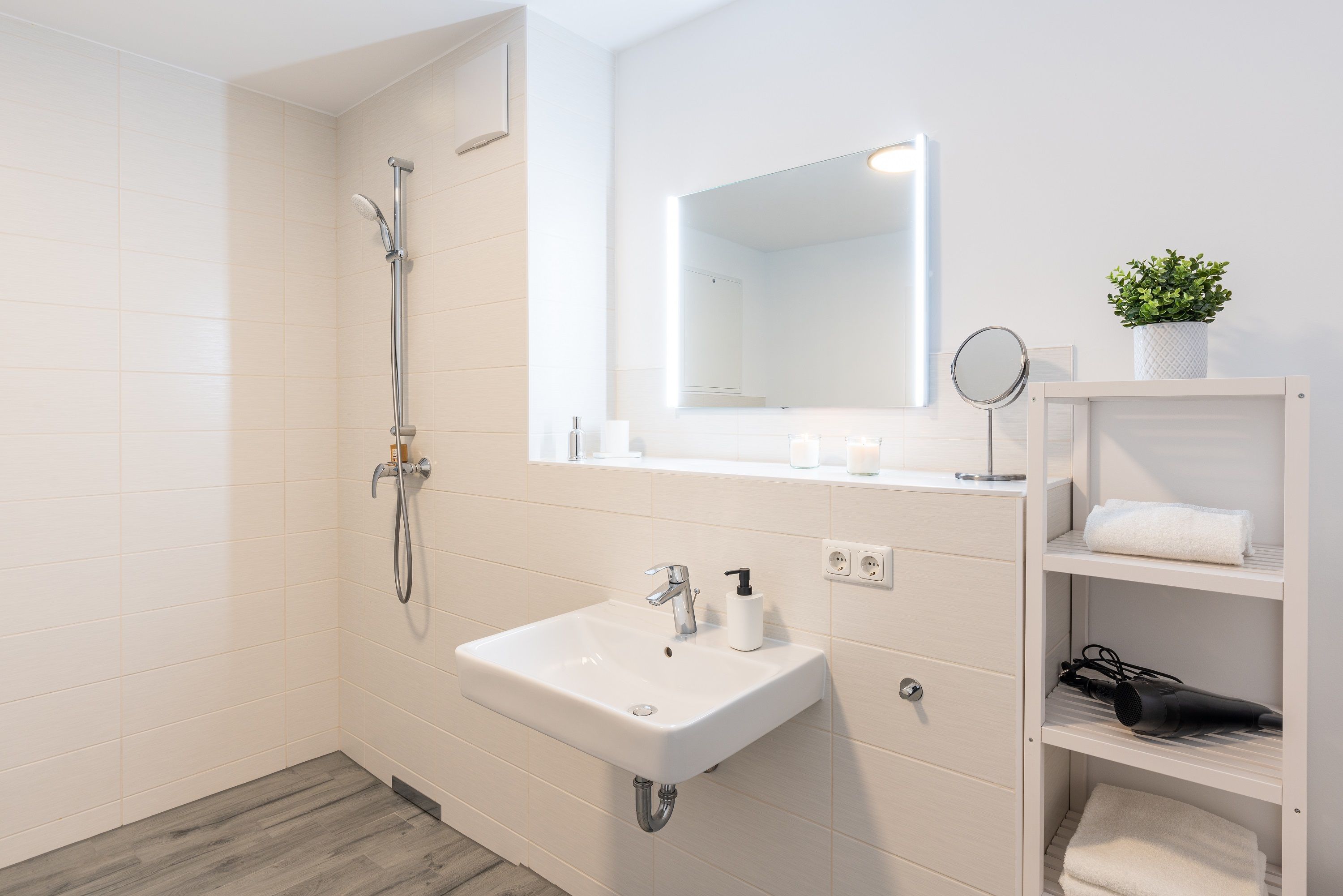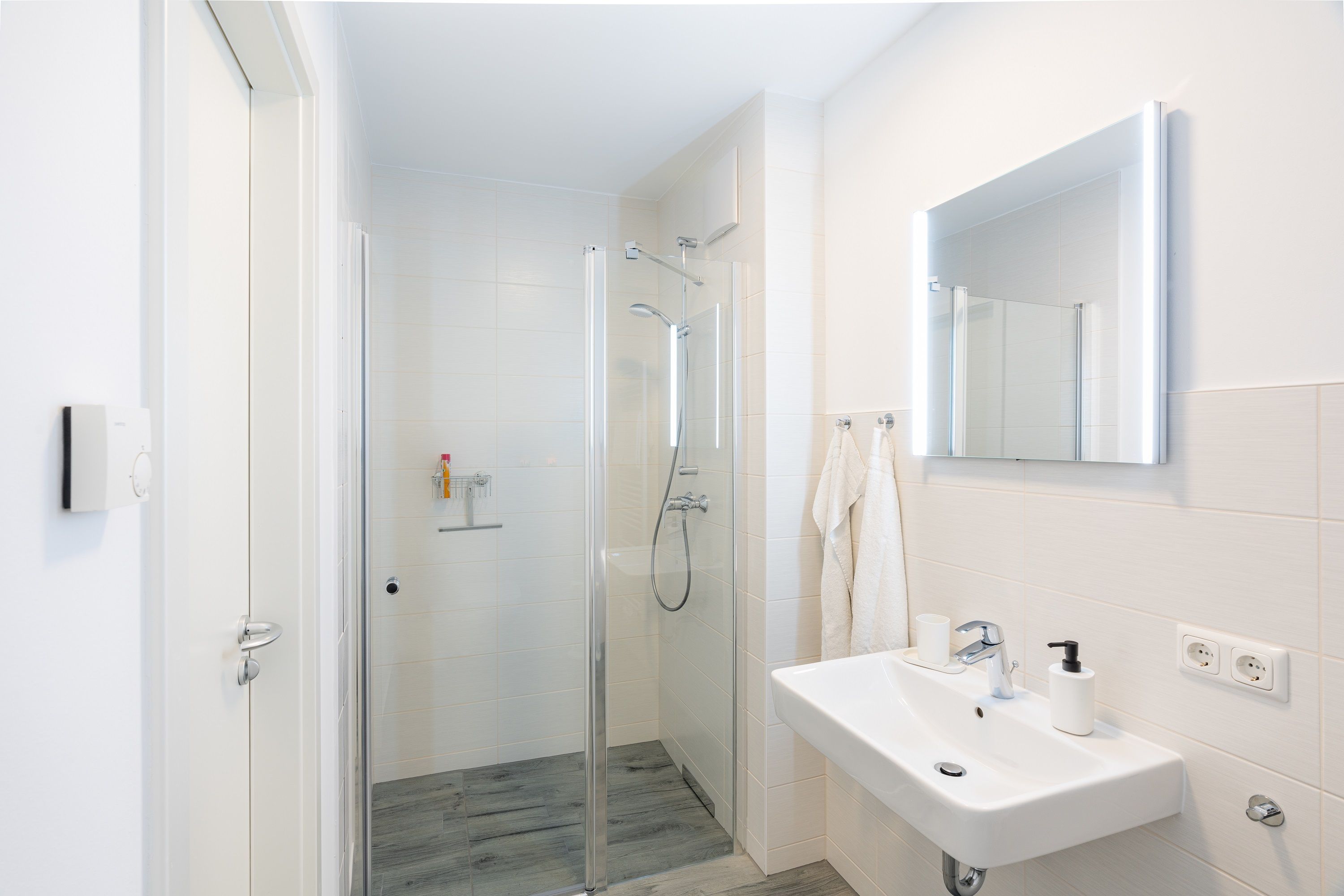 Die beiden vollausgestatteten Badezimmer verfügen jeweils über eine ebenerdige Dusche, WC, Waschtischanlage sowie Fön.