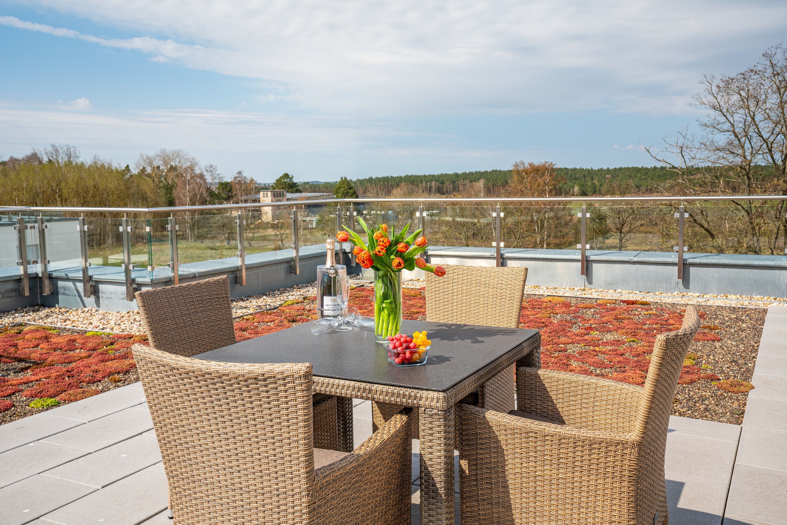 Weit ab von der Hektik und den Besuchermassen öffentlicher Wellnessangebote, finden Sie im Dachgeschoss des Hauses auf 190 m² die Ruhe, die Sie sich verdient haben. Entspannen Sie im hauseigenen, kostenfreien Wellnessbereich mit zwei Saunen und gemütlichem Ruheraum. Genießen Sie die klare Ostseeluft auf der großen angrenzenden Dachterrasse.