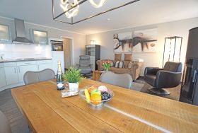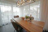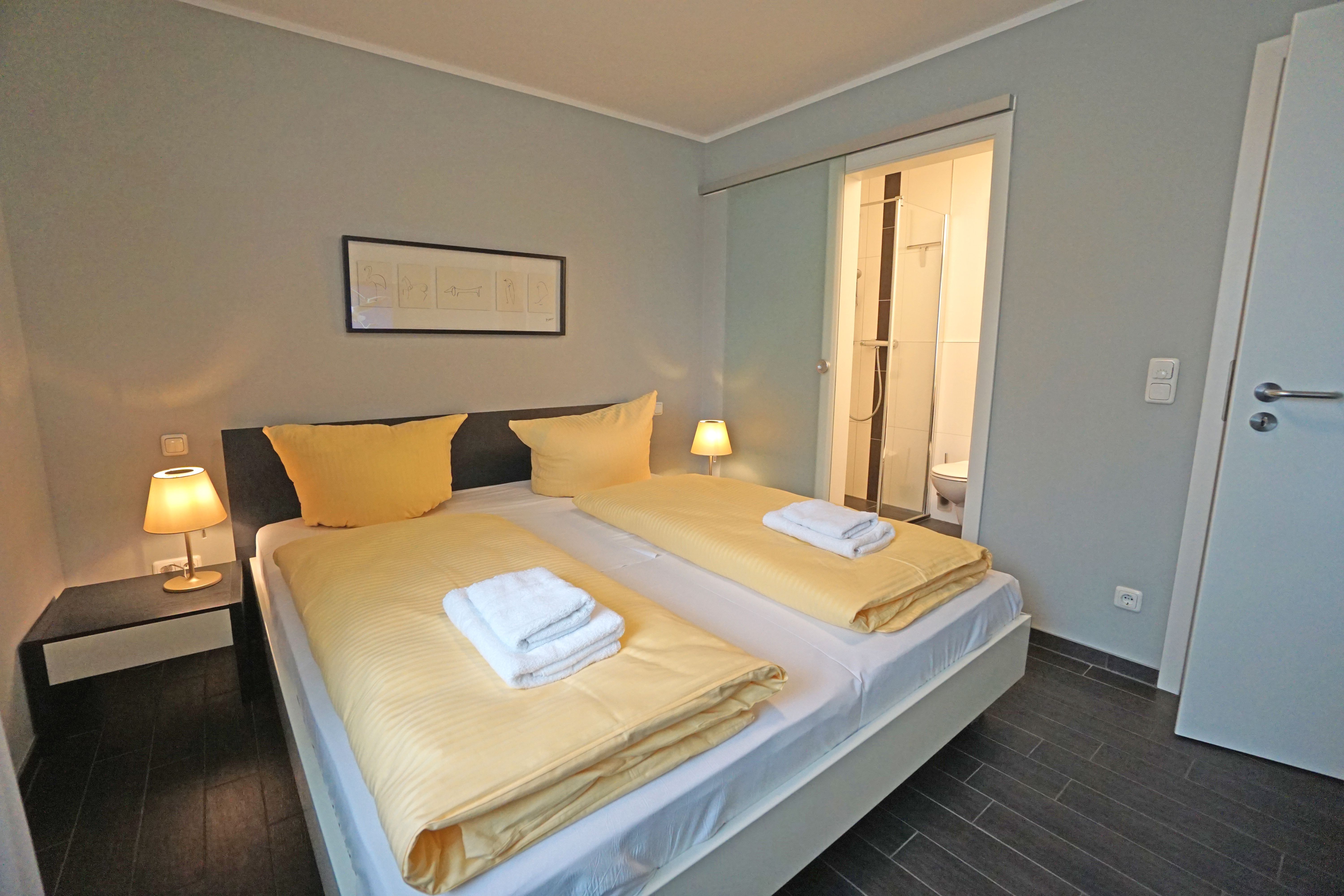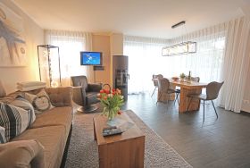 Die stylisch und modern eingerichtete Ferienwohnung ist ein wunderbarer Rückzugsort für maximal 4 Personen. Der feine Ostseestrand ist nur 20 Meter entfernt. Die Wohnung 8 im Dünendomizil im 2. OG mit seinen großzügigen 70 Quadratmetern ist aufgeteilt auf drei Zimmer und zwei Bäder. Das Wohnzimmer, ausgestattet mit einer komfortablen Sitzgruppe und einem Kaminofen, hat durch seine bodentiefen Fenster direkten Zugang zu einem von zwei schönen, großen Balkonen. Die Küche ist vollausgestattet. Die beiden Schlafzimmer verfügen über hochwertige Doppelbetten (180cmx200cm). Eines der beiden Schlafzimmer verfügt zusätzlich über einen Fernseher. Die Bäder besitzen jeweils eine Dusche, einen modernen Waschtisch und ein WC. Ein Pkw-Stellplatz ist für Sie reserviert. Die Betten sind bezogen. Der WLAN-Anschluss ist kostenfrei nutzbar.
