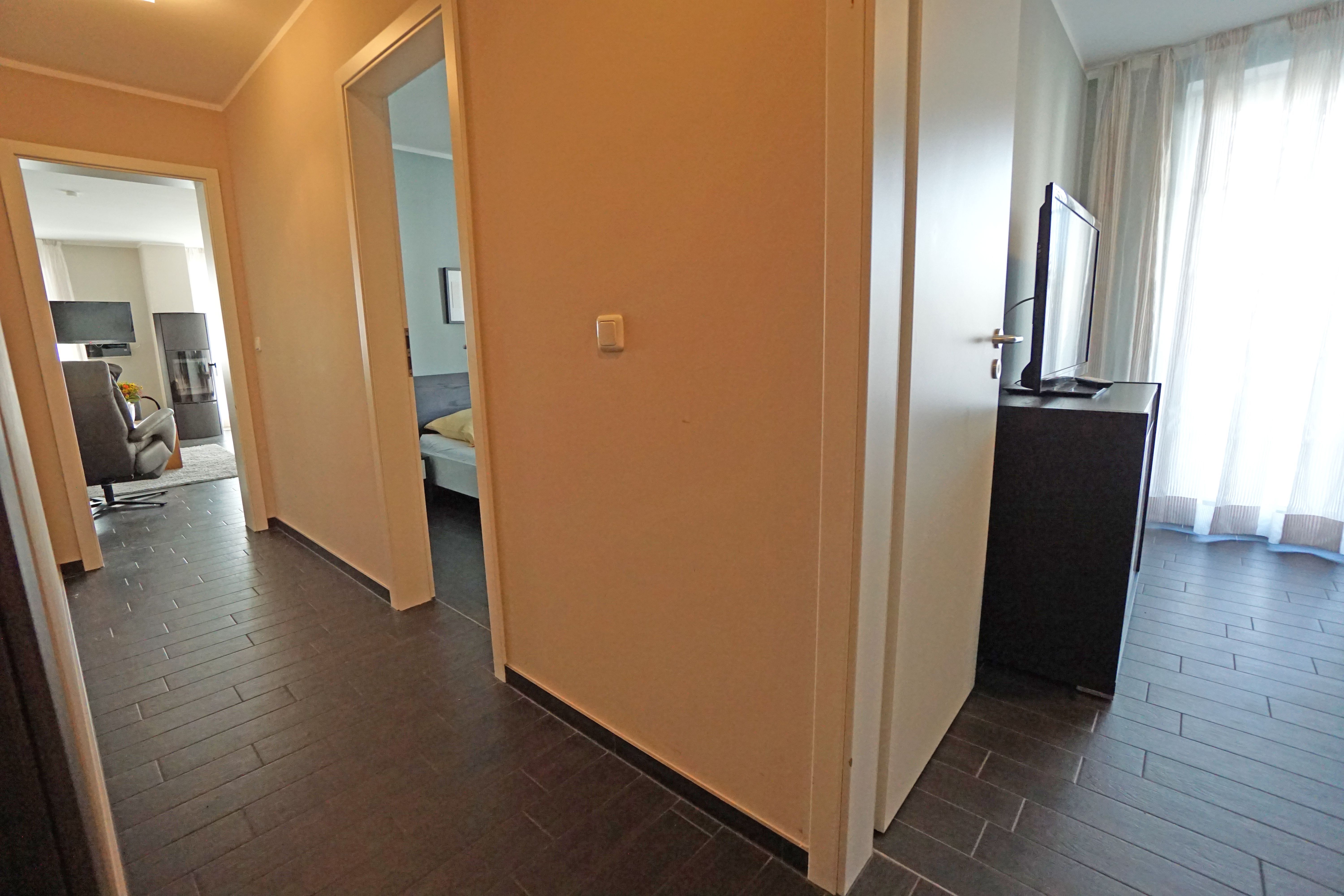 Die Stilvoll eingerichtete 3-Zimmer-Ferienwohnung im 2. OG mit hochwertiger Ausstattung verfügt über zwei Balkone. Ein Fahrstuhl im Haus sowie eine Tiefgarage (Stellplätze eng, eingeschränkte Wendemöglichkeit) stehen Ihnen zur Verfügung. Ein kostenfreier WLAN-Zugang kann genutzt werden.
