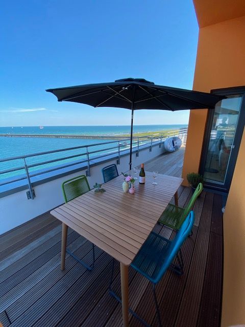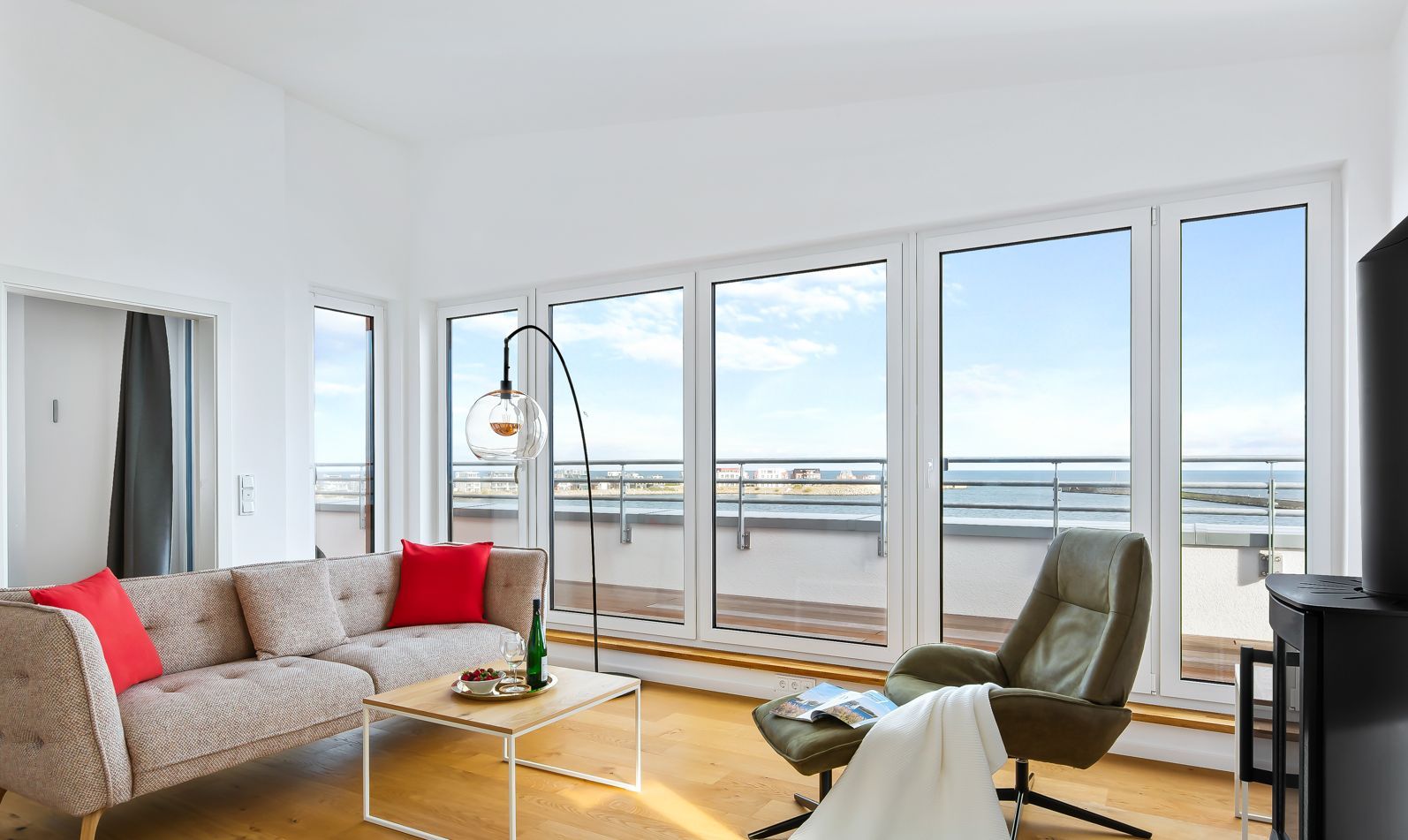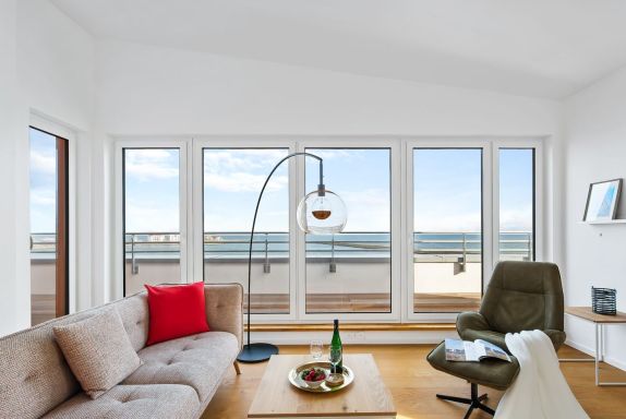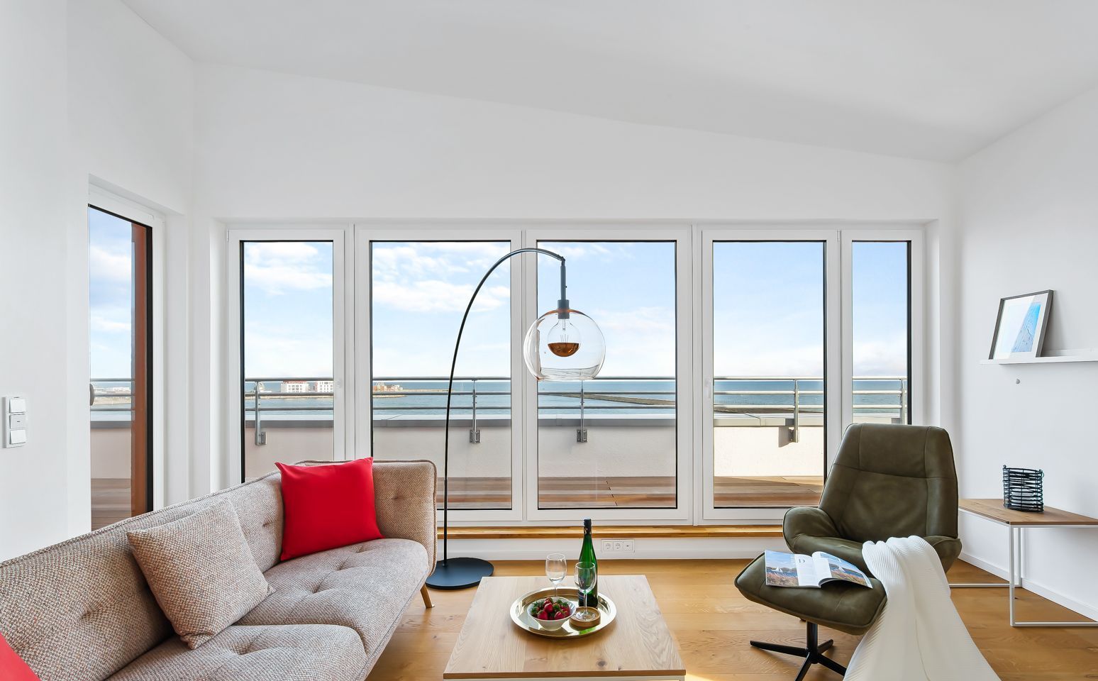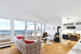 Unsere Penthouse Wohnungen zeichnen sich durch ihre einzigartige Lage aus. Sie wohnen in der Endetage, mit Meer- oder Schleiblick. Dsa Penthouse verfügt über eine große Terrasse von der man aus viele Aktivitäten auf dem Wasser beobachten kann oder sich einfach sonnt. Im Sommer kann hier natürlich auch gegrillt werden. Das Penthouse verfügt über einen Strandkorb, Tisch mit Stühlen, Sonnenschirm und Liegen. Hohe Decken, große Fensterfront, Kamin und umlaufende Dachterrasse sind einzigartig.
