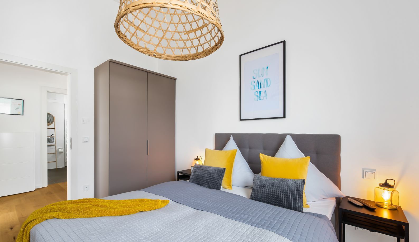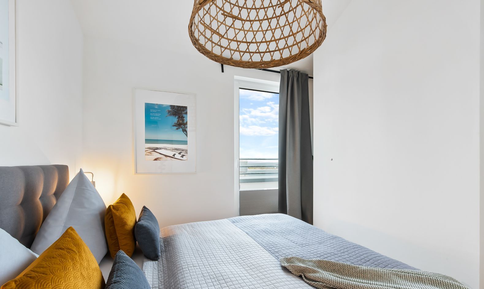 Der Masterbedroom verwöhnt Sie mit einem Doppelbett von 180cm Breite, einem Fernseher und dem Zugang zur Dachterrasse. Das zweite Schlafzimmer wartet mit einem Doppelbett von 160cm Breite auf und bietet ebenfalls Zutritt zur Dachterrasse. Schöner können Aufwachen und Einschlafen nicht sein - auf einer privaten Insel hoch über der Ostsee.