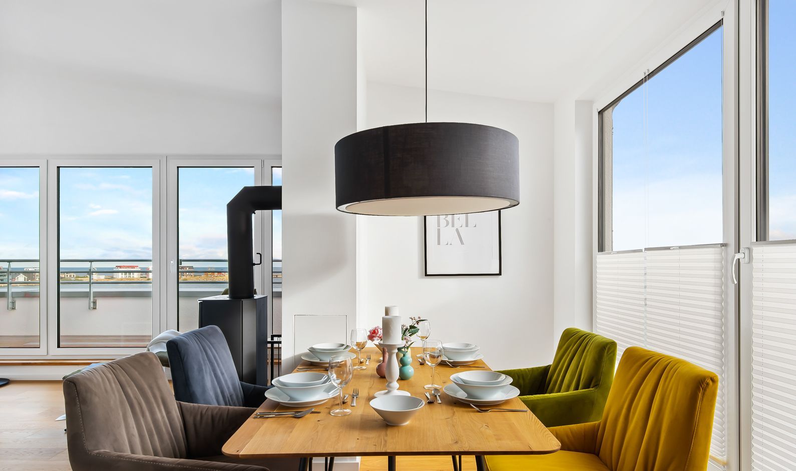 Diese stylische Penthousewohnung ist durchgehend im modernen Stil eingerichtet und strahlt Eleganz und Gemütlichkeit zugleich aus. Mit bodentiefen Fenstern in fast allen Räumen und der großzügigen Raumaufteilung ist PENTHOUSE HYGGE eine absolute Wellnessoase und etwas ganz Besonderes.