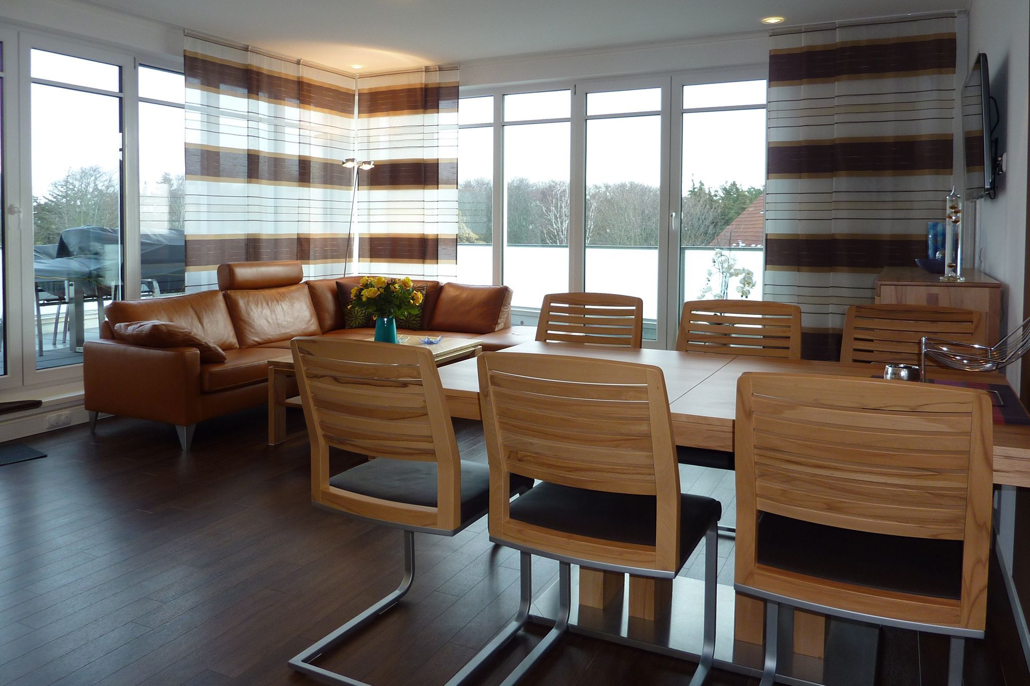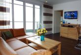 Wir begrüßen Sie im Schloß am Meer, der exklusiven Wohnanlage direkt am Wyker-Südstrand gelegen. Ihre Wohnung liegt im Staffelgeschoss. Hier haben Sie eine große Dachterrasse für sich und einen Blick auf die Nordsee und die Halligen. Dieser einzigartige Panoramablick ist unvergesslich. Genießen Sie die Sonne schon beim Frühstück!.In nur wenigen Schritten befinden Sie sich auf der Promenade, die Sie ins Herz von Wyk führt. Hier laden Geschäfte zum Bummeln ein, Cafes und Restaurants verwöhnen Sie mit kulinarischen Köstlichkeiten.