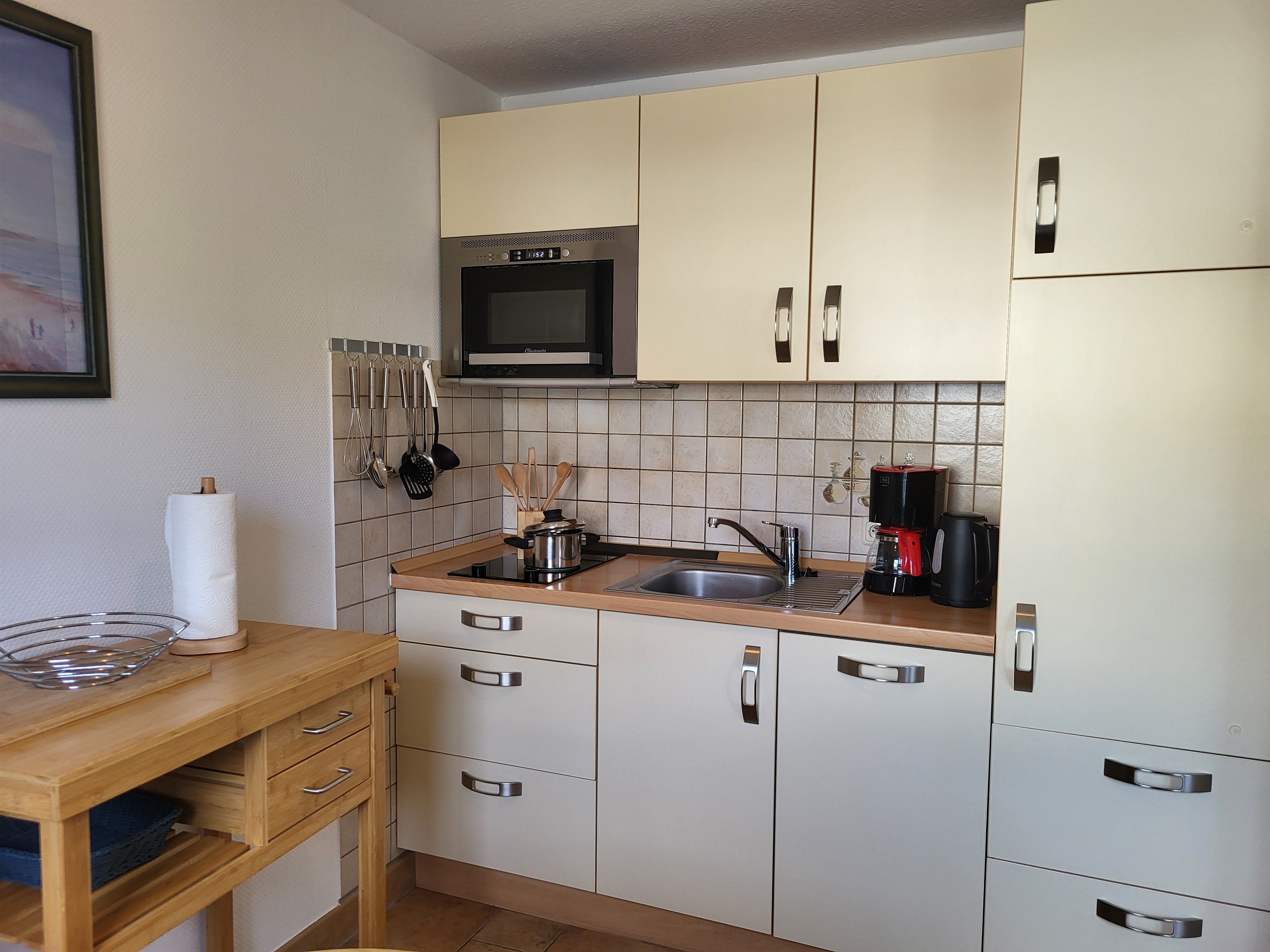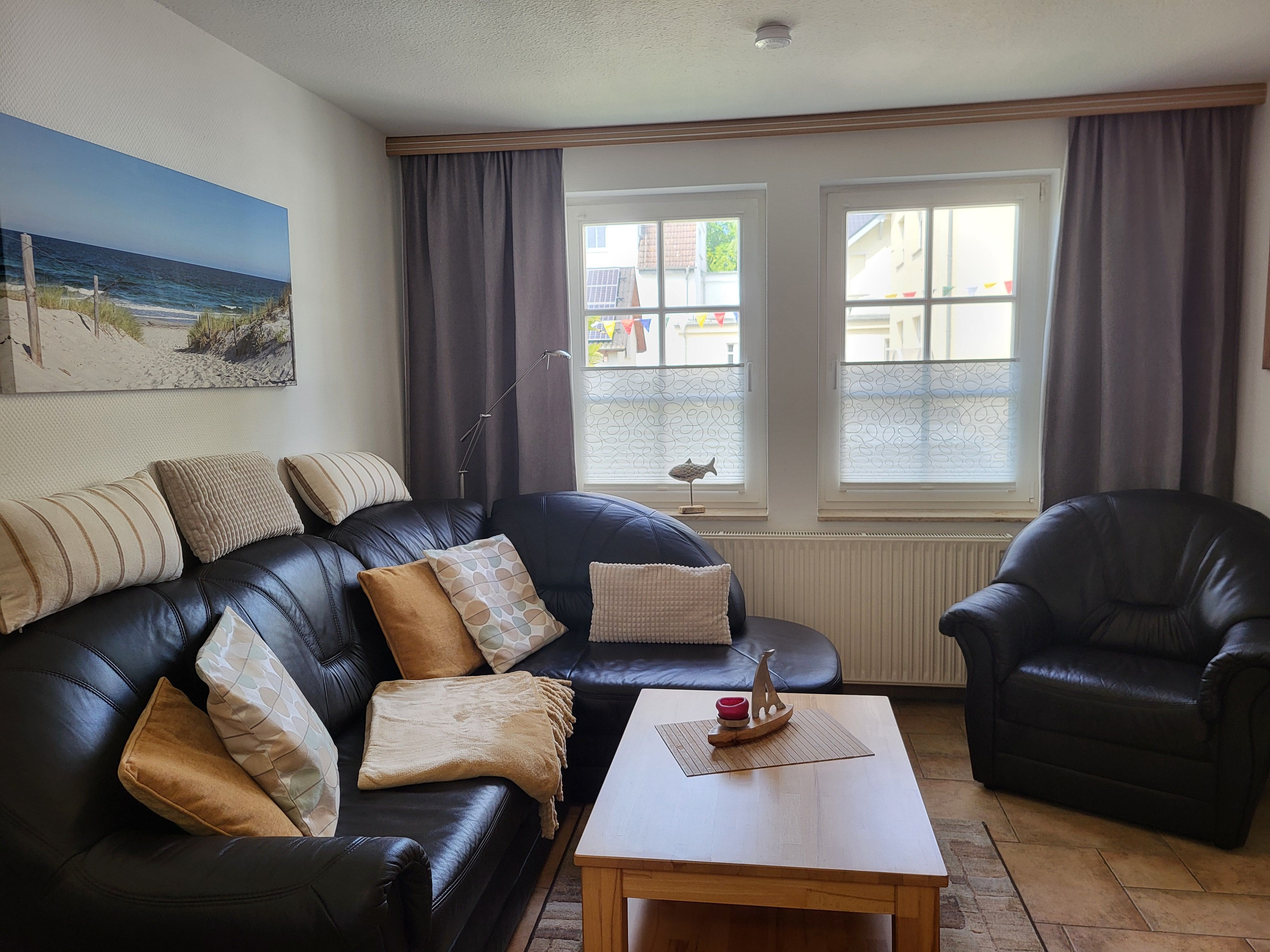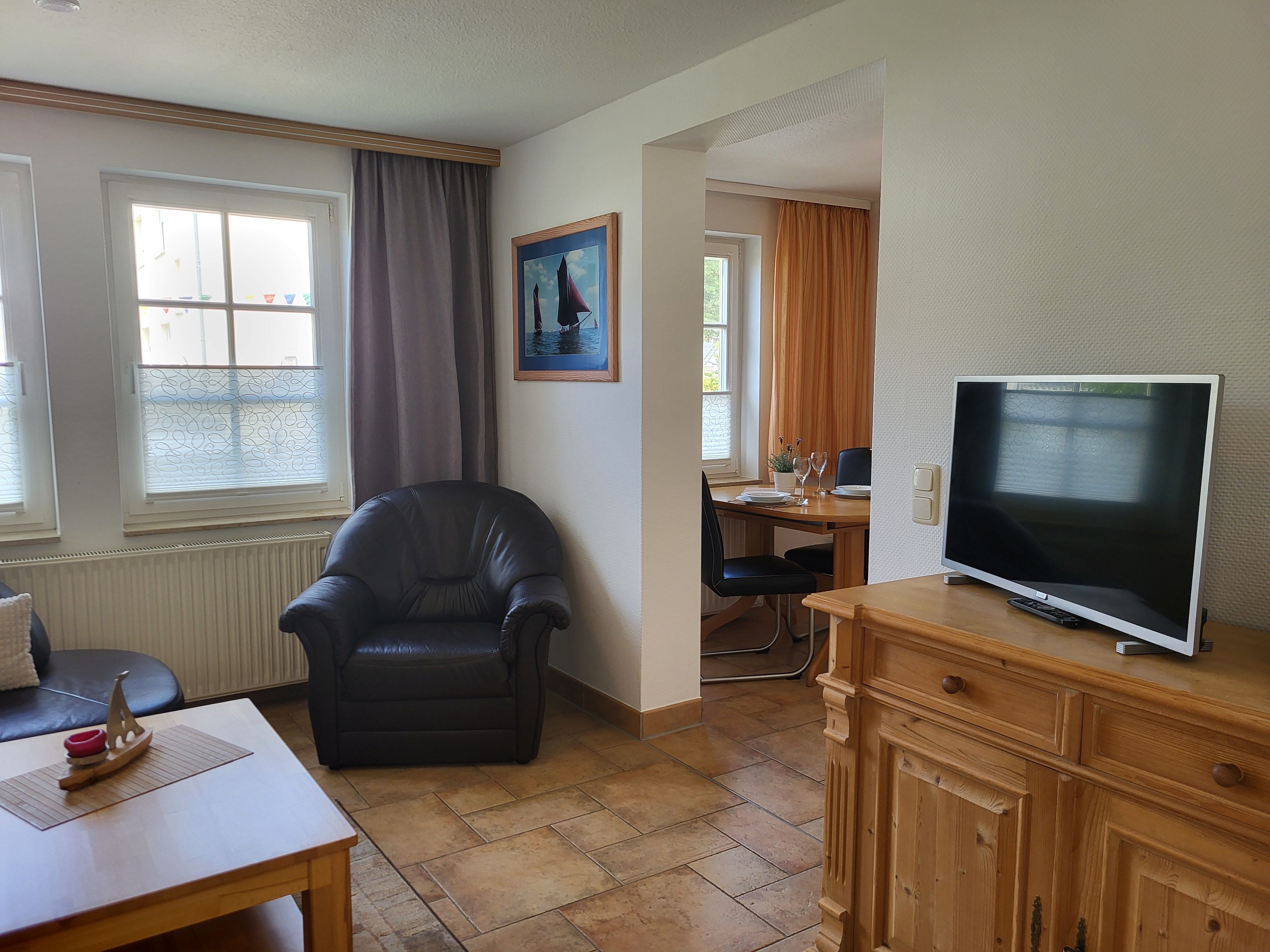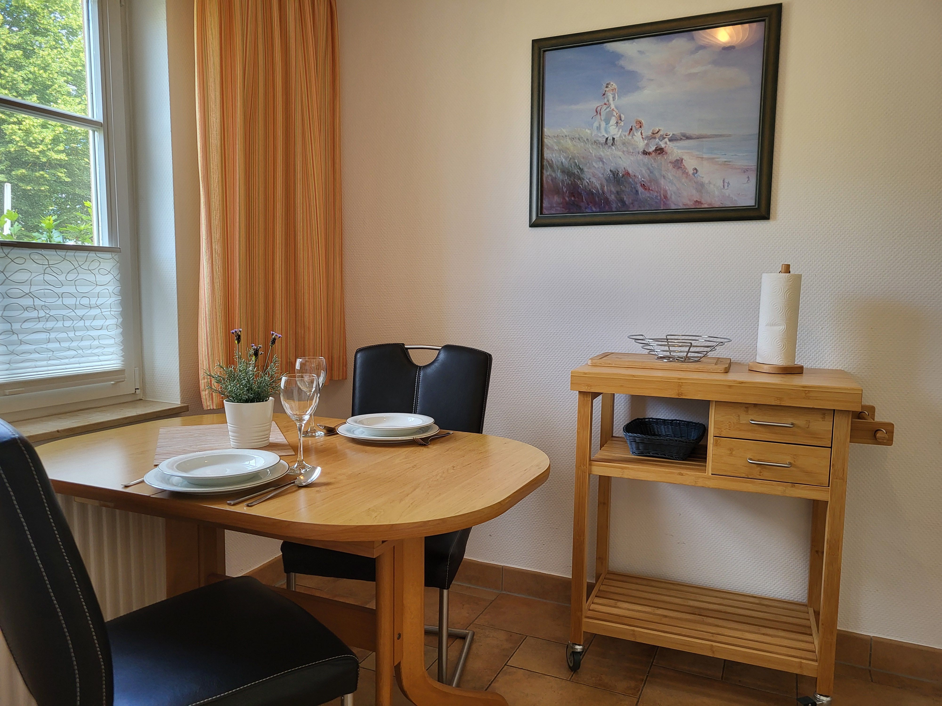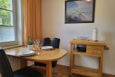 mit viel Liebe zum Detail eingerichtete Ferienwohnung im Erdgeschoss in ruhiger Süd- Lage. Die Terrasse direkt vor der Wohnung lädt zum gemütlichen Frühstück oder zum Relaxen ein. Der feinsandige Strand ist fußläufig in ca. 5 Minuten zu erreichen. Für unsere Gäste steht der Parkplatz bereit, ebenso ein Fahrradunterstand. Das offene Wohnzimmer verfügt über eine bequeme Eckcouch, SAT- TV, Radio, Zentralheizung und kostenlosem WLAN- Zugang. Die offene Küchenzeile mit Essplatz ist voll ausgestattet mit Geschirrspüler, 2- Platten- Cerankochfeld, Kaffeemaschine, Toaster, Wasserkocher und ausreichend Küchenutensilien. Das Schlafzimmer verfügt über ein Doppelbett 1,80 x 2,00 m mit getrennten Matratzen. Die Wohnung wird inklusive Bettwäsche und Handtücher (1 Duschtuch, 1 Handtuch pro Pers.) übergeben. Das Bad verfügt über eine Dusche. Es handelt sich um eine Allergikerwohnung. Das Rauchen ist nicht gestattet.