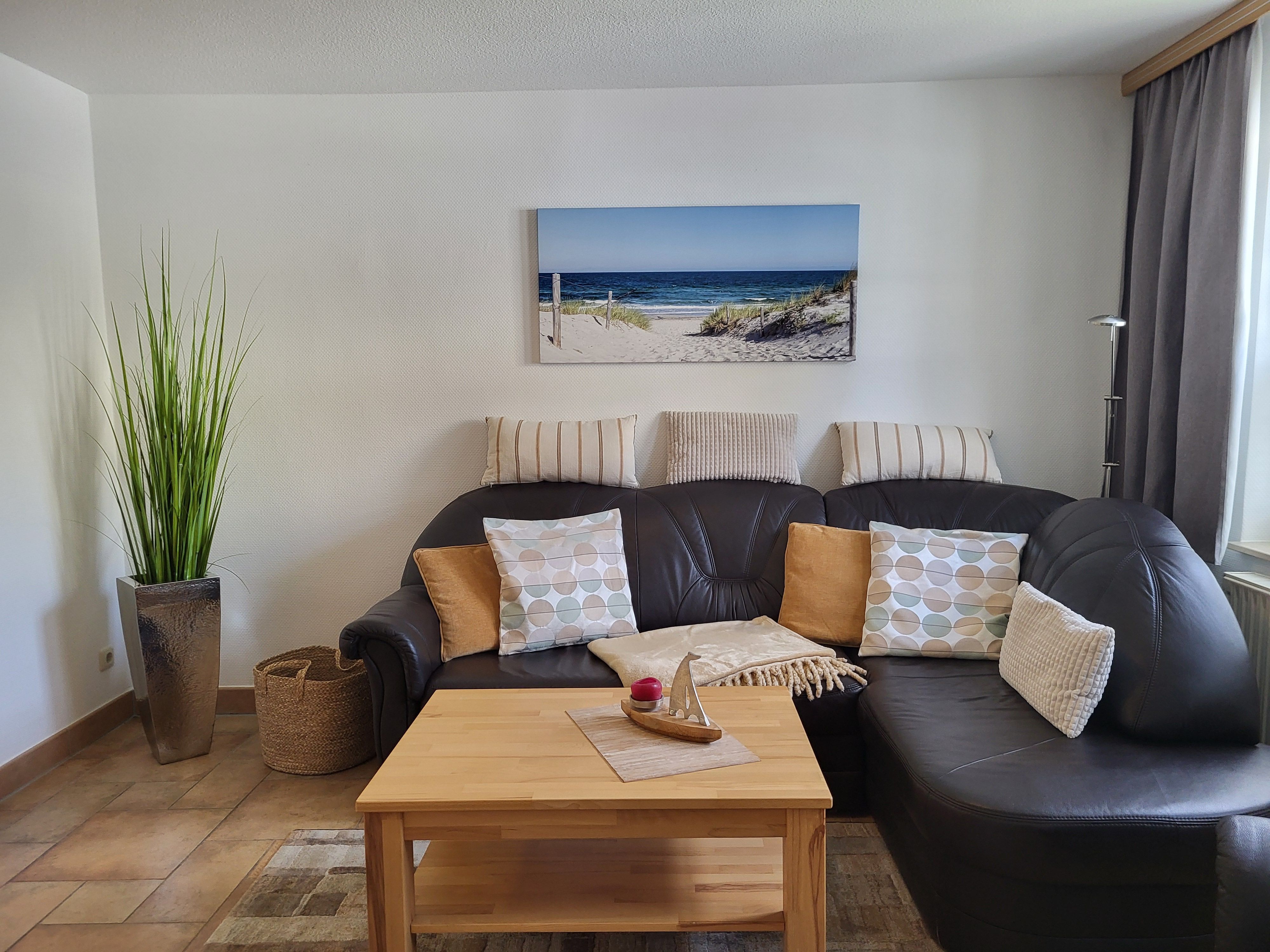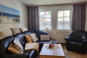 mit viel Liebe zum Detail eingerichtete Ferienwohnung im Erdgeschoss in ruhiger Süd- Lage. Die Terrasse direkt vor der Wohnung lädt zum gemütlichen Frühstück oder zum Relaxen ein. Der feinsandige Strand ist fußläufig in ca. 5 Minuten zu erreichen. Für unsere Gäste steht der Parkplatz bereit, ebenso ein Fahrradunterstand. Das offene Wohnzimmer verfügt über eine bequeme Eckcouch, SAT- TV, Radio, Zentralheizung und kostenlosem WLAN- Zugang. Die offene Küchenzeile mit Essplatz ist voll ausgestattet mit Geschirrspüler, 2- Platten- Cerankochfeld, Kaffeemaschine, Toaster, Wasserkocher und ausreichend Küchenutensilien. Das Schlafzimmer verfügt über ein Boxspringbett 1,80 x 2,00 m mit durchgehender Matratze. Die Wohnung wird inclusive Bettwäsche und Handtücher (1 Duschtuch, 1 Handtuch pro Pers.) übergeben. Das Bad verfügt über eine Dusche. Es handelt sich um eine Allergikerwohnung. Das Rauchen ist nicht gestattet.