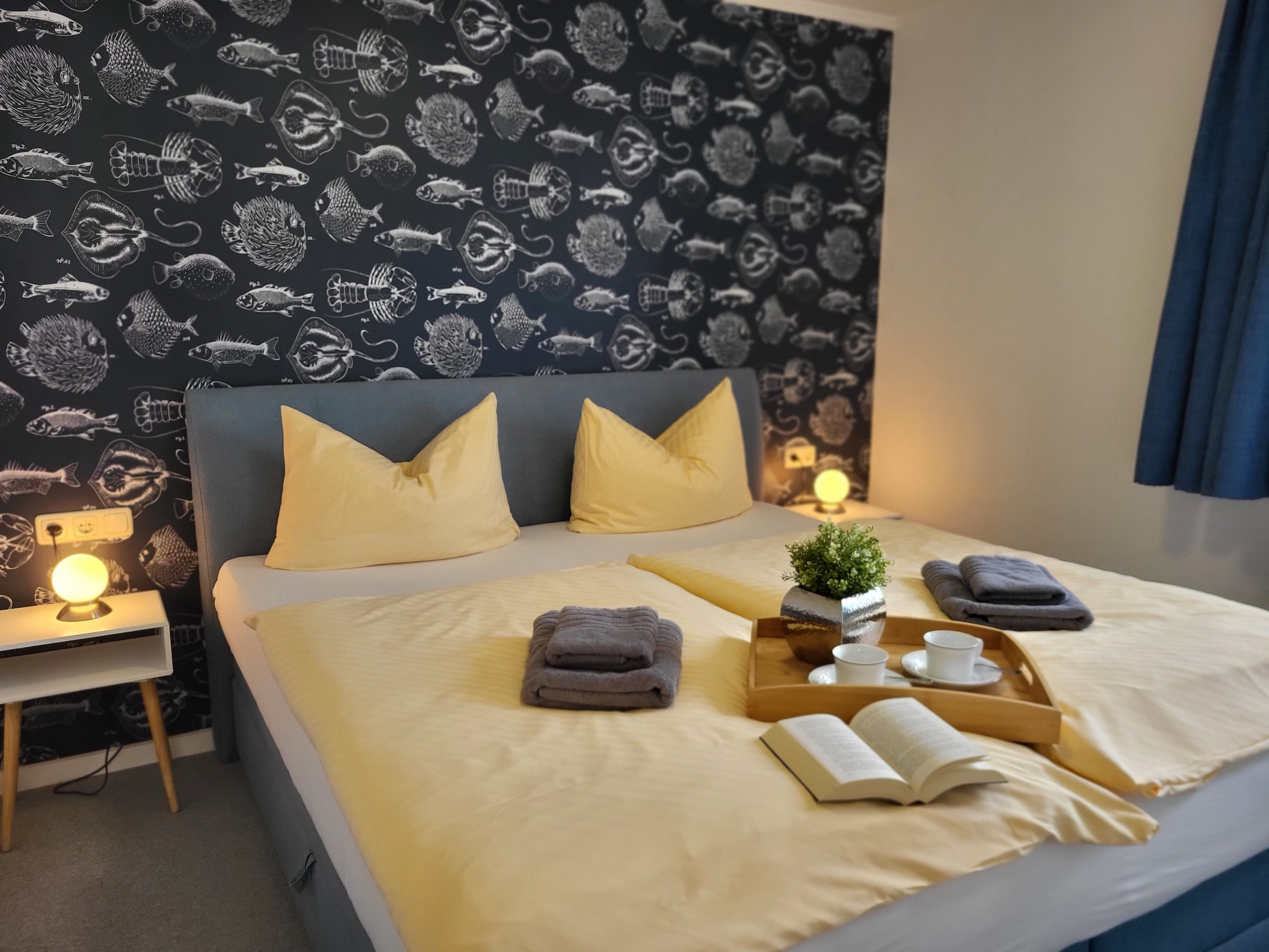 mit viel Liebe zum Detail eingerichtete Ferienwohnung im Erdgeschoss in ruhiger Süd- Lage. Die Terrasse direkt vor der Wohnung lädt zum gemütlichen Frühstück oder zum Relaxen ein. Der feinsandige Strand ist fußläufig in ca. 5 Minuten zu erreichen. Für unsere Gäste steht der Parkplatz bereit, ebenso ein Fahrradunterstand. Das offene Wohnzimmer verfügt über eine bequeme Eckcouch, SAT- TV, Radio, Zentralheizung und kostenlosem WLAN- Zugang. Die offene Küchenzeile mit Essplatz ist voll ausgestattet mit Geschirrspüler, 2- Platten- Cerankochfeld, Kaffeemaschine, Toaster, Wasserkocher und ausreichend Küchenutensilien. Das Schlafzimmer verfügt über ein Boxspringbett 1,80 x 2,00 m mit durchgehender Matratze. Die Wohnung wird inklusive Bettwäsche und Handtücher (1 Duschtuch, 1 Handtuch pro Pers.) übergeben. Das Bad verfügt über eine Dusche. Es handelt sich um eine Allergikerwohnung. Das Rauchen ist nicht gestattet.