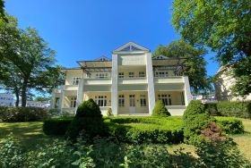 Die schöne Villa aus der Gründerzeit zeichnet sich durch unverwechselbare Architektur aus. 1995 wurde sie komplett saniert. 12 Wohnungen befinden sich im Haus. Den Gästen stehen Waschmaschine/Trockner sowie eine Fahrradunterstellmöglichkeit (verschlossen) zur Verfügung. Zu jeder Ferienwohnung gehört ein Stellplatz am Haus. Zum Strand sind es 50m. Zwischen den Seebrücken in Heringsdorf und Ahlbeck gelegen erreicht man beide Ortszentren in wenigen Gehminuten.