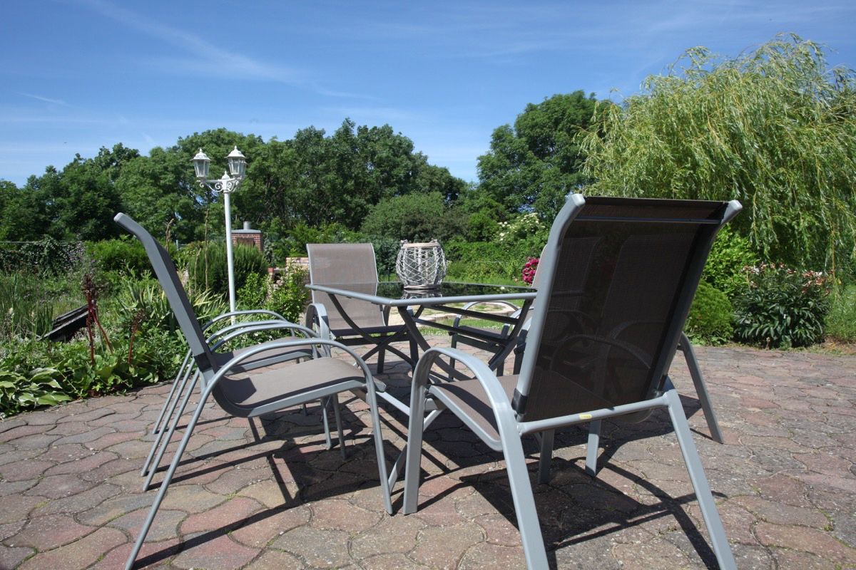 Den wunderschönen Garten erreichen Sie durch die große Terrassentür im Flur. Die teilüberdachte Terrasse ist mit einem Strandkorb, mehreren Gartenstühlen und einem großen Gartentisch ausgestattet. Für gesellige Abende steht Ihnen eine großzügige Grillecke zur Verfügung. Der Carport verfügt über zwei Stellplätze für Autos.