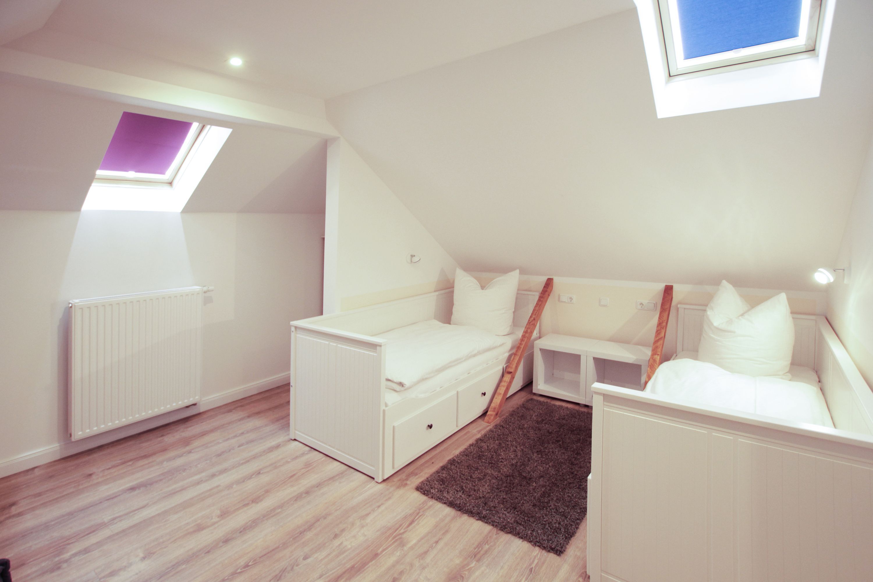 • Ein weiteres Schlafzimmer mit Doppelbett und Durchgang zum Kinderzimmer mit zwei Einzelbetten