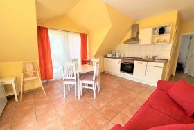 Das schöne 2-Zimmer-Apartment (40m²) befindet sich in der Dollahner Straße 15f im Ostseebad Binz auf Rügen. Die Wohnung ist komplett ausgestattet und bietet alles, was Sie für einen erholsamen Aufenthalt benötigen. Das Apartment verfügt über ein Schlafzimmer mit Doppelbett, ein Wohnzimmer mit Sofabetten für eine weitere Personen sowie eine komplette Küche mit Herd, Kühlschrank und Geschirrspülmaschine. Zu den weiteren Annehmlichkeiten gehören WLAN, Flachbildfernseher und ein Parkplatz auf dem Innenhof.