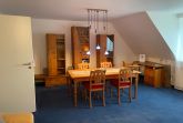 Großzügige Ferienwohnung (115 m²) auf dem Lande, nur 1,5km von der Ostsee entfernt. Die Wohnung liegt im 1. Stock und besteht aus einem Schlafzimmer mit Doppelbett (2,00 x 2,00m) und einem Schlafzimmer mit zwei großen Einzelbetten (1,40 x 2,00m), einem großen Wohnzimmer mit gemütlicher Sitzgruppe und einem Esstisch, einer kleinen Küche mit voller Ausstattung und einem Bad mit Duschwanne. Ein Waschtrockner steht kostenlos zur Verfügung.
