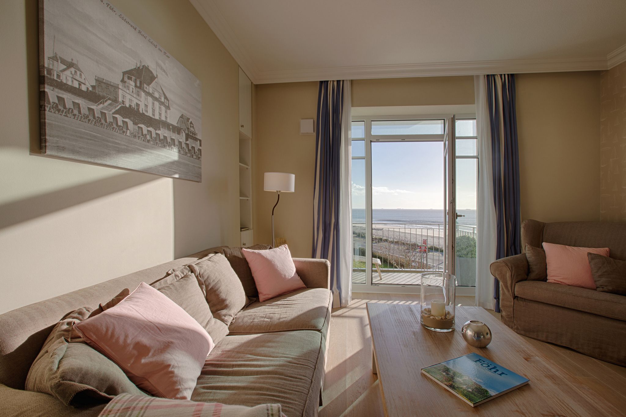 Diese exklusive Wohnung liegt im 2. OG hinter historischer Fassade, die beim Neubau erhalten geblieben ist. Sie bietet vom Wohn-, Schlaf- und Essbereich einen wunderschönem Blick auf den Strand, die Nordsee und die Halligen. Die helle 2-Zimmerwohnung ist u.a. mit hochwertigen Einbauschränken, moderner Landhaus-Küche, einer Rain Air Dusche und einem überlangen Bett ausgestattet. Italienische Fliesen & Eichenparkett mit Fußbodenheizung sowie die Einrichtung im Riviera Maison Stil schaffen eine Wohlfühlatmosphäre. Der windgeschützte Süd-Ostbalkon (über 10qm) bietet eine Sonnenliege und zwei Sessel zum Träumen. Nach einem langen Urlaubstag entspannen sie in der hauseigenen Sauna und lassen Ihre Seele baumeln.