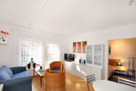 Die Ferienwohnung Nr.1 befindet sich im Erdgeschoss eines 2-geschossigen Reihenhauses mit separaten Hauseingang. Die bis zu 4 Personen (2 Erwachsene und 2 Kinder) Nichtraucherwohnung befindet sich unweit vom Zentrum und es ist für Ihr Auto ein Parkplatz auf dem Grunstück vorhanden. Für Ihr Fahrrad steht auf dem Gelände, ein zur Wohnung gehörender, Fahrradschuppen zur Verfügung. Nach einem kurzen Spaziergang durch den Küstenwald erreichen Sie schon den feinsandigen Strand. Auf der gegenüberliegenden Strassenseite befindet sich der Eingang zum Campinplatz, wo Sie Morgens auch Brötchen kaufen können.