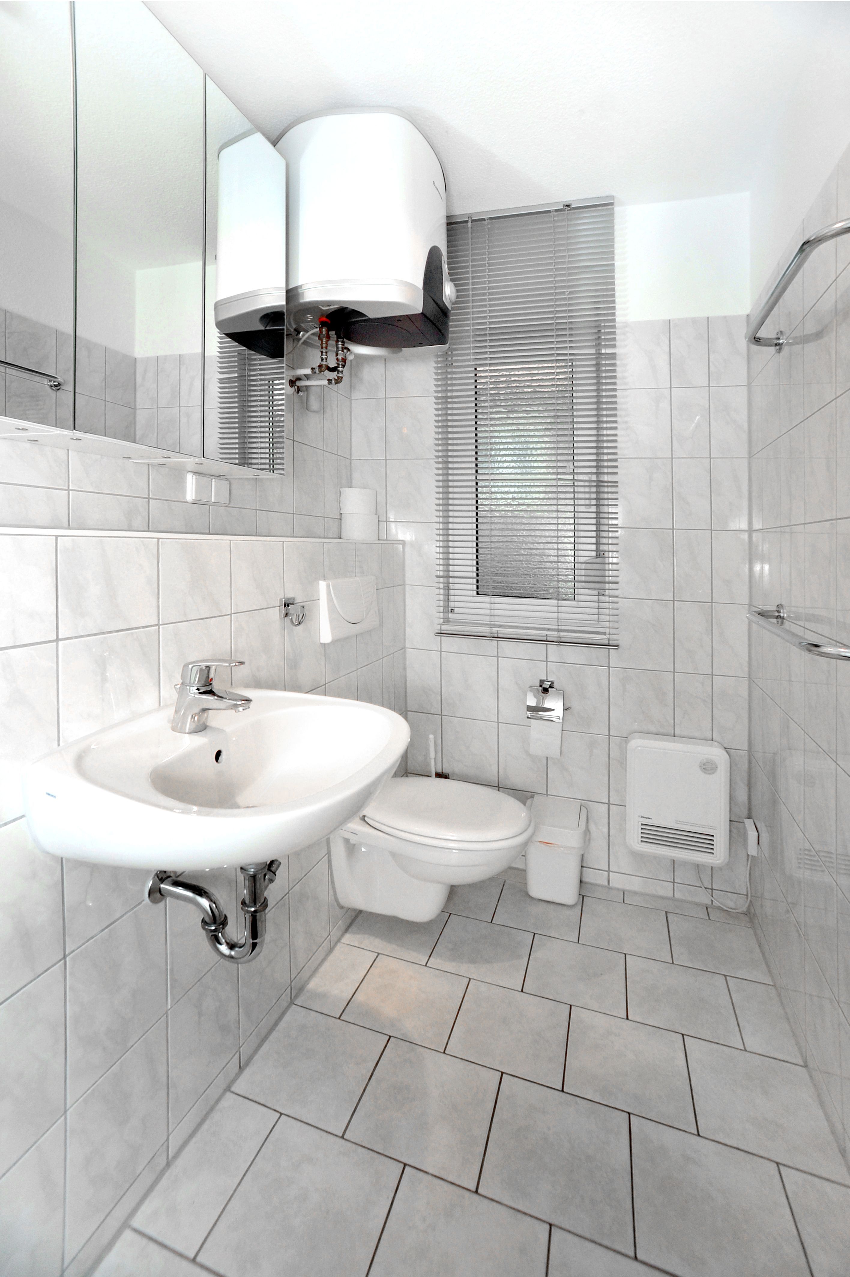 Bad mit Dusche. Beheizt wir die Wohnung mit angenehmen Infrarot-Heizkörpern.