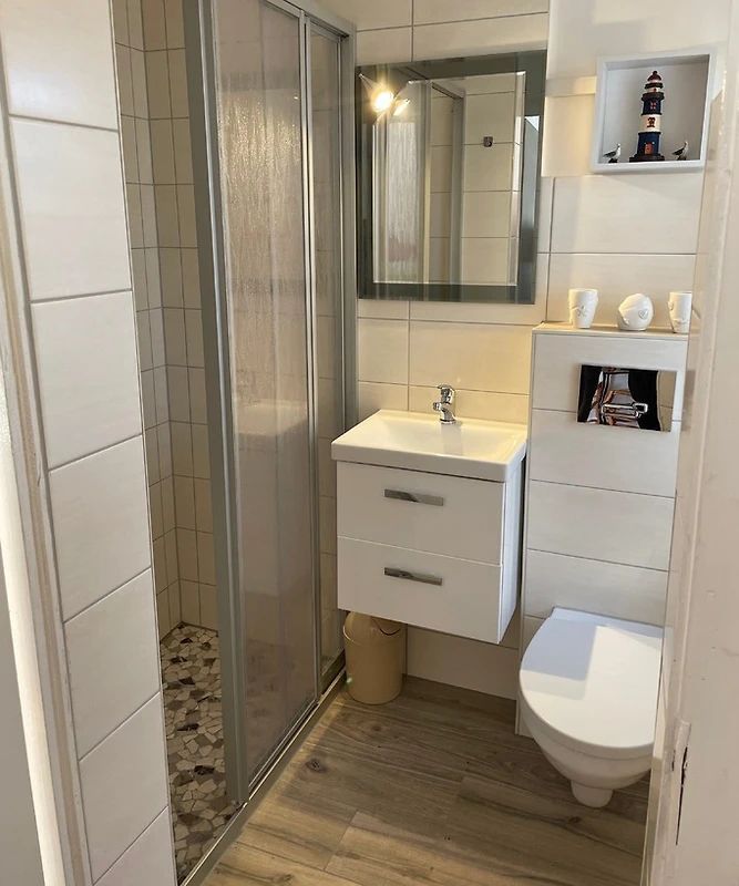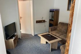 Der Bungalow verfügt über einen Wohnraum , eine Essecke und kleiner Singleküche, ein Schlafzimmer mit einem Doppelbett (180x200) und ein in 2022 neu renoviertes Badezimmer mit Dusche.