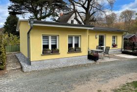 Der Bungalow liegt in ruhiger Ortrandlage auf einem Eckgrundstück.