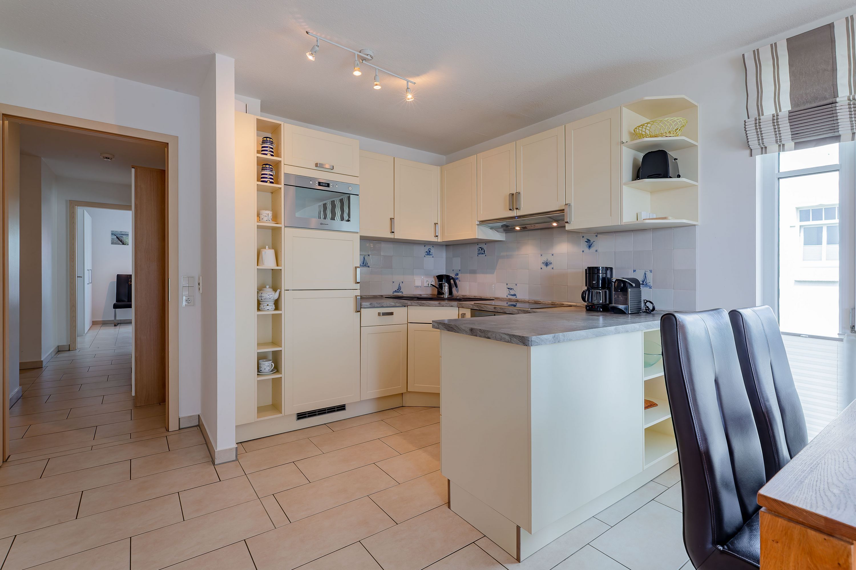 Wir begrüßen Sie im Schloß am Meer, der exklusiven Wohnanlage direkt am Wyker-Südstrand gelegen. Ihre Wohnung liegt im 1.Obergeschoss. Hier haben Sie einen Süd-Ost Balkon ganz für sich allein und einen Blick auf die Nordsee und die Halligen. Dieser einzigartige Panoramablick ist unvergesslich. In nur wenigen Schritten befinden Sie sich auf der Promenade, die Sie ins Herz von Wyk führt. Hier laden Geschäfte zum Bummeln ein, Cafes und Restaurants verwöhnen Sie mit kulinarischen Köstlichkeiten.