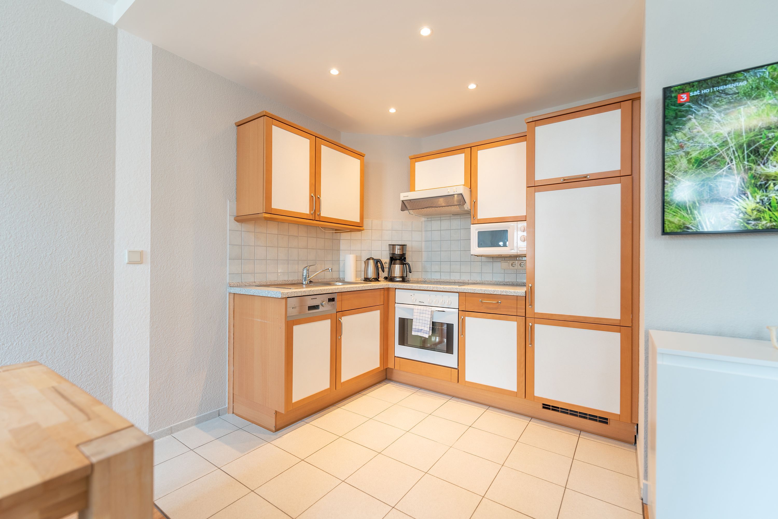 Im Erdgeschoss gelegen, umfasst die Wohnung ein Wohnzimmer mit einer bequemen Schlafcouch, einen Essbereich, eine voll ausgestattete Küchenzeile, ein Schlafzimmer mit einem hochwertigen Boxspringbett und Zugang zu einer kleinen Terrasse sowie ein Badezimmer mit Badewanne. Zu den Annehmlichkeiten gehören kostenfreies WLAN und ein kostenfreier Parkplatz in der abgeschlossenen Tiefgarage, wo auch Fahrräder sicher abgestellt werden können.
