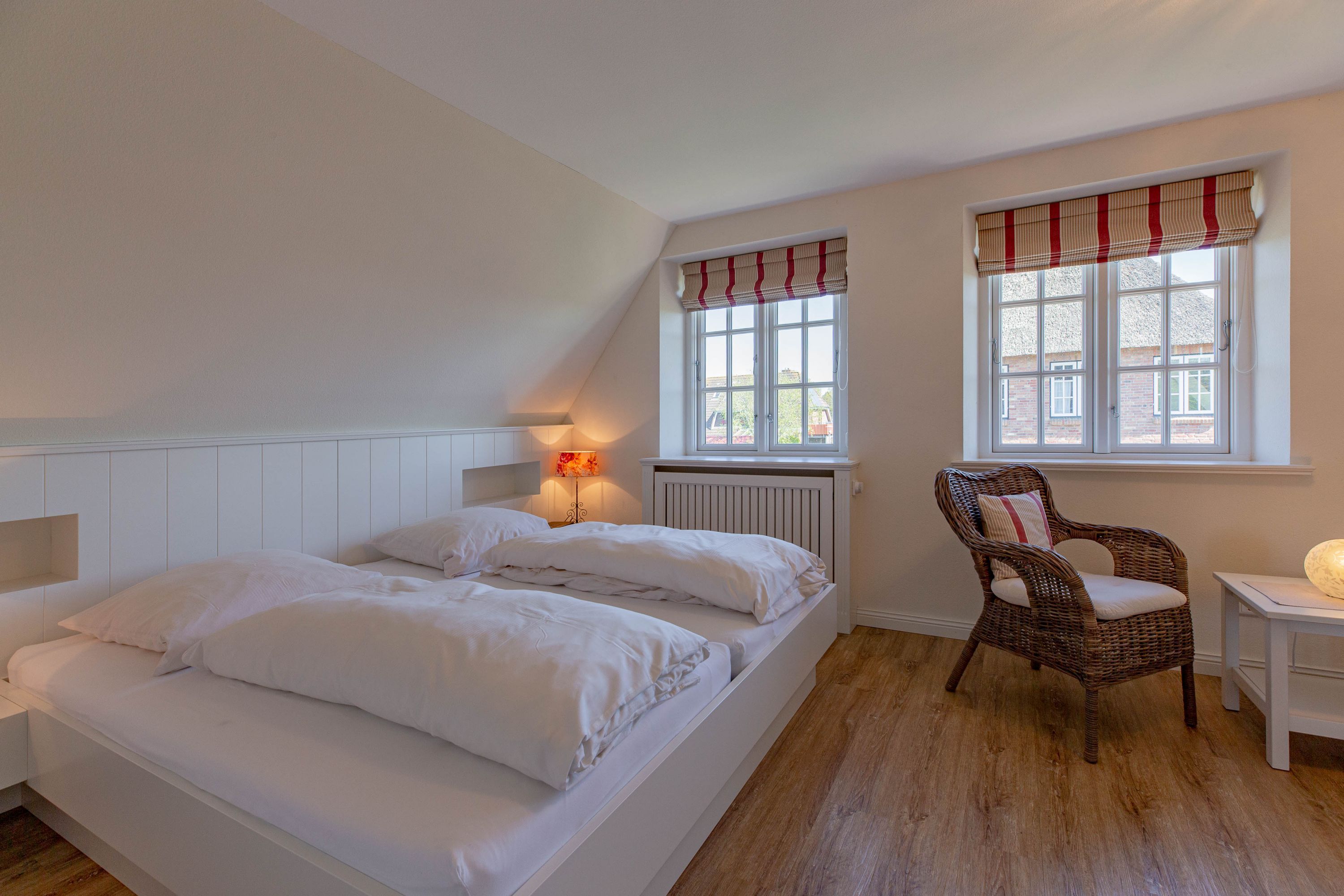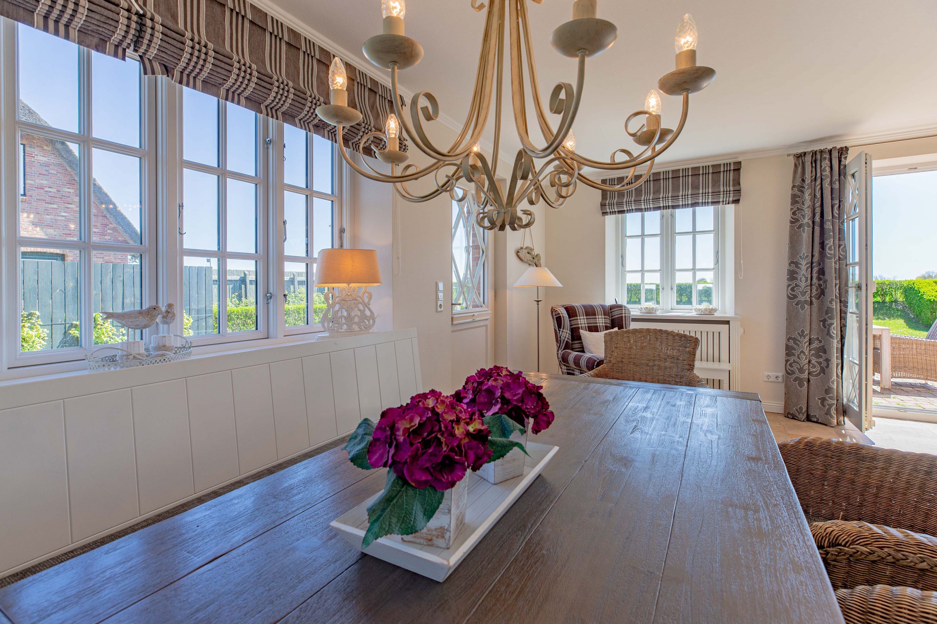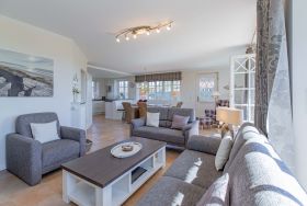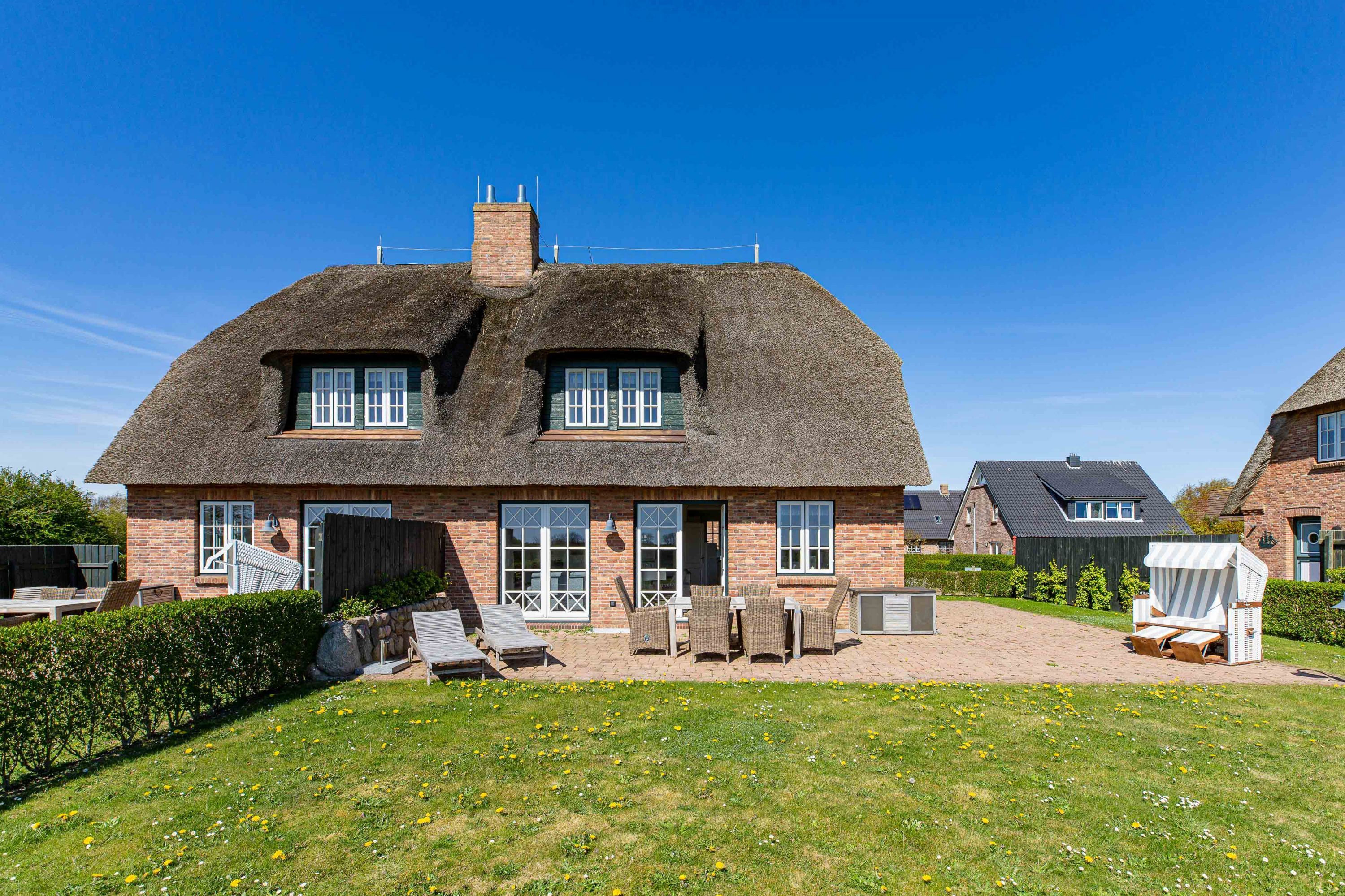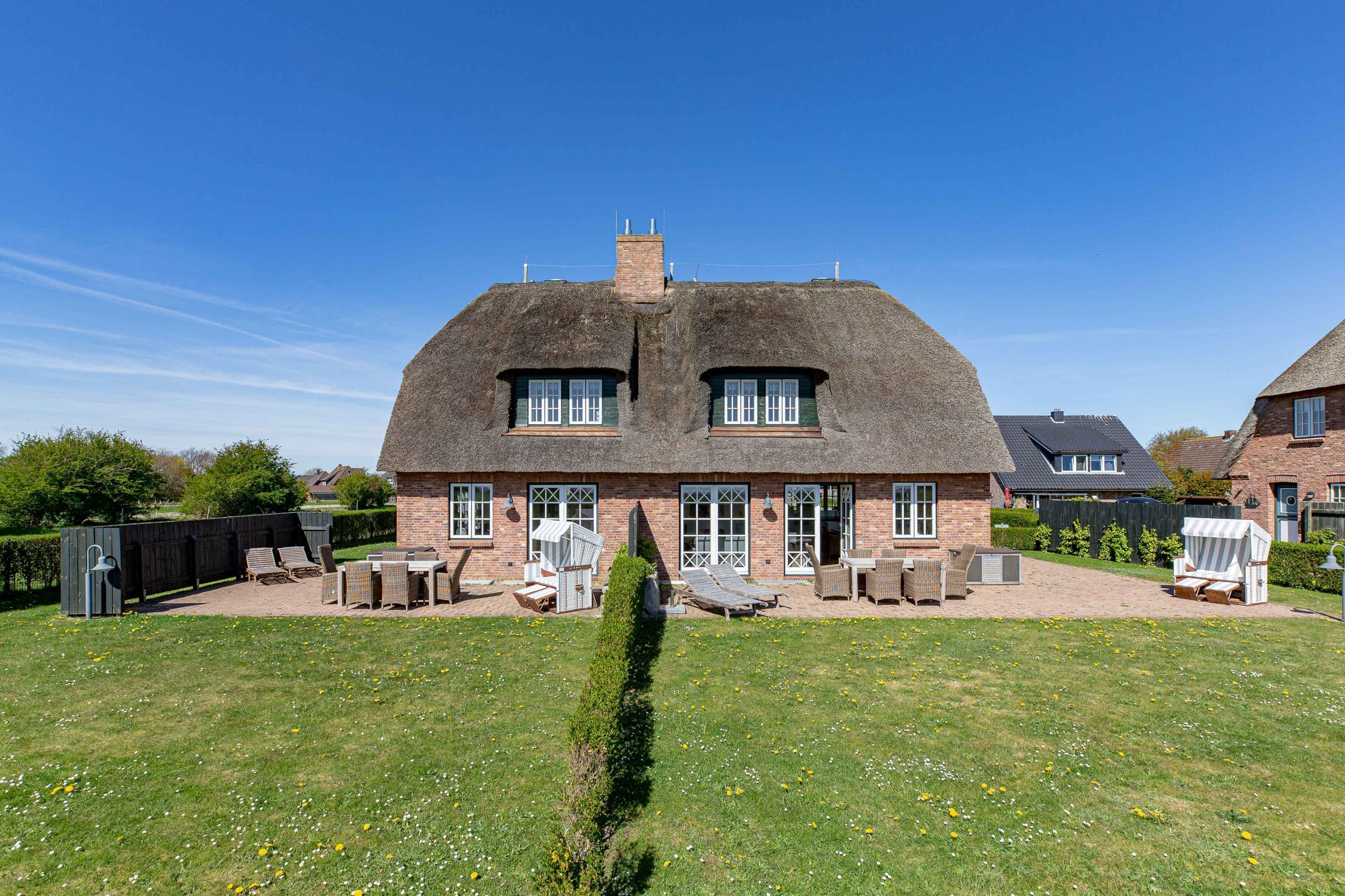 In dieser großzügigen Reetdachhaushälfte fühlt man sich sofort wohl und kann unbeschwerte, erholsame Ferien verbringen. Der hübsche Ort Borgsum ist nur wenige Minuten von Nieblum, mit vielen Einkaufsmöglichkeiten und Restaurants, entfernt. Der Bäcker und ein Fahrradverleih praktisch gleich um die Ecke. Gleich gegenüber von der Borgsumer Mühle befinden sich ein Restaurant/Café mit Garten. Die zentrale Lage von Borgsum ermöglicht Ihnen auch mal ohne Auto überall hinzukommen.